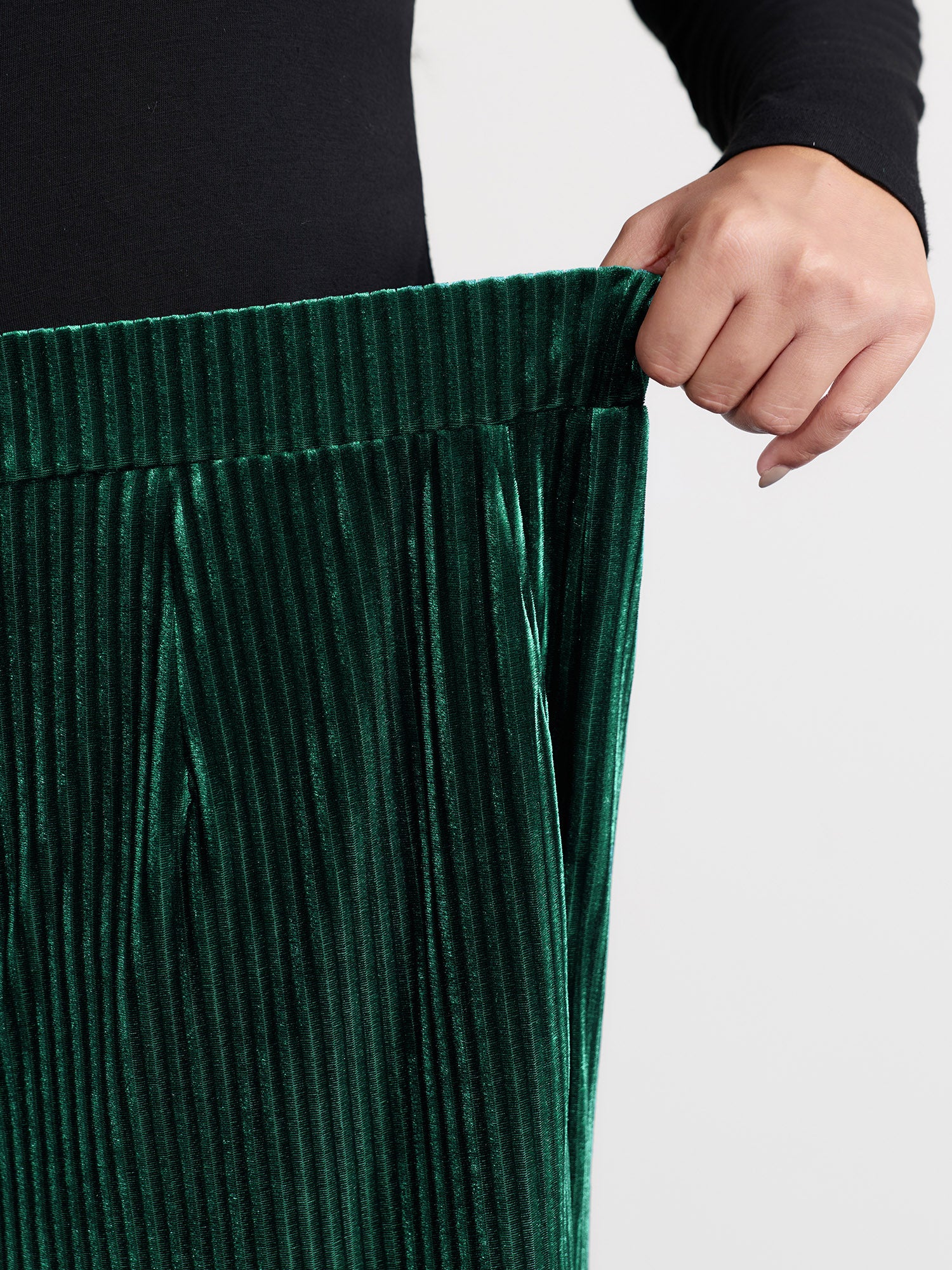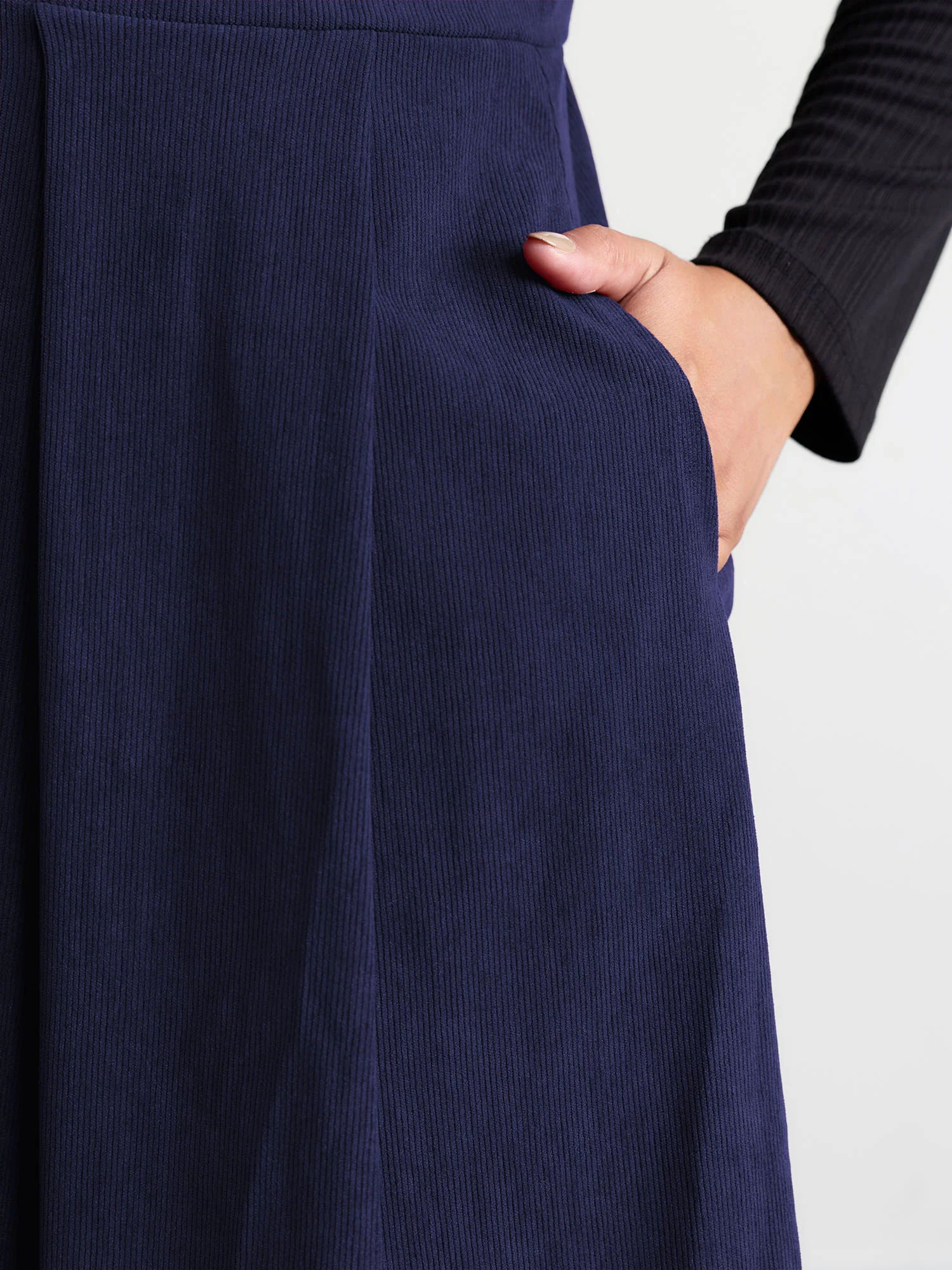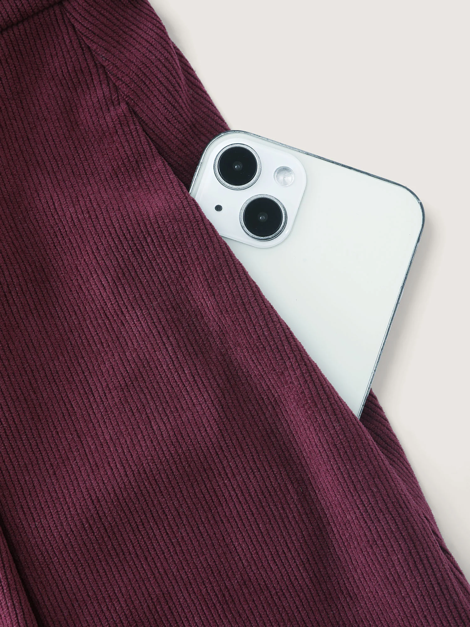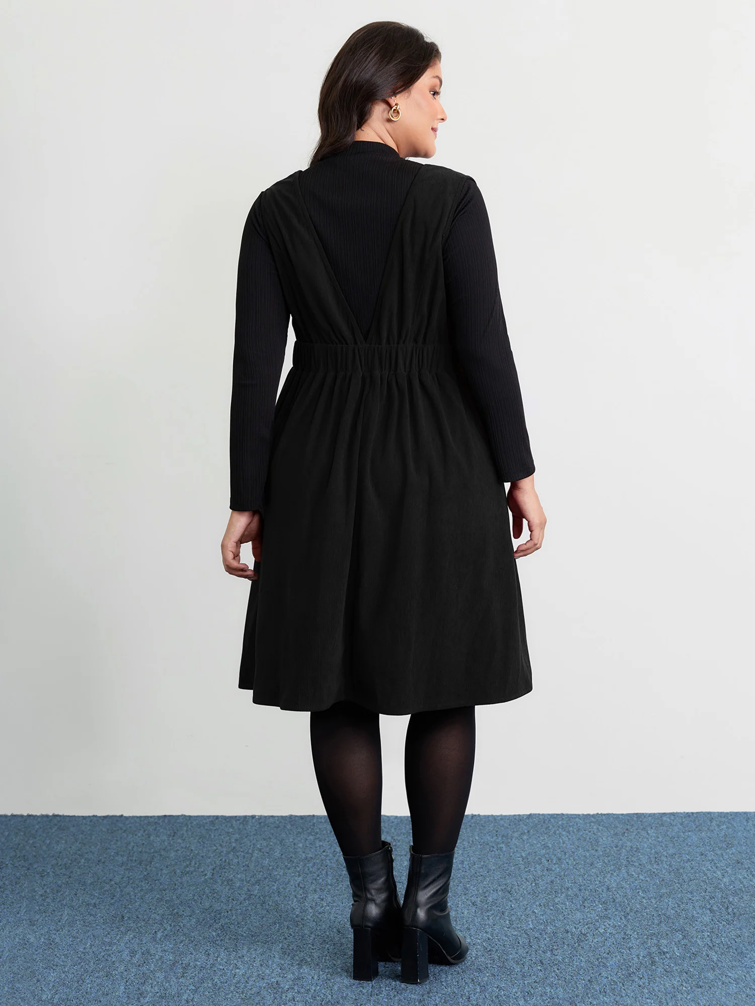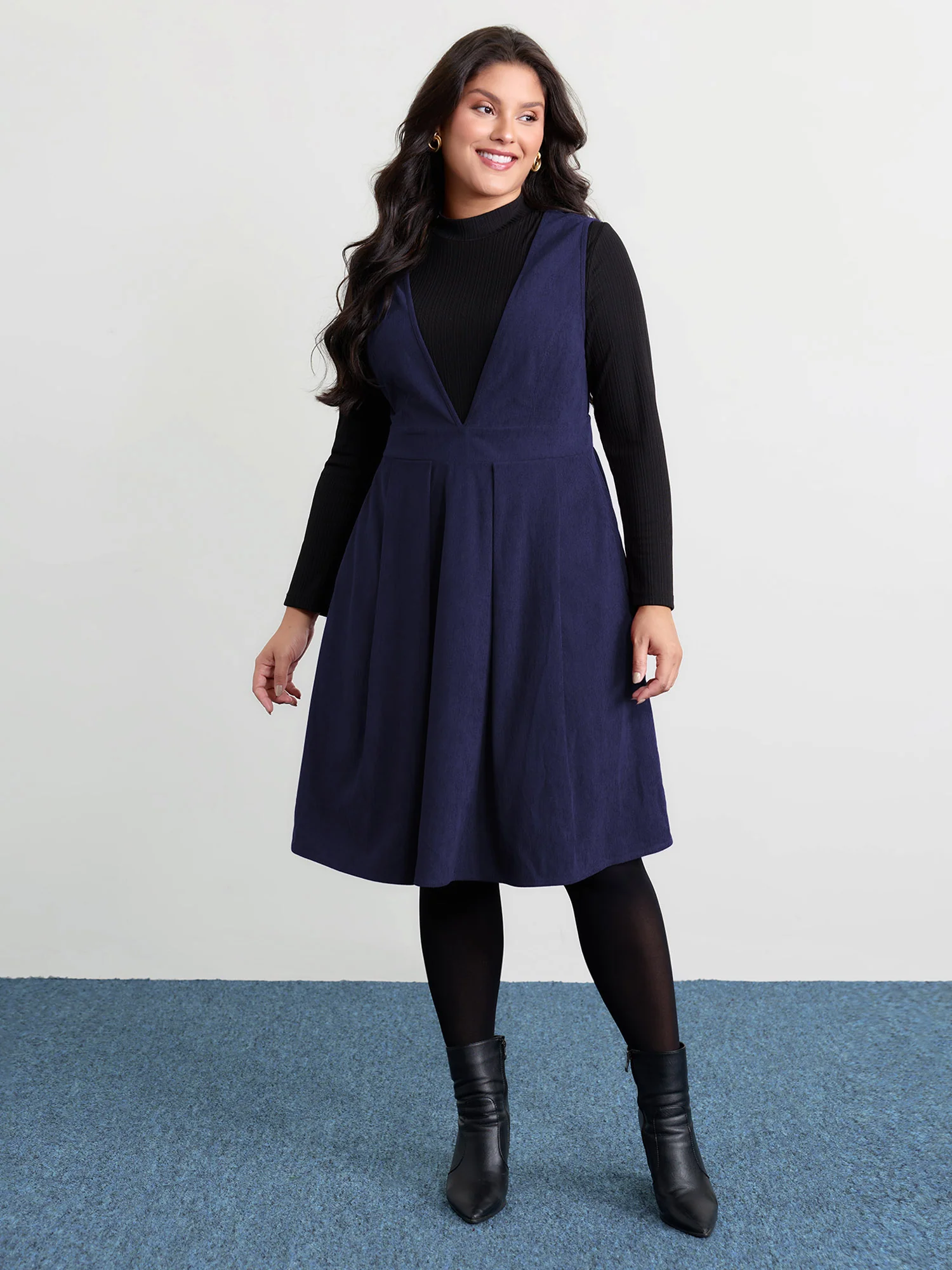 Corduroy Stretchy Waist V-Neck Midi Dress