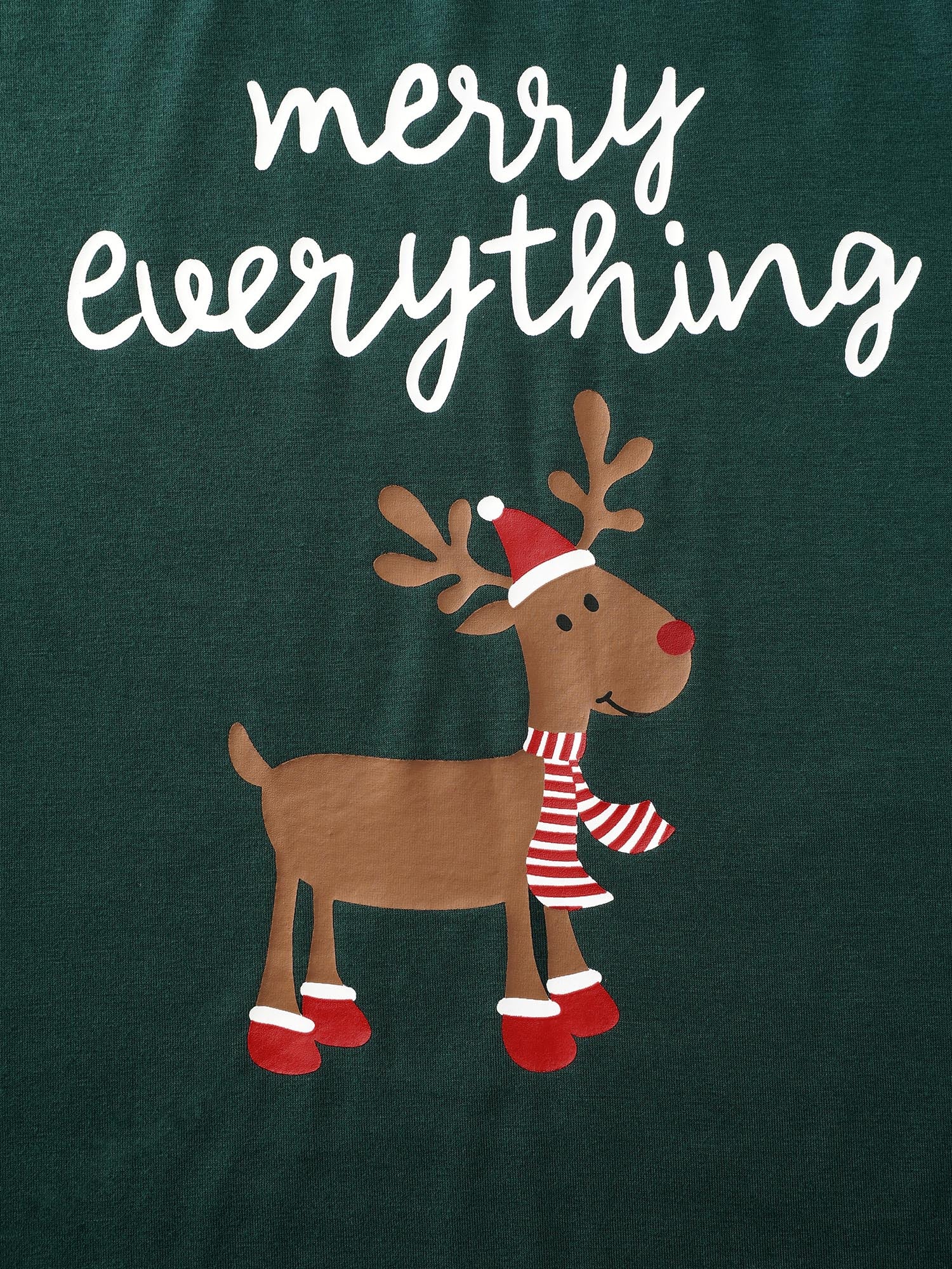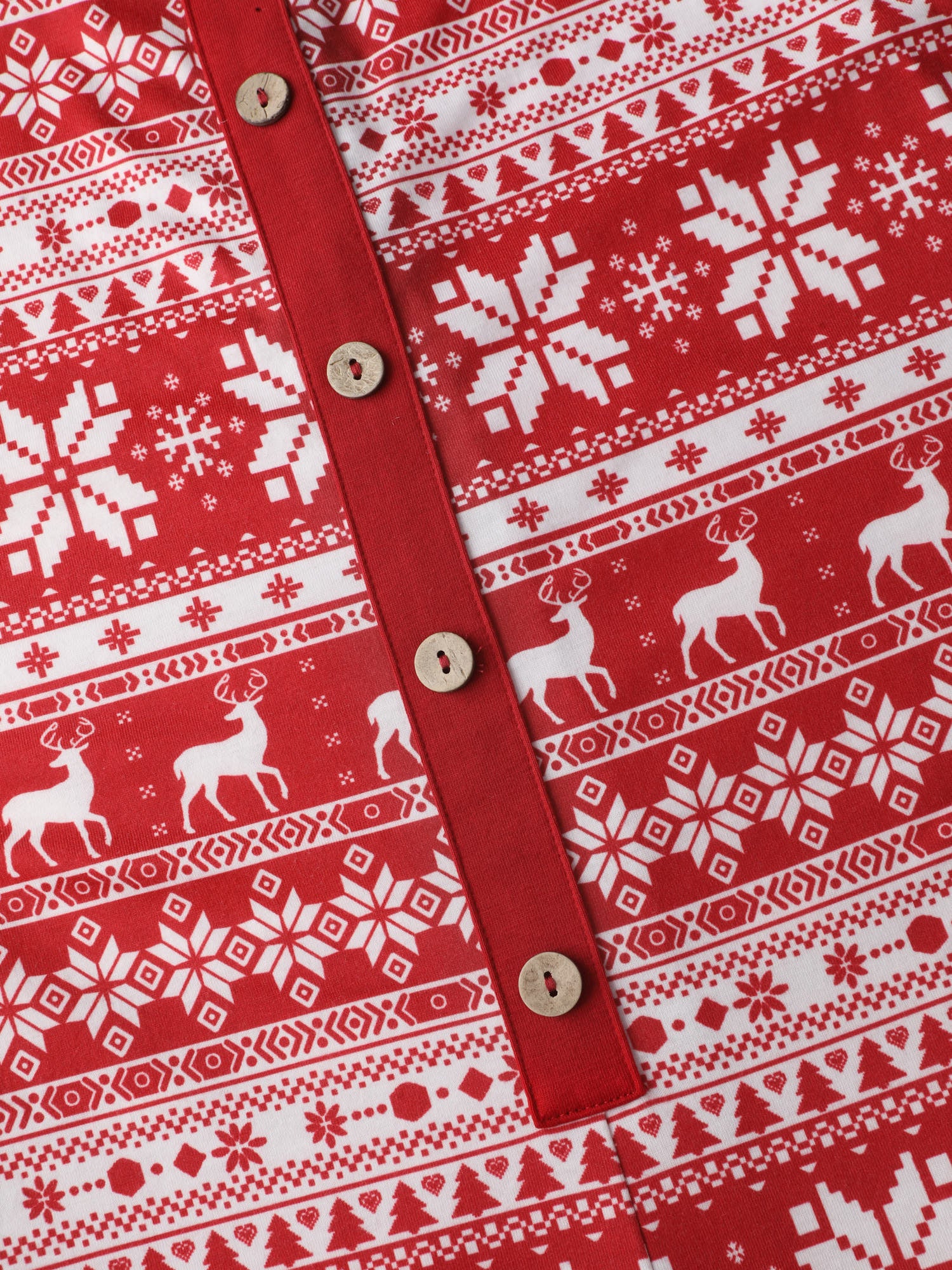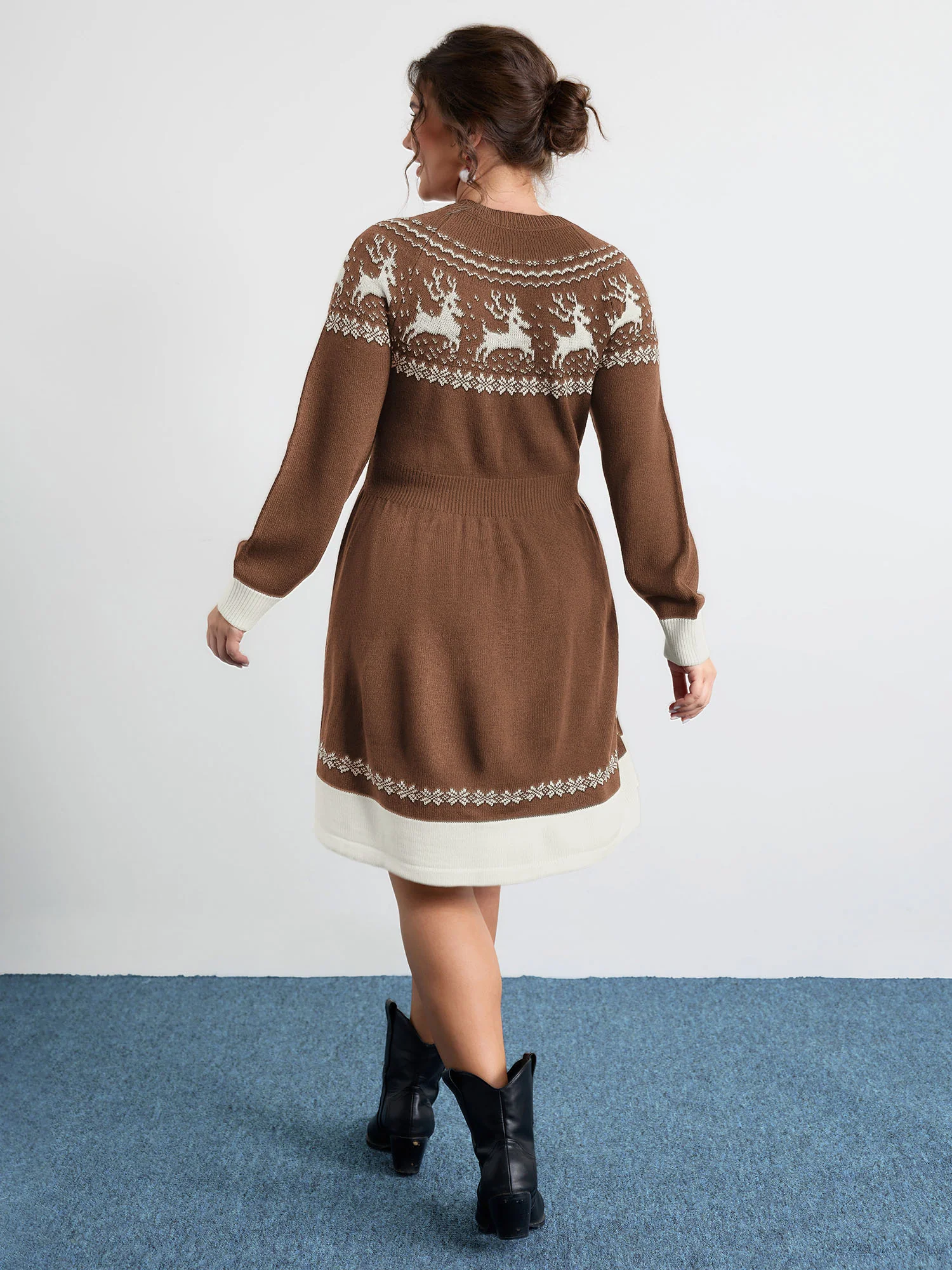 Reindeer Print Cinched-Waist Sweater Midi Dress