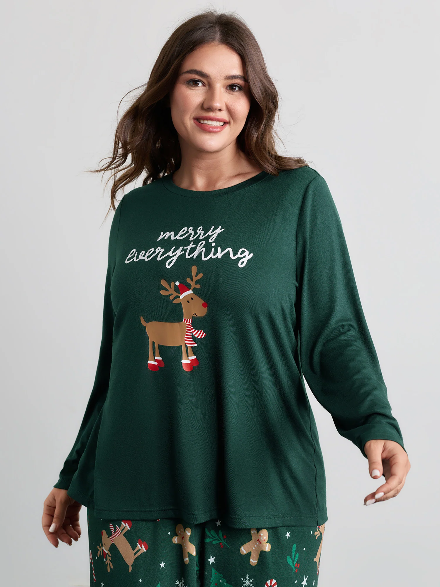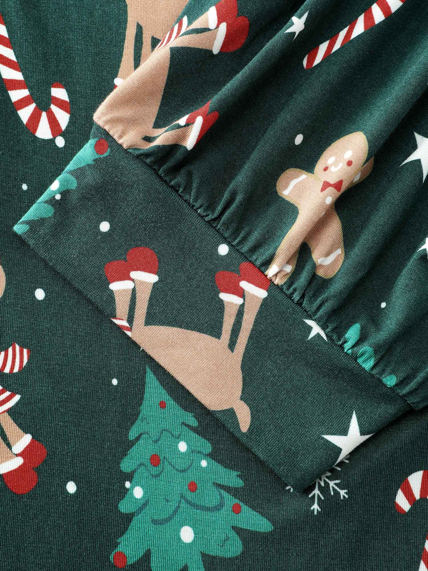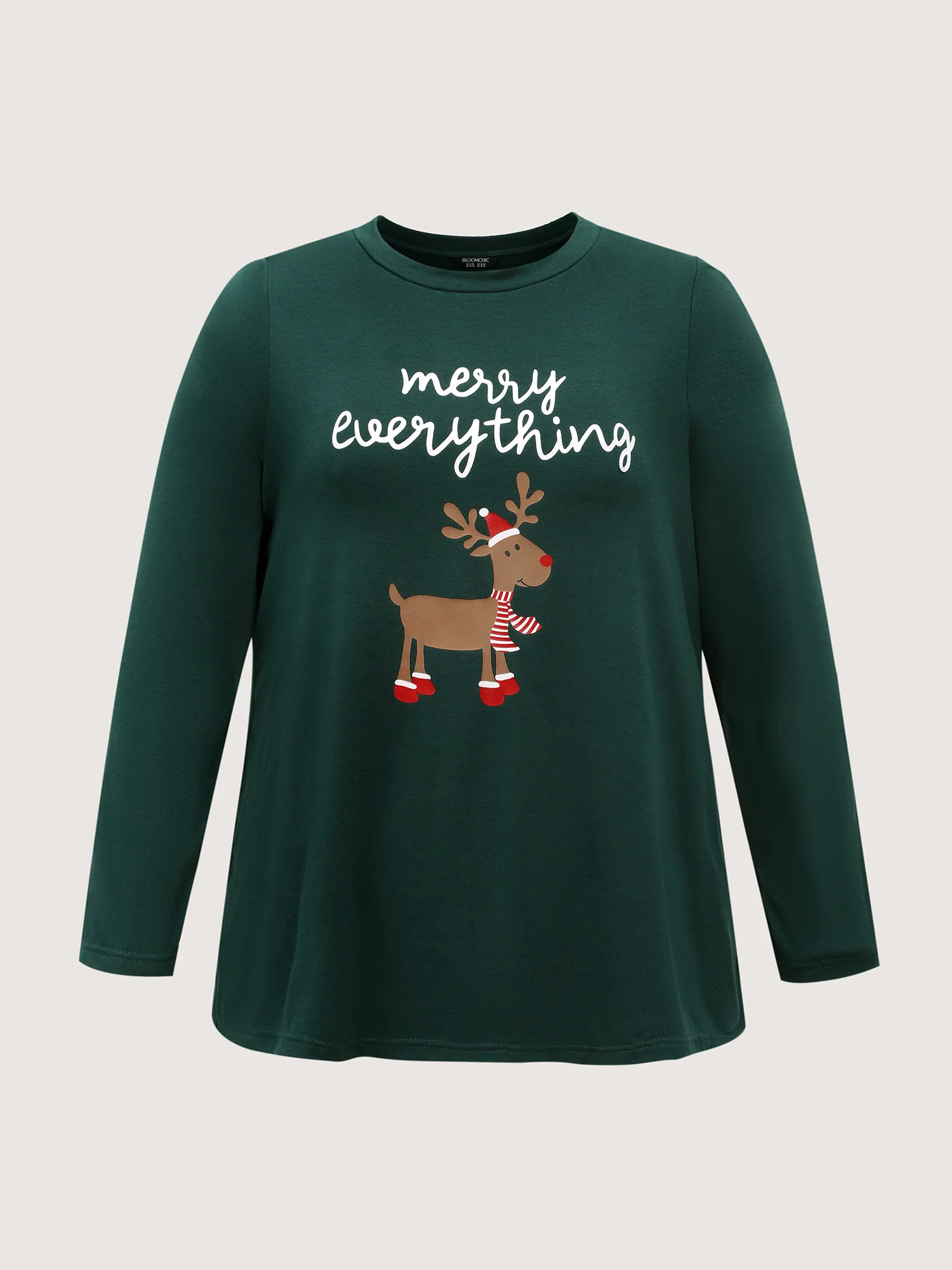 Reindeer Print Cinched-Waist Sweater Midi Dress