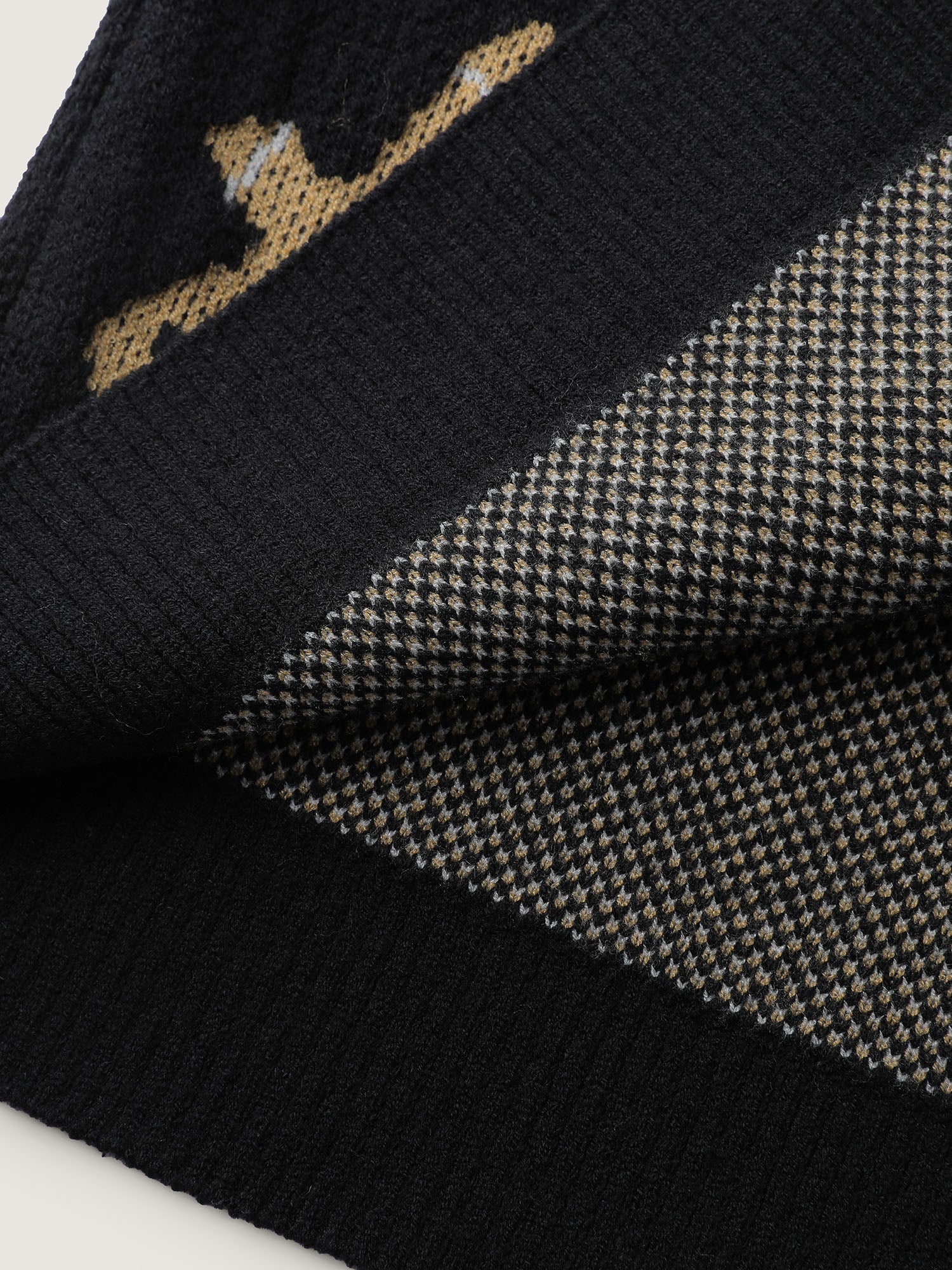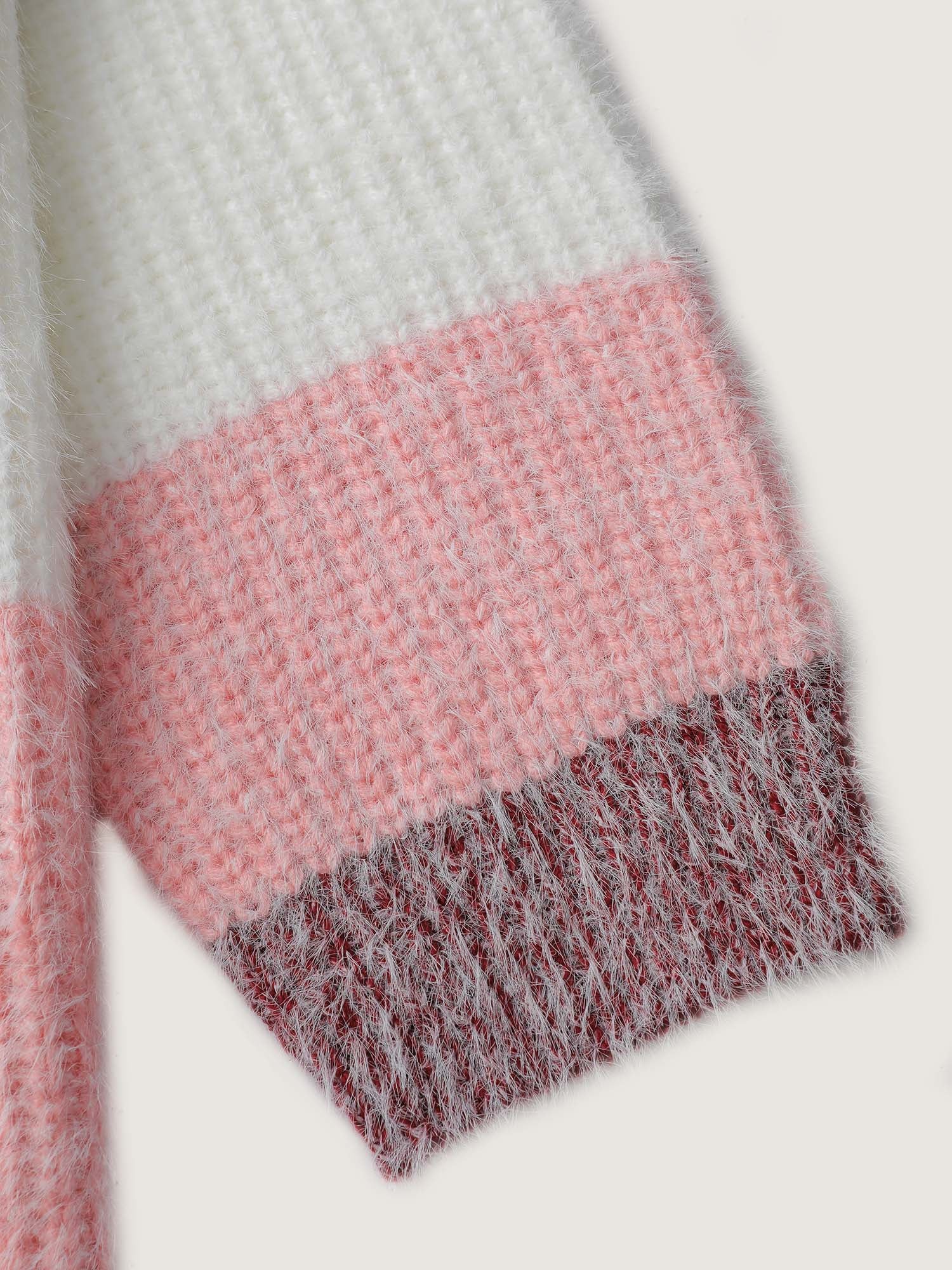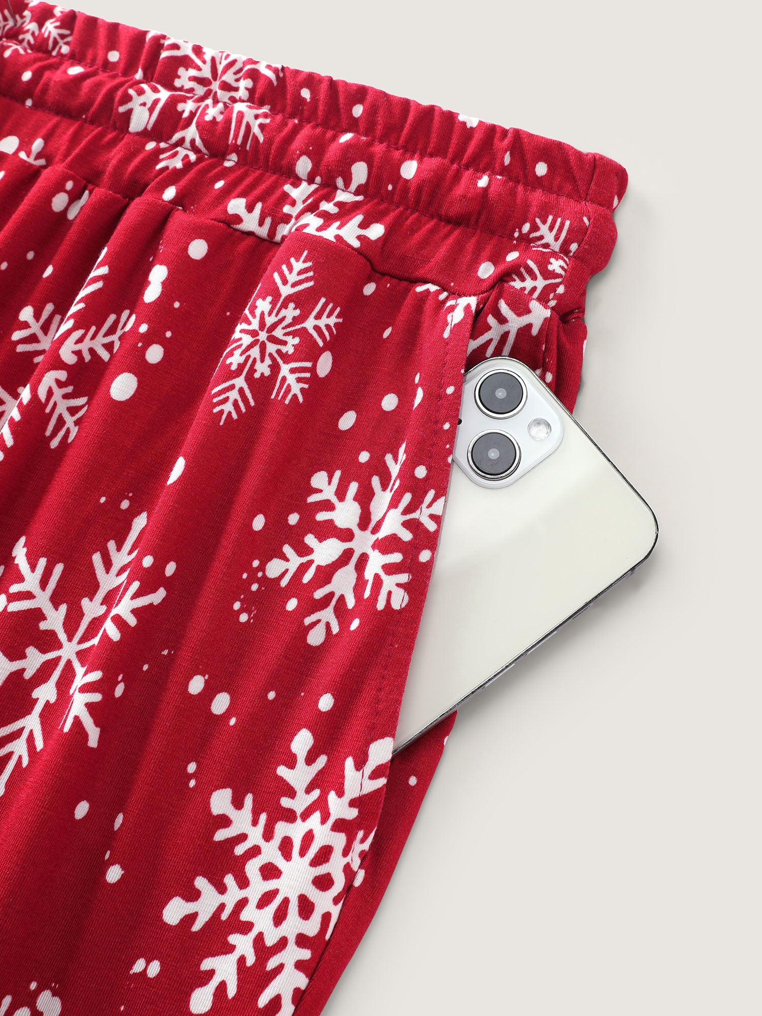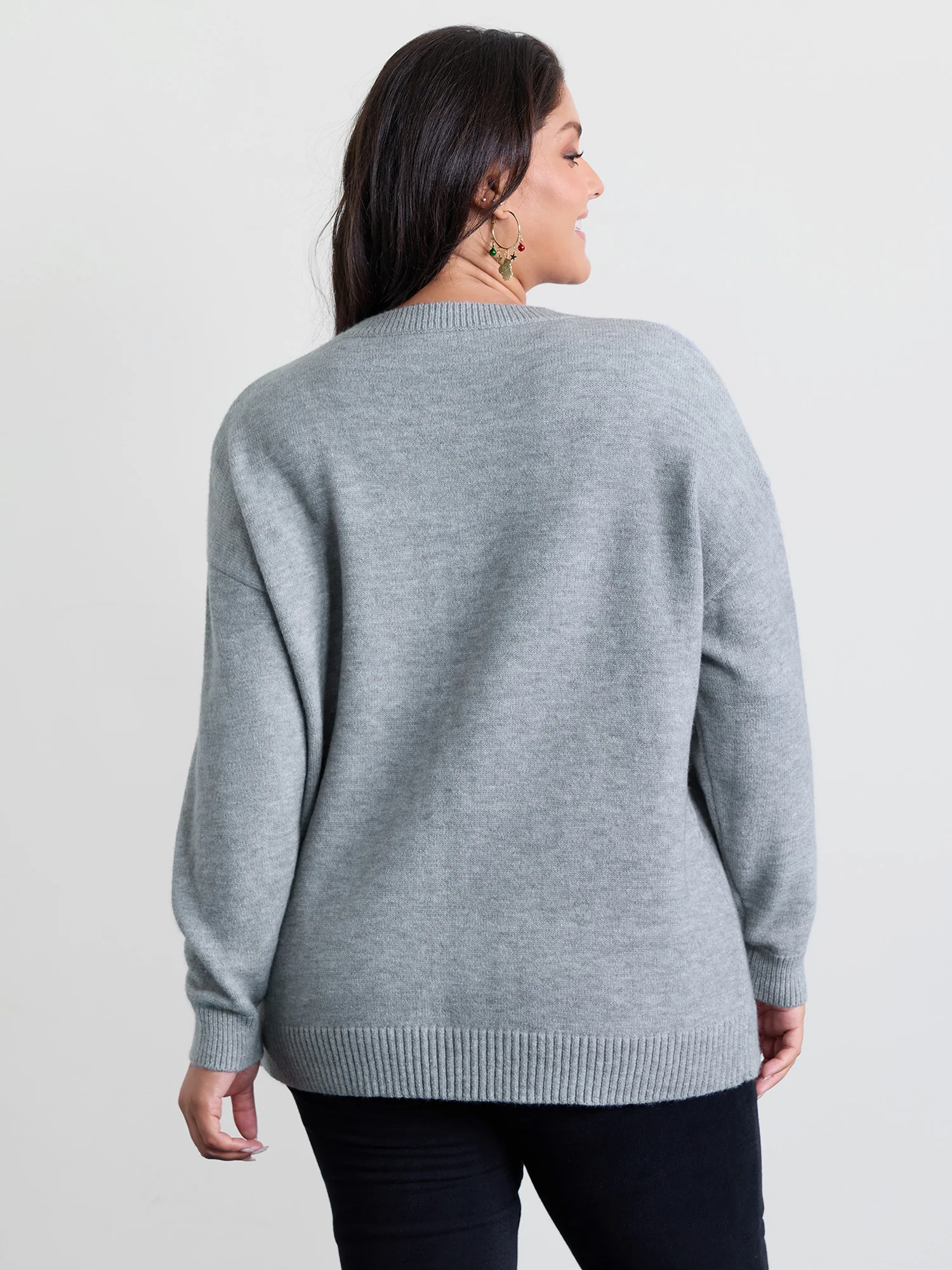 Snowflake Pattern Pockets Curvy Hem Knit Cardigan