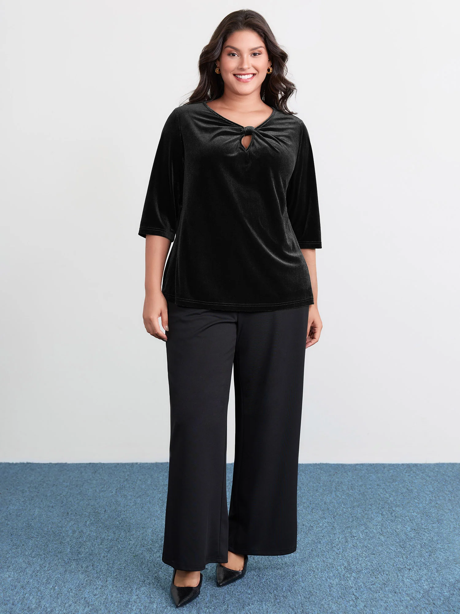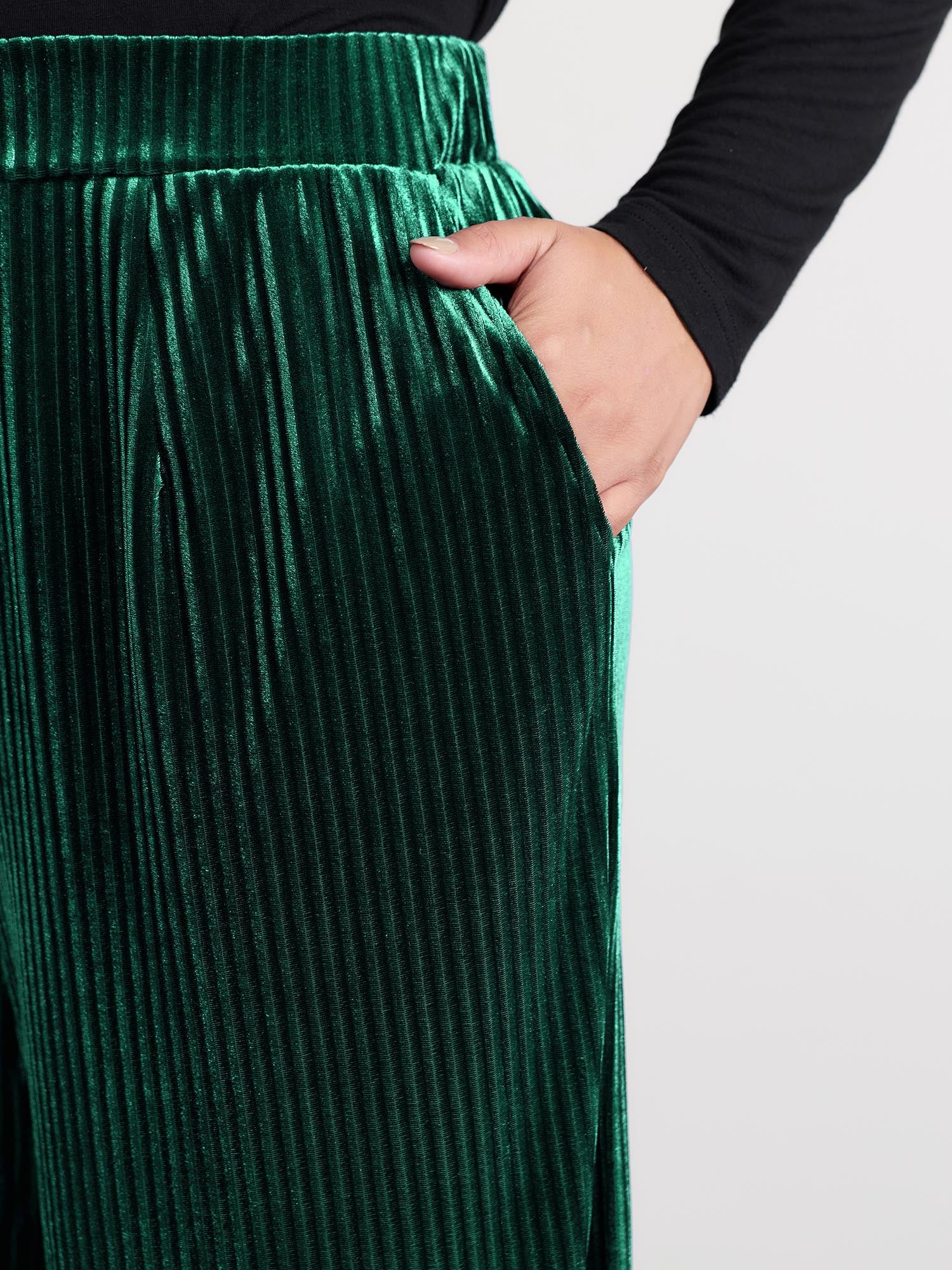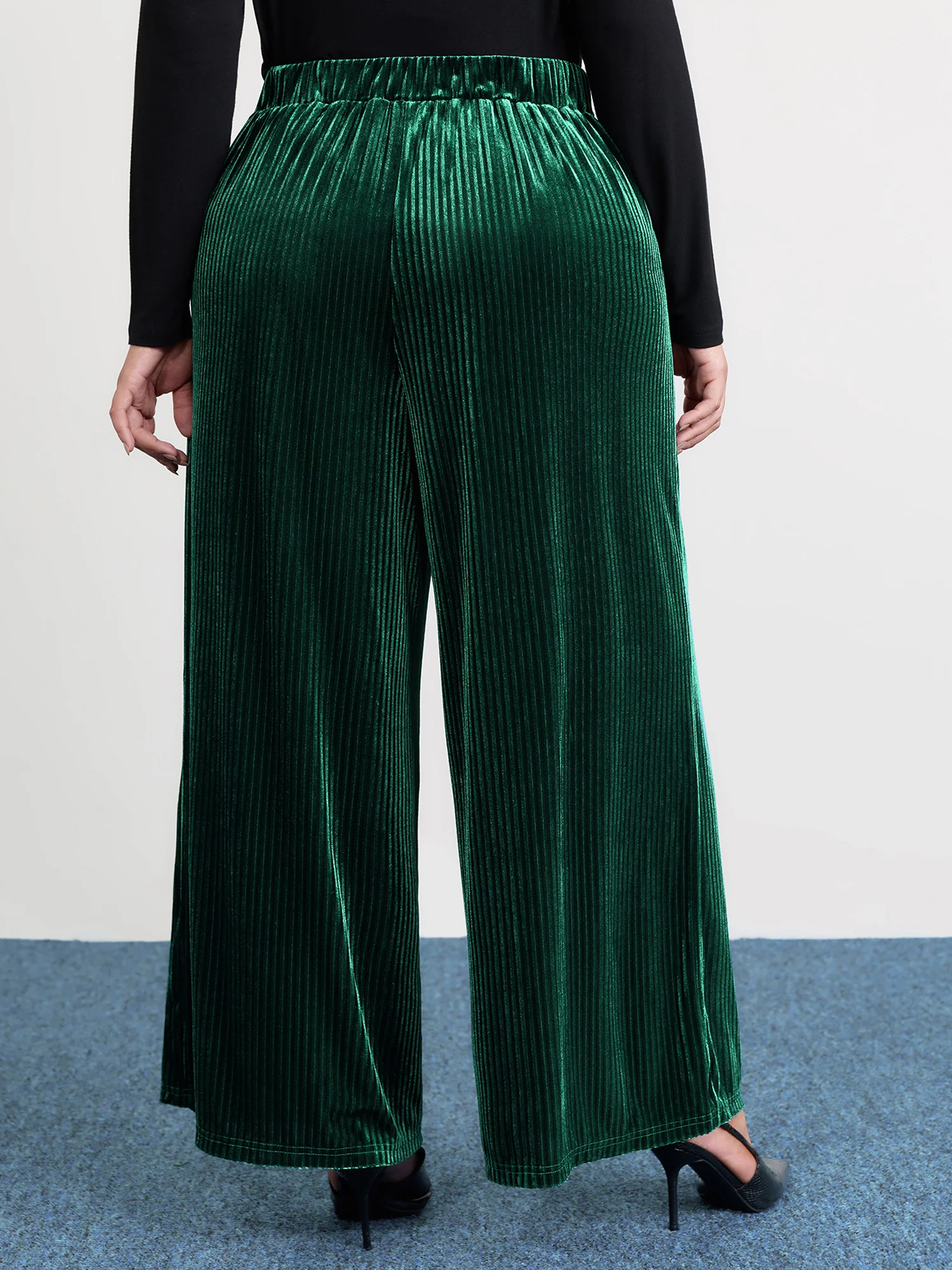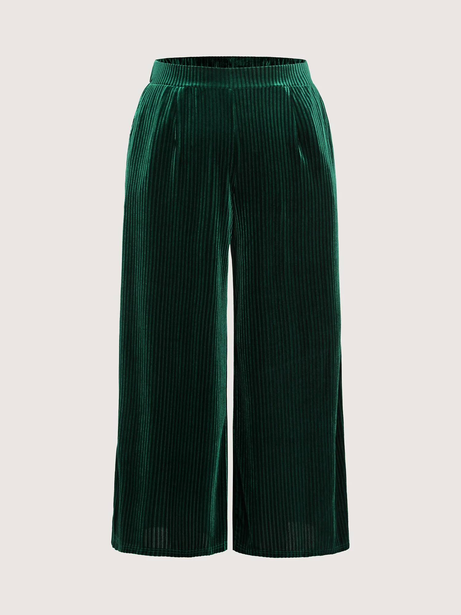 Velvet Belted Wide-Leg Pockets Jumpsuit