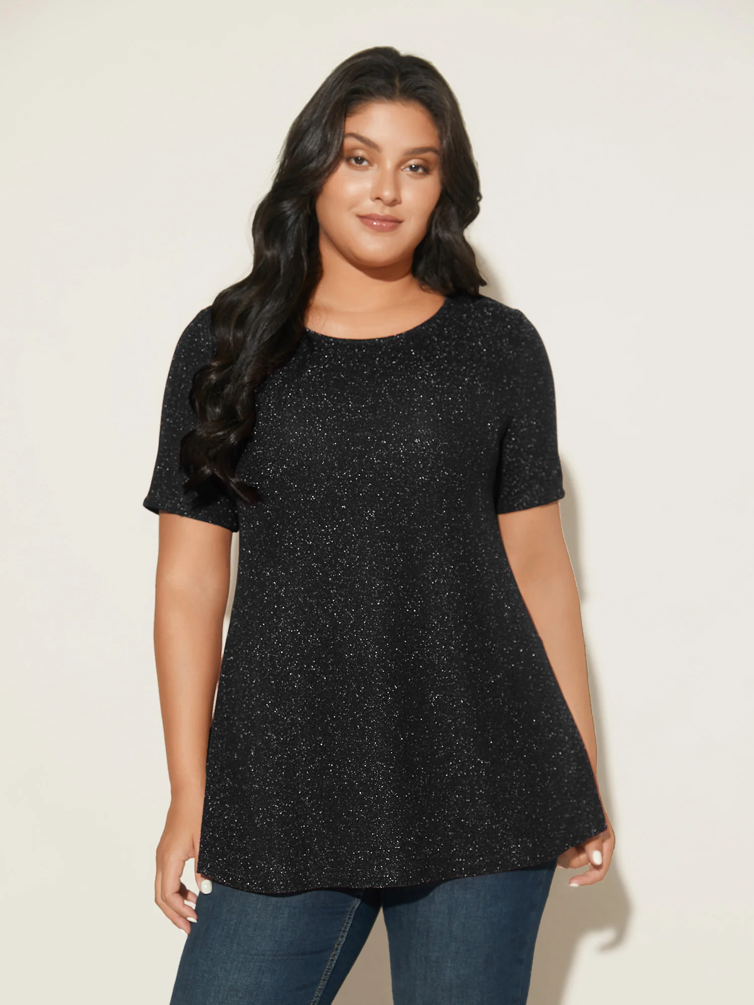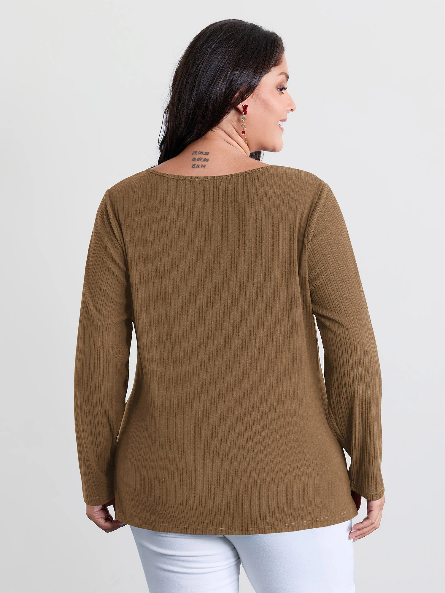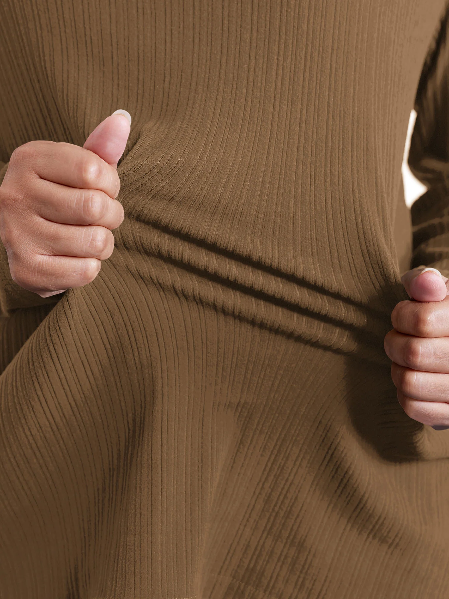 Super Stretchy Ribbed Asymmetrical Neck T-Shirt