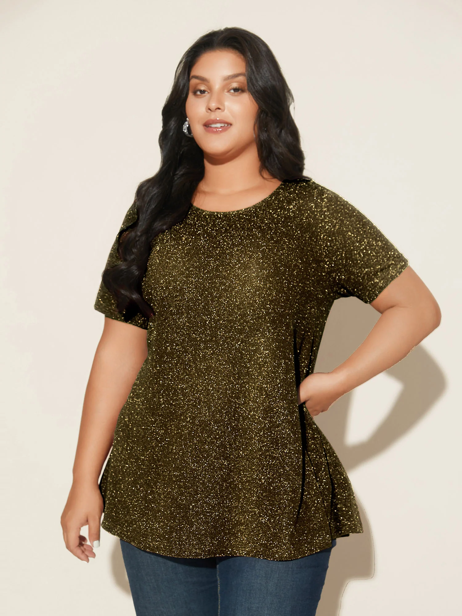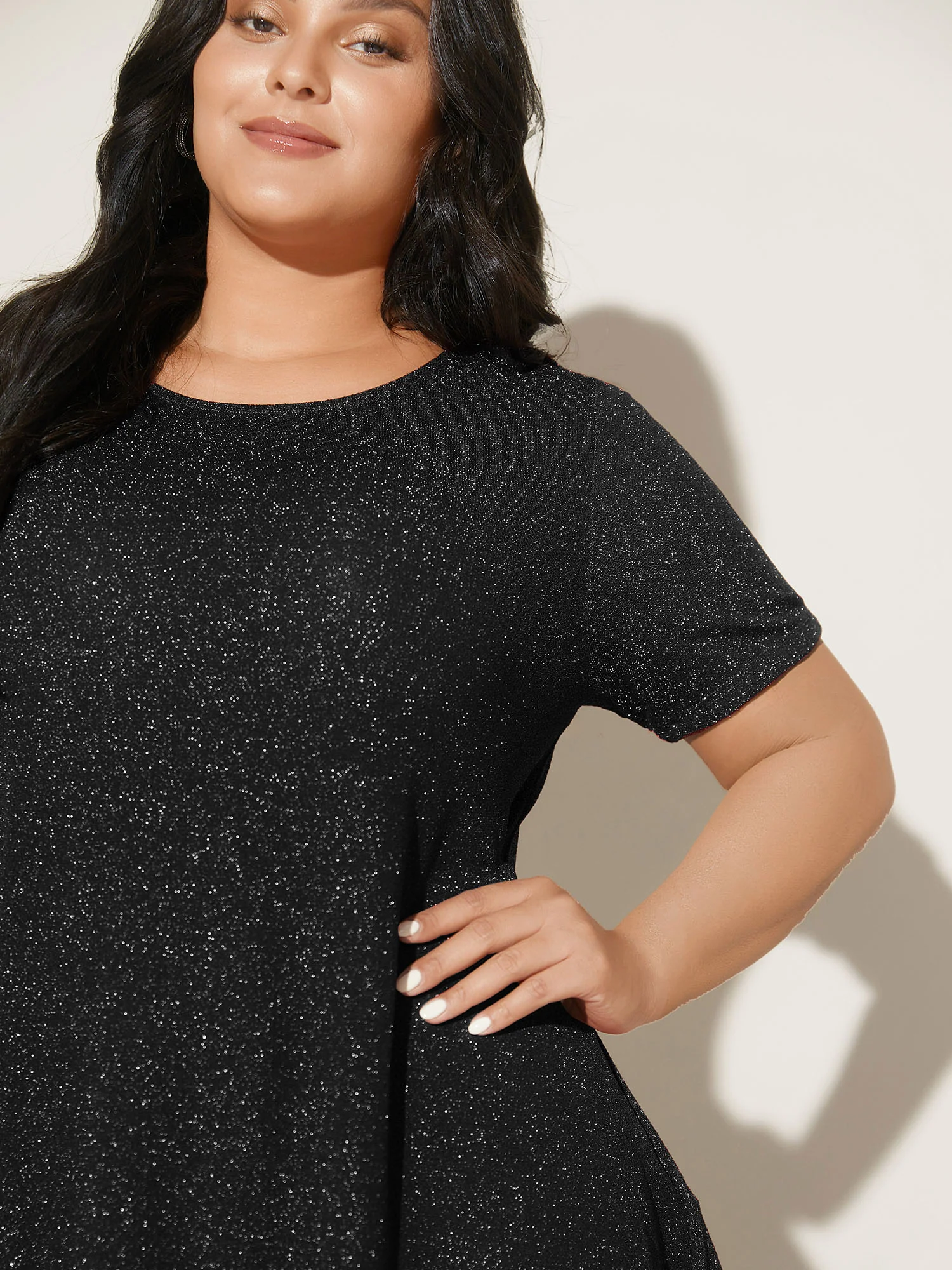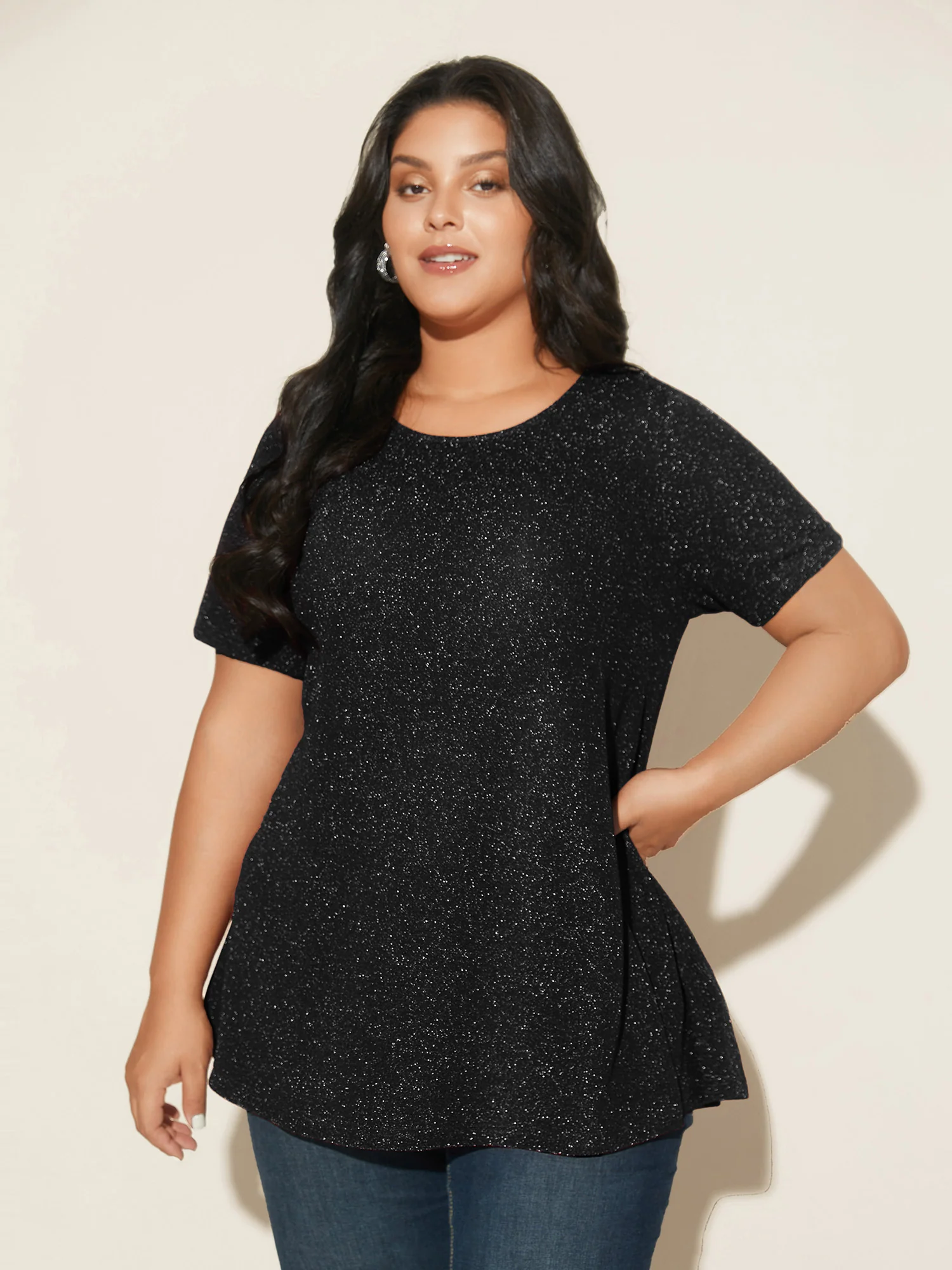 Super Stretchy Ribbed Asymmetrical Neck T-Shirt