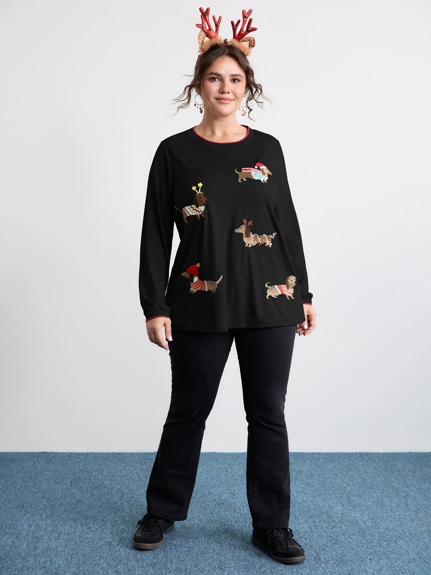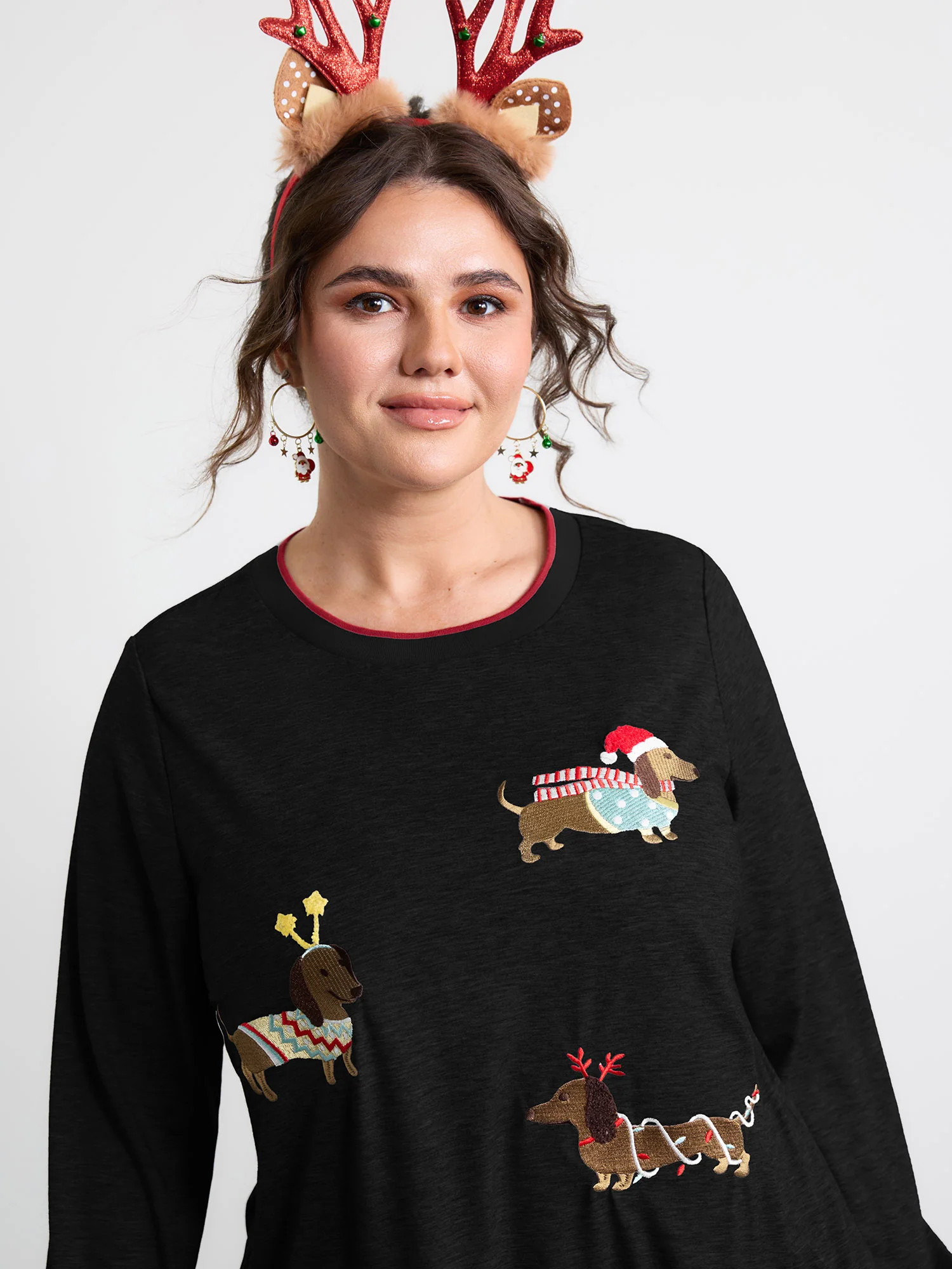 Supersoft Puppy Embroidery Contrast T-Shirt