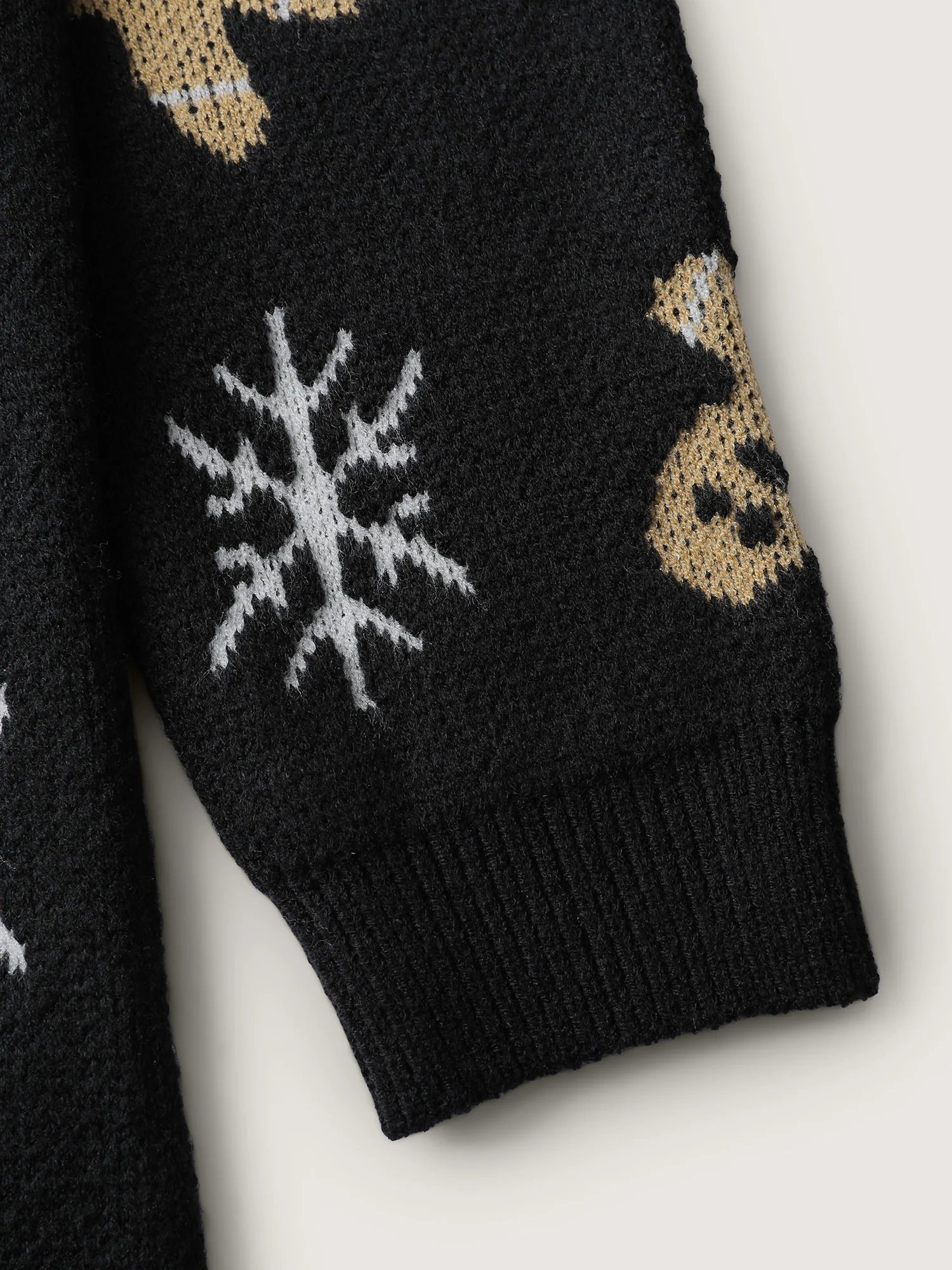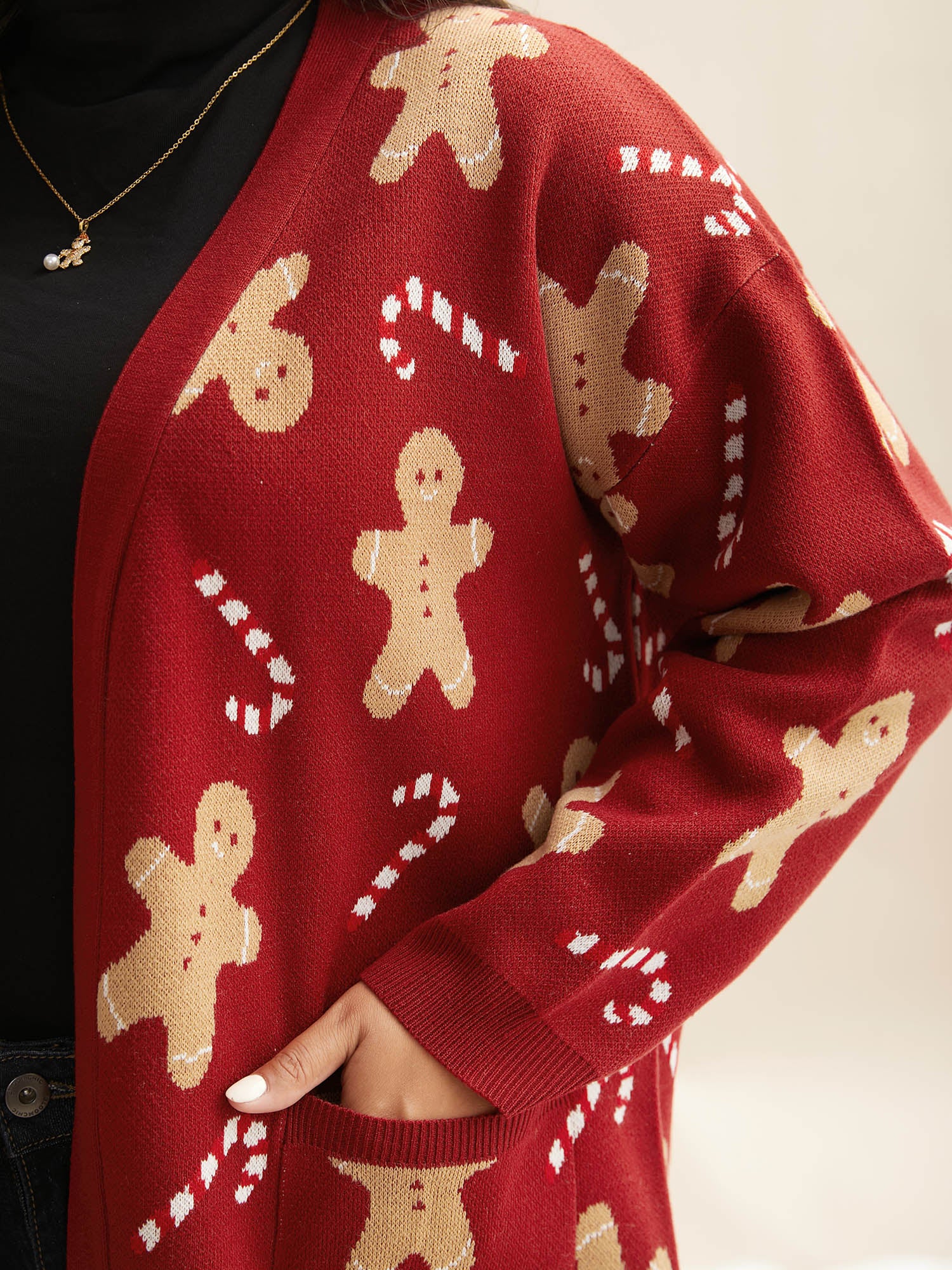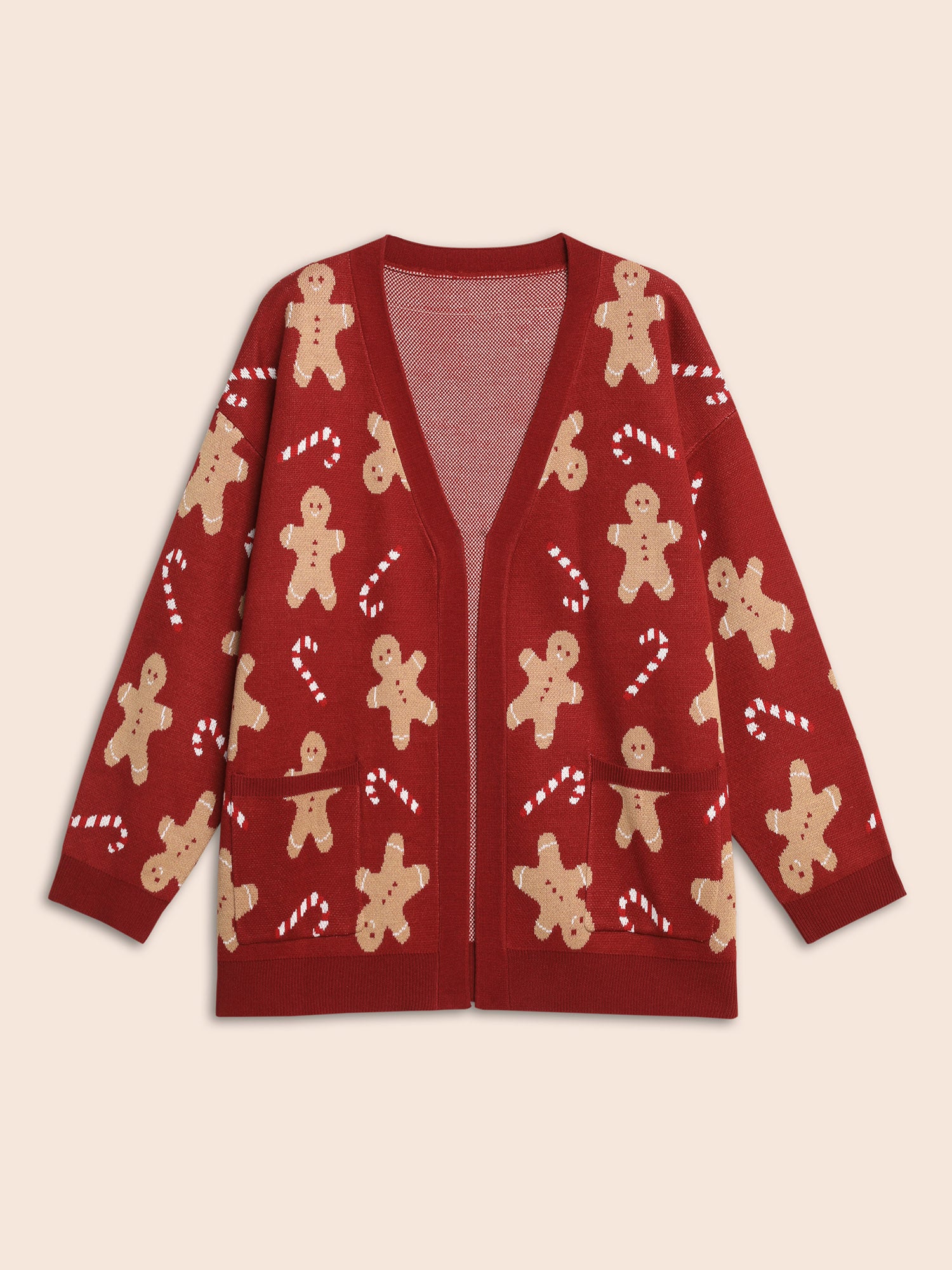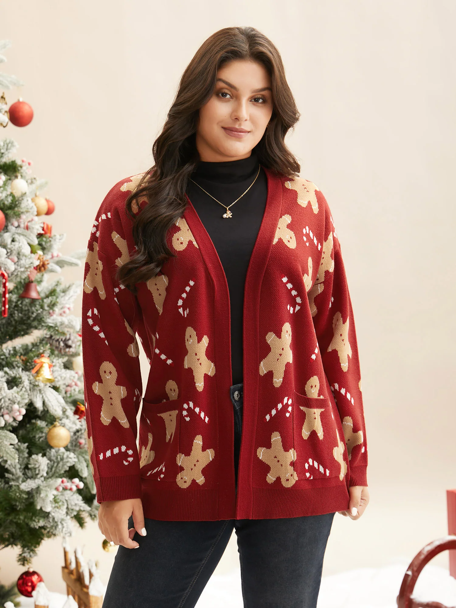 Supersoft Gingerbread Holiday Jacquard Pockets Cardigan