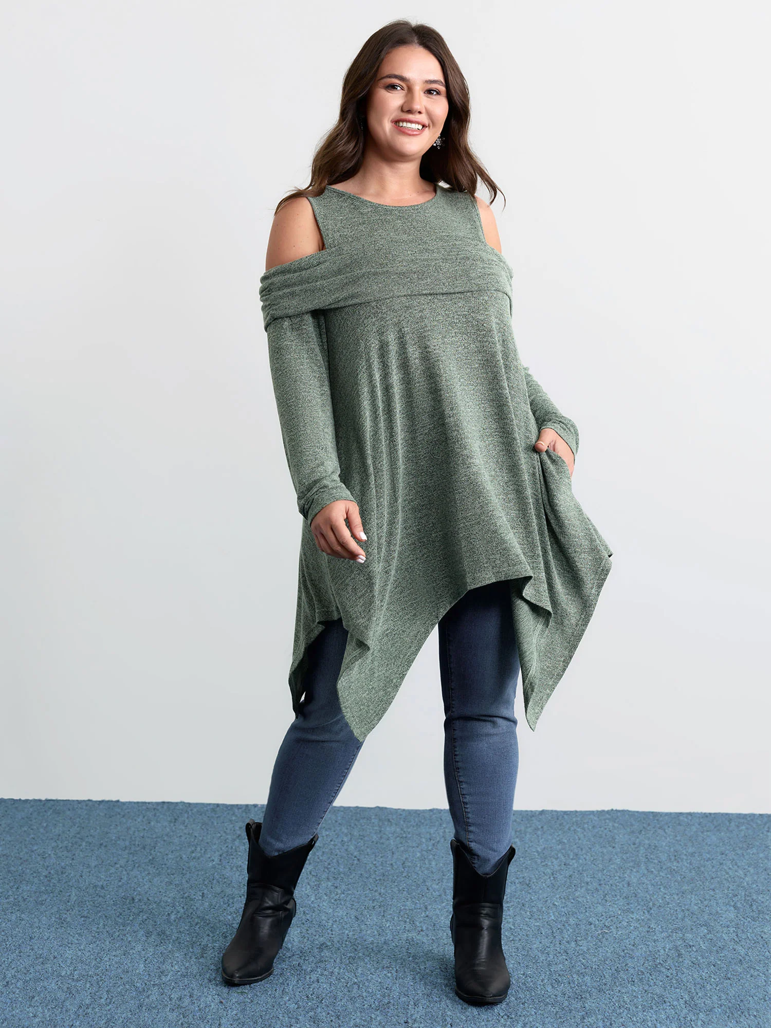 Supersoft Off-Shoulder Pleated Asymmetrical Hem Top