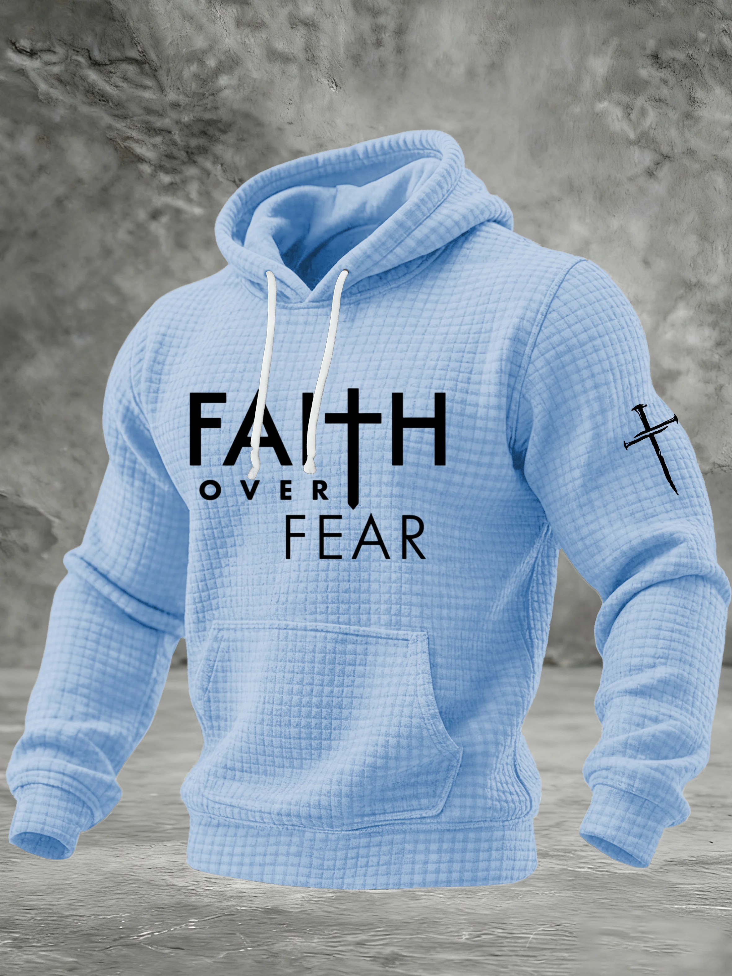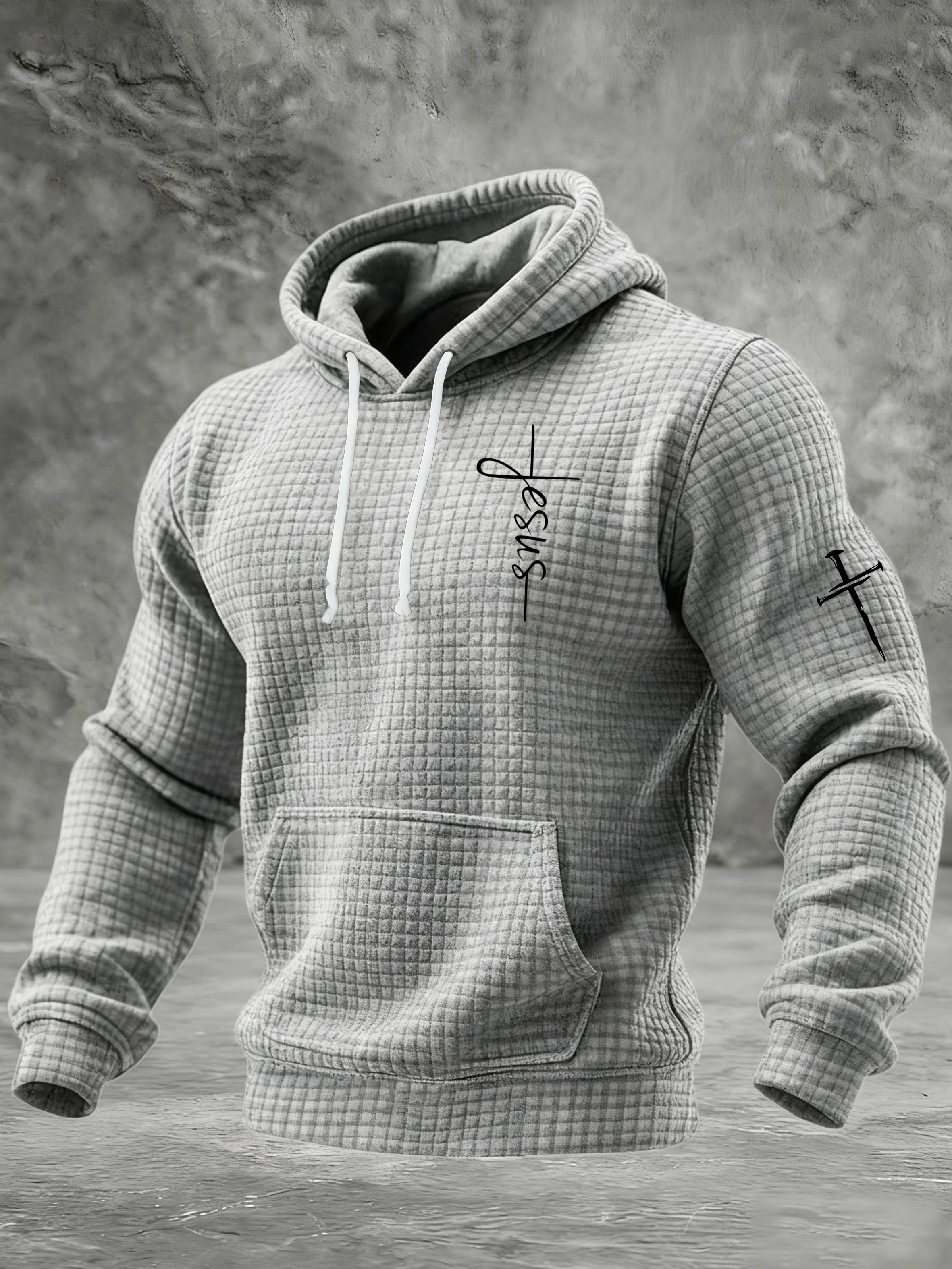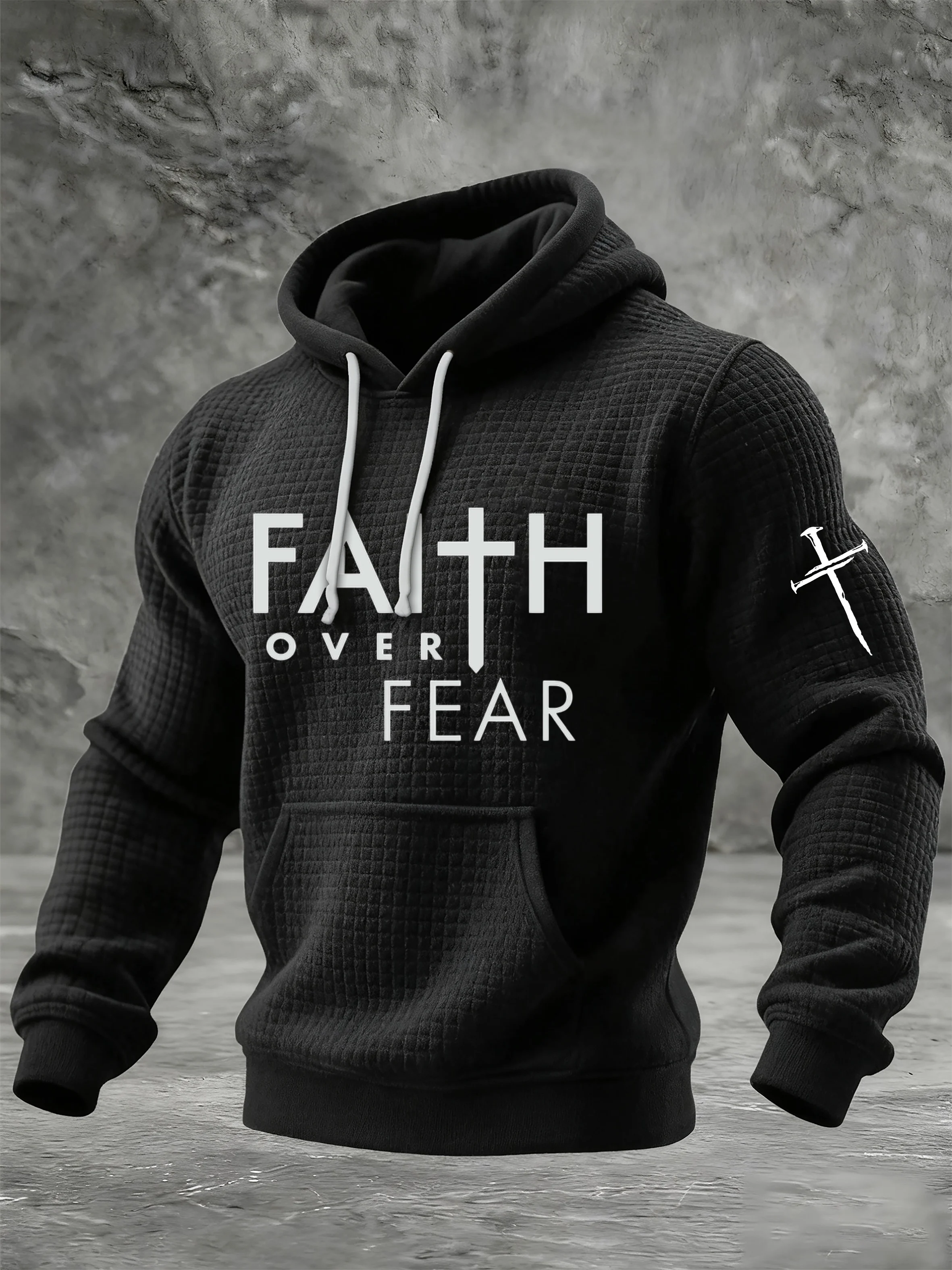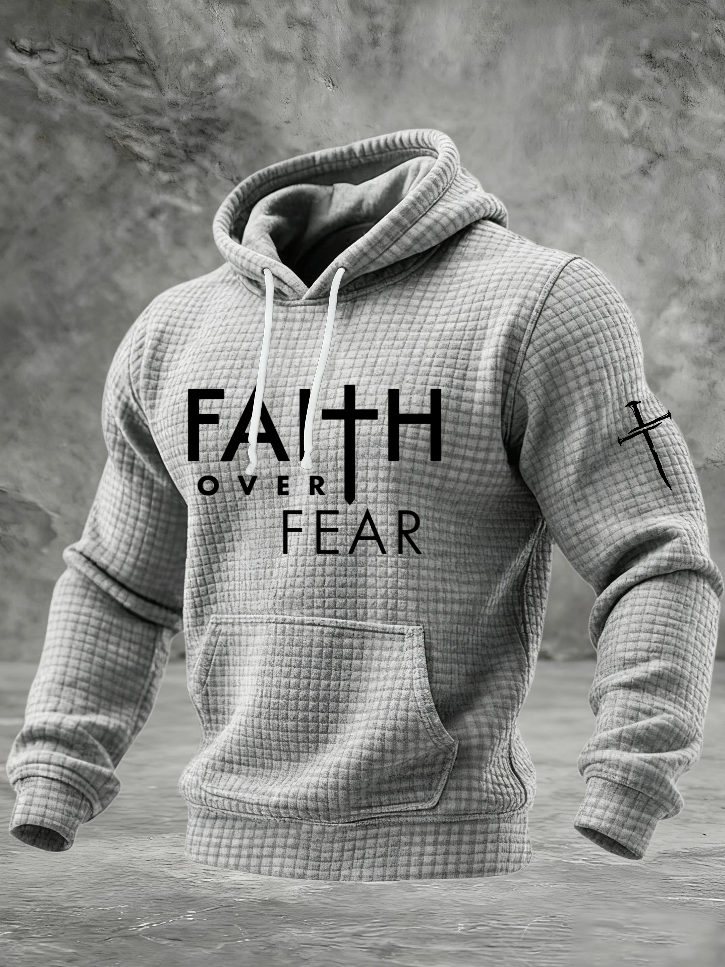 Men's Faith Print Checkered Fabric Hooded Sweatshirt