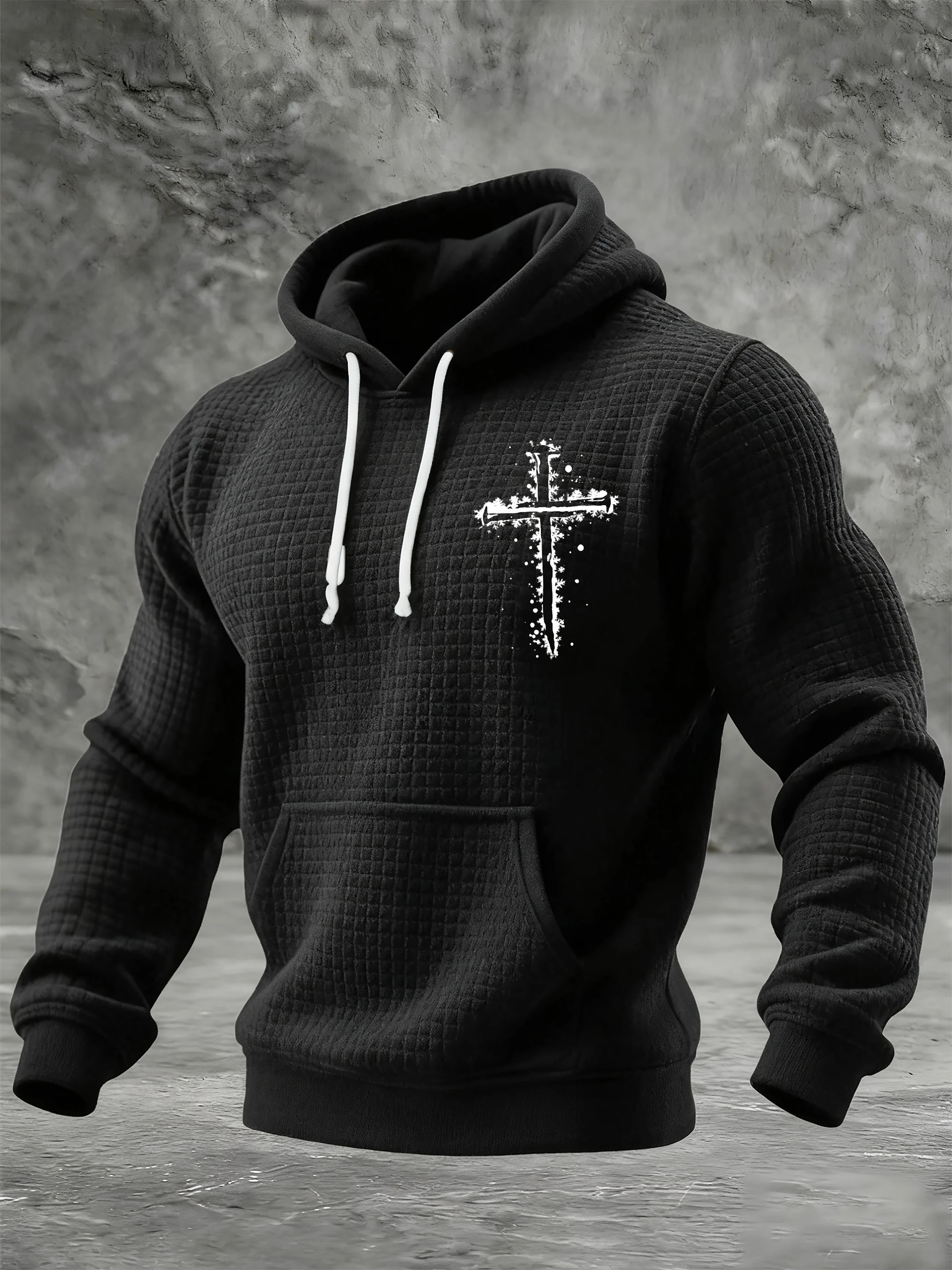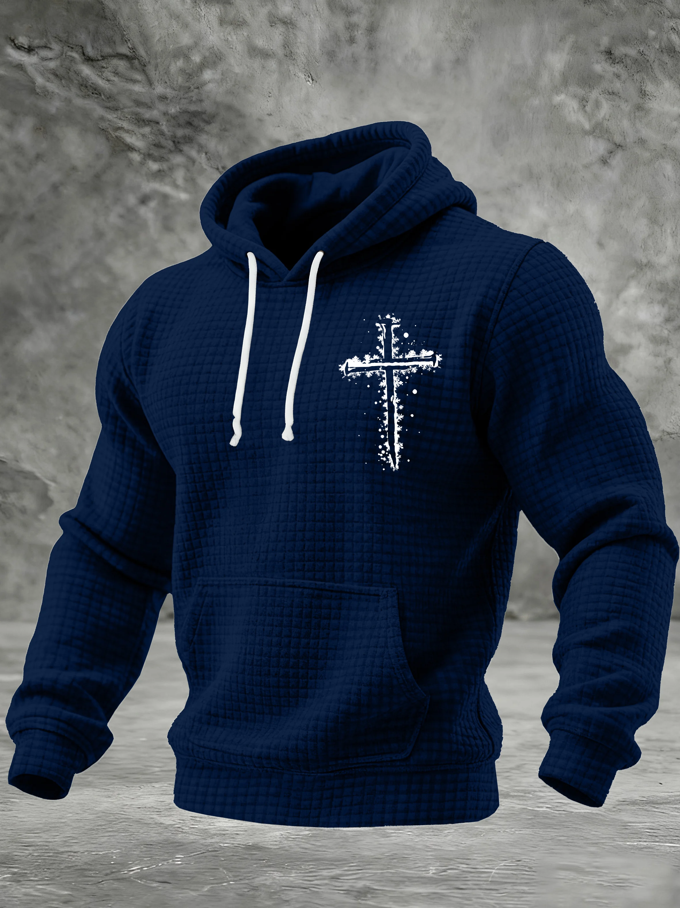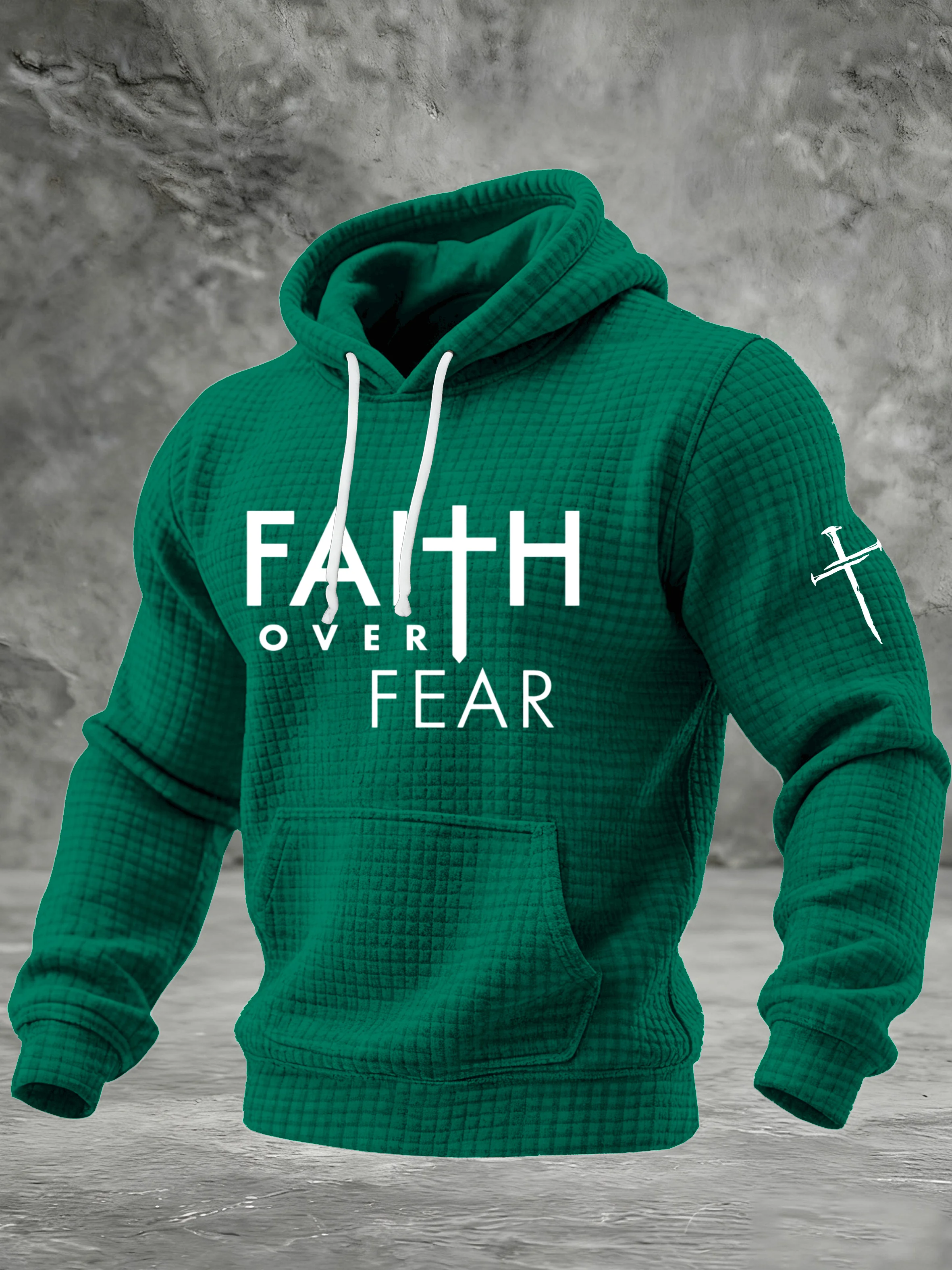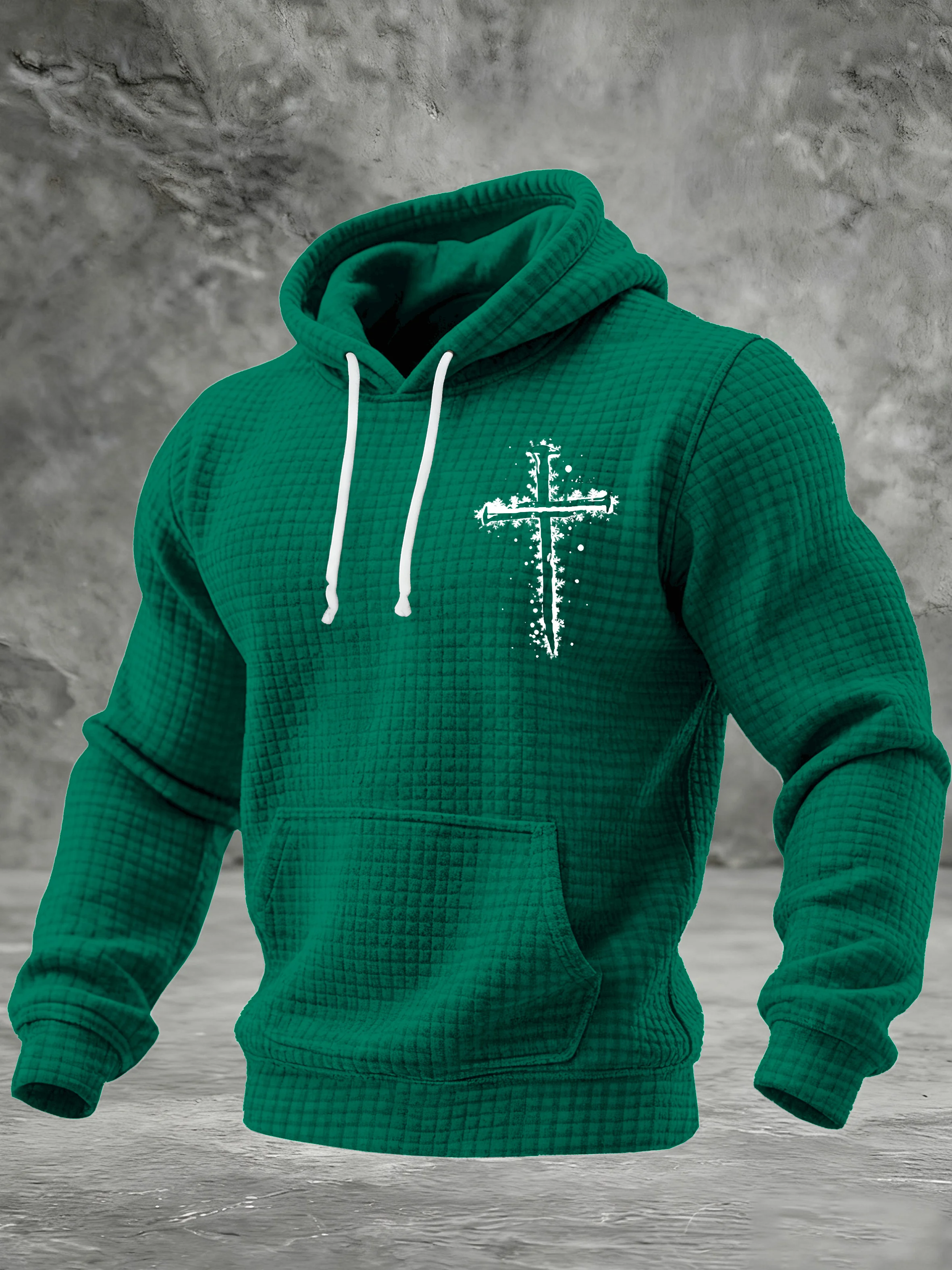 Men's Faith Print Checkered Fabric Hooded Sweatshirt