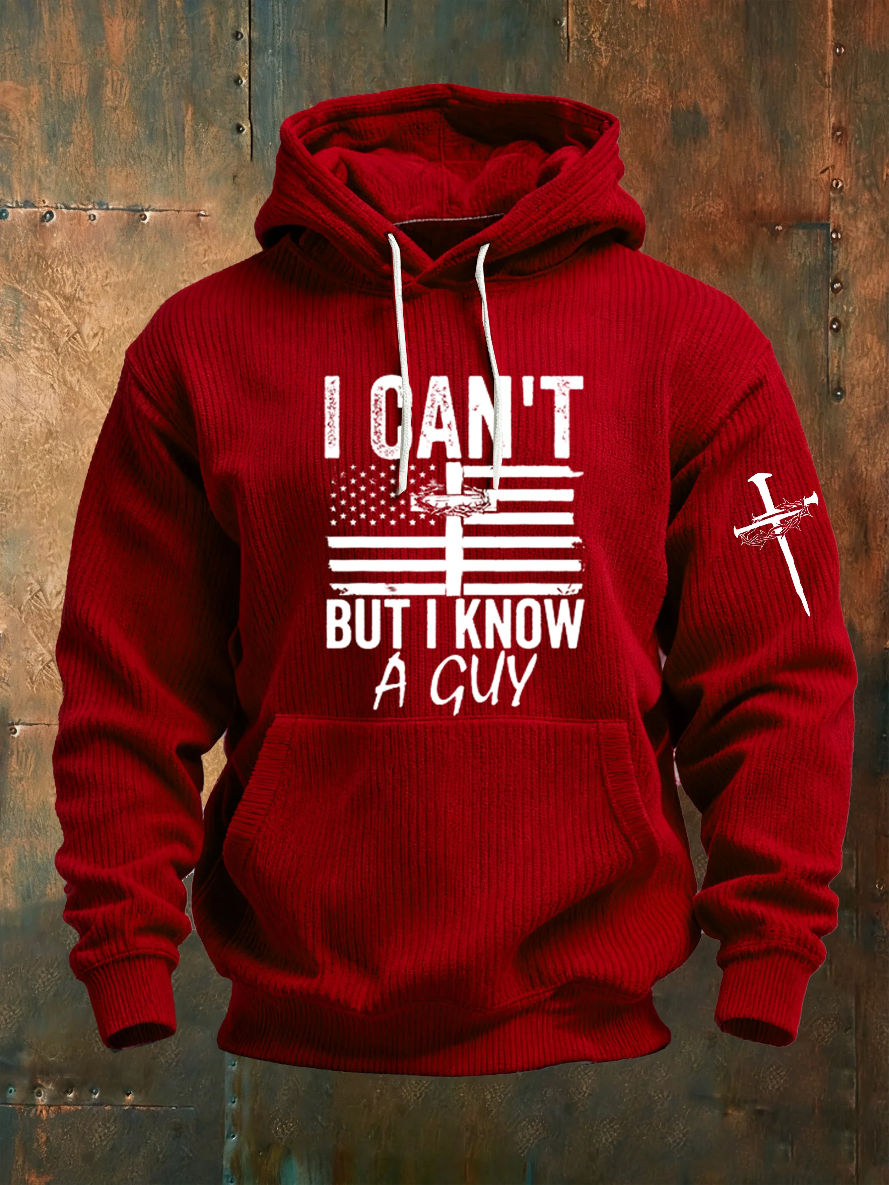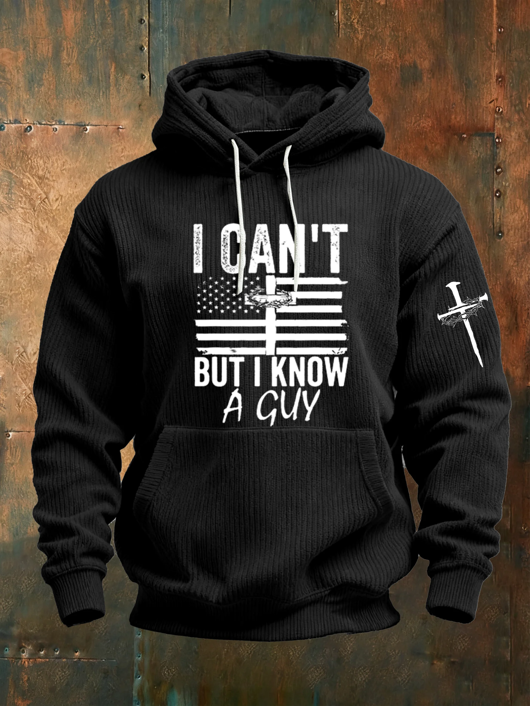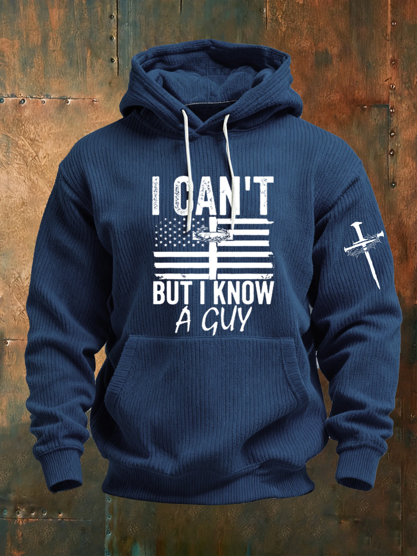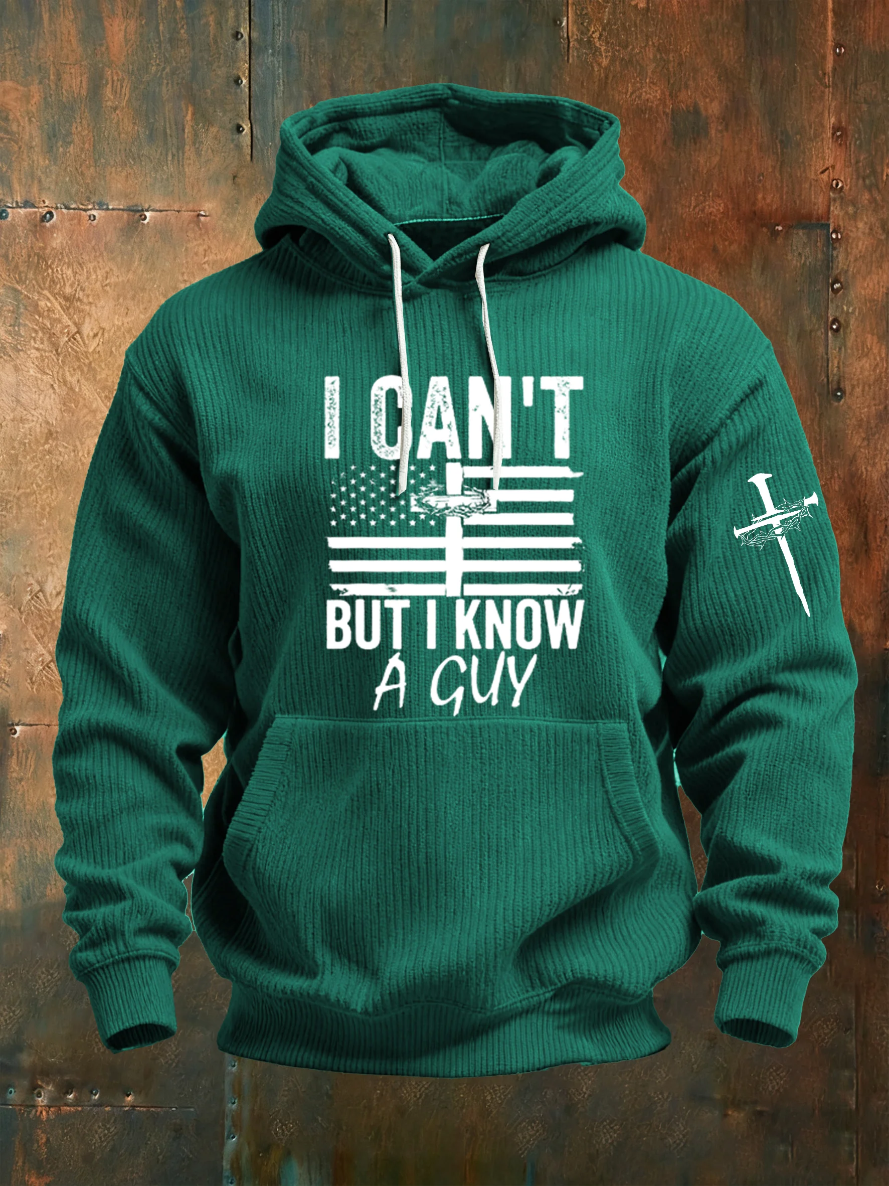 Men's I Can't But I Know A Guy Printed Knitted Fabric Zipper Fur Collar Long-Sleeved Sweatshirt