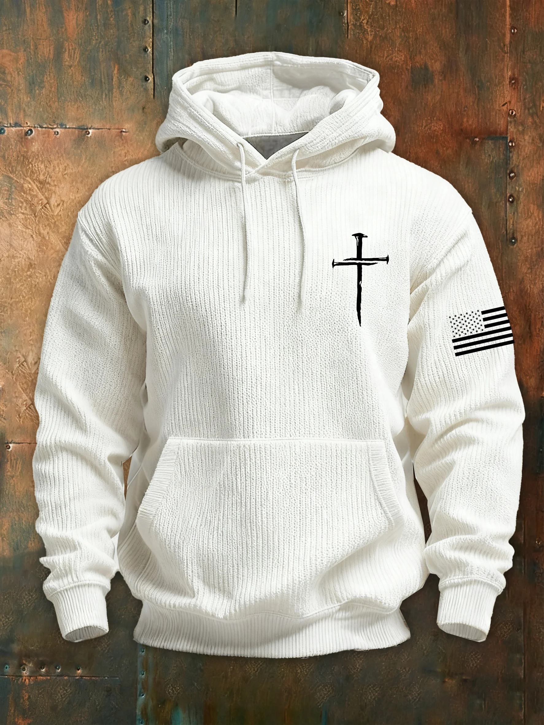 Men's Faith Not By My Strength But His Cross Print Hoodie