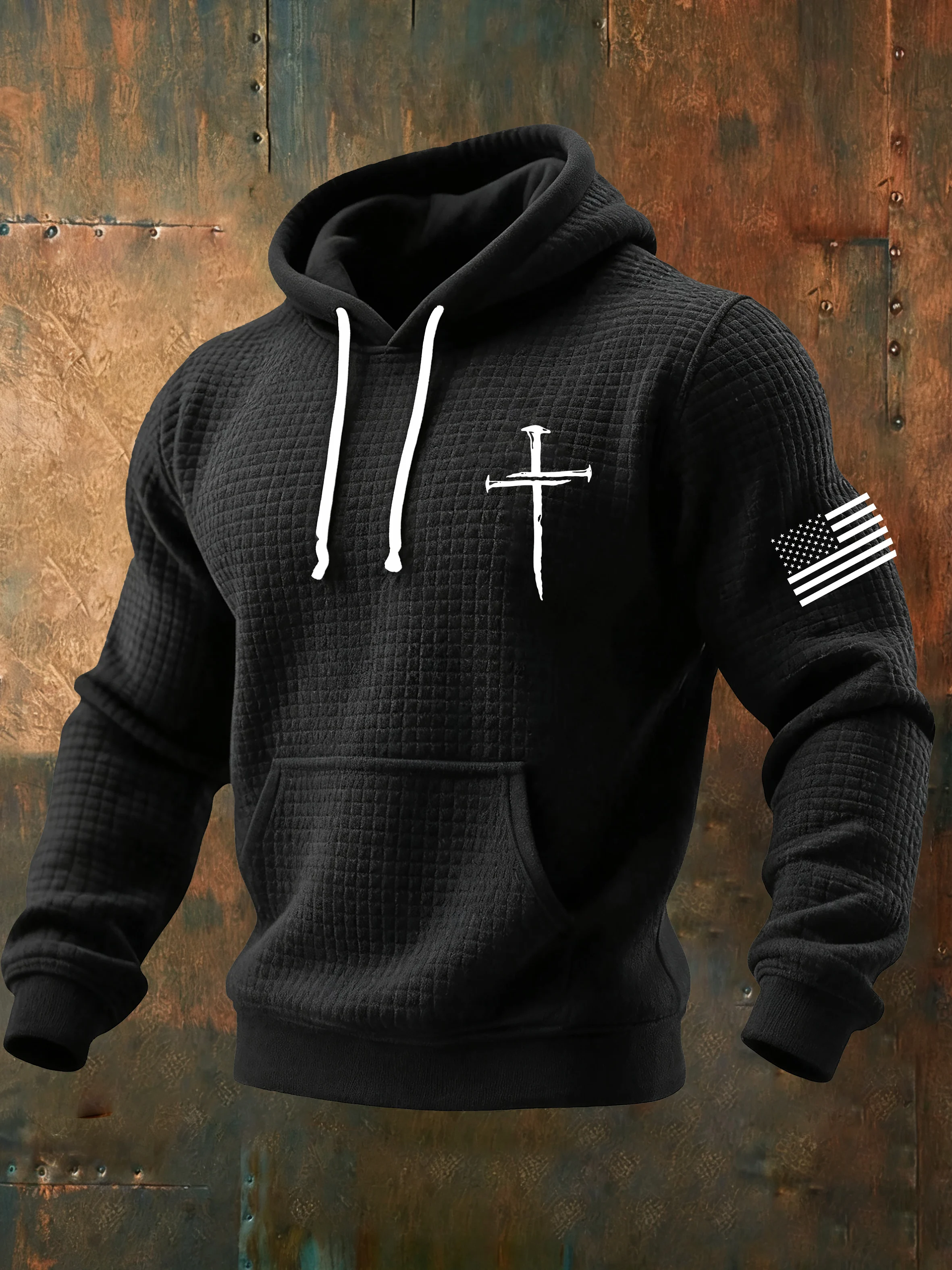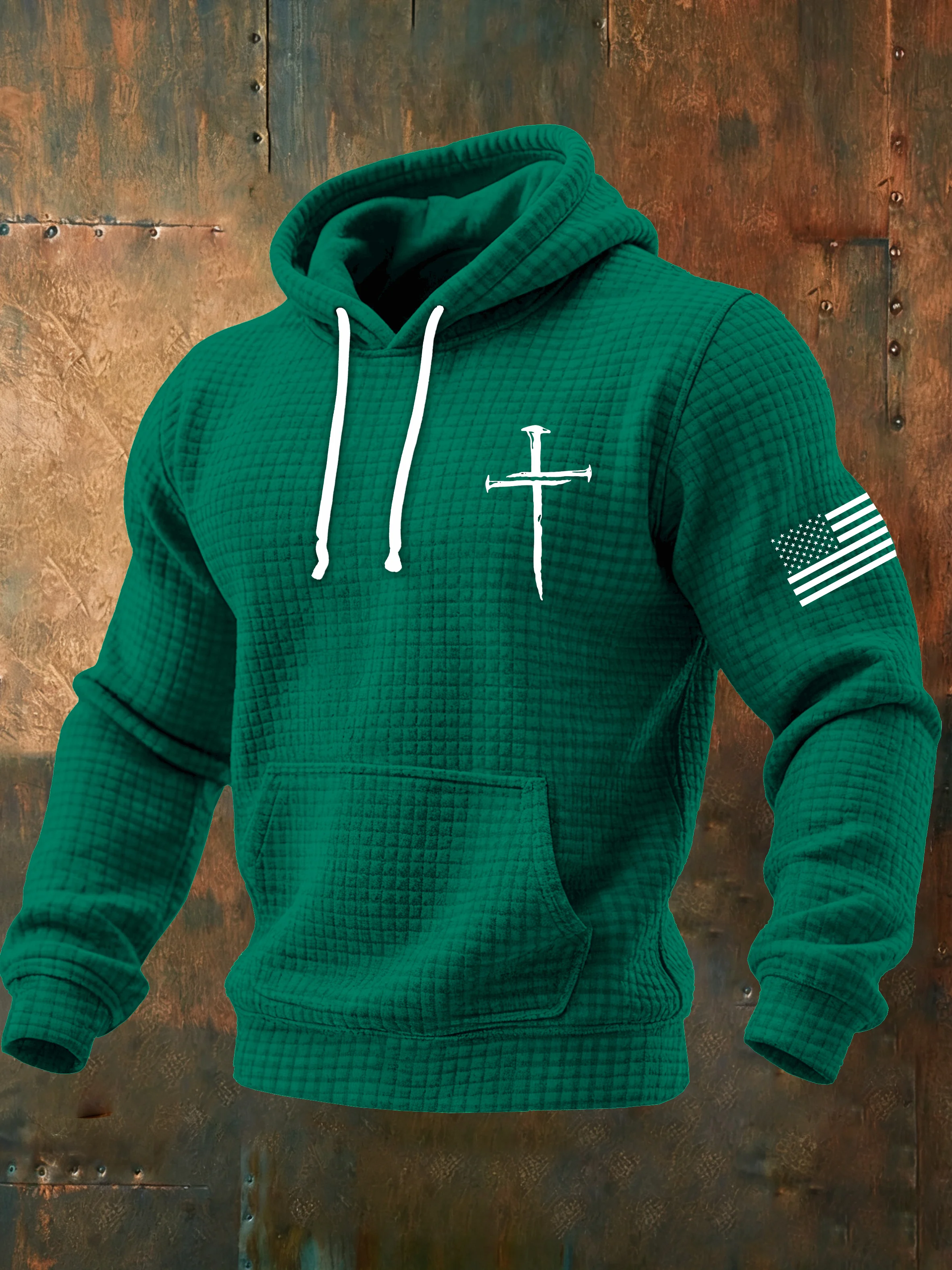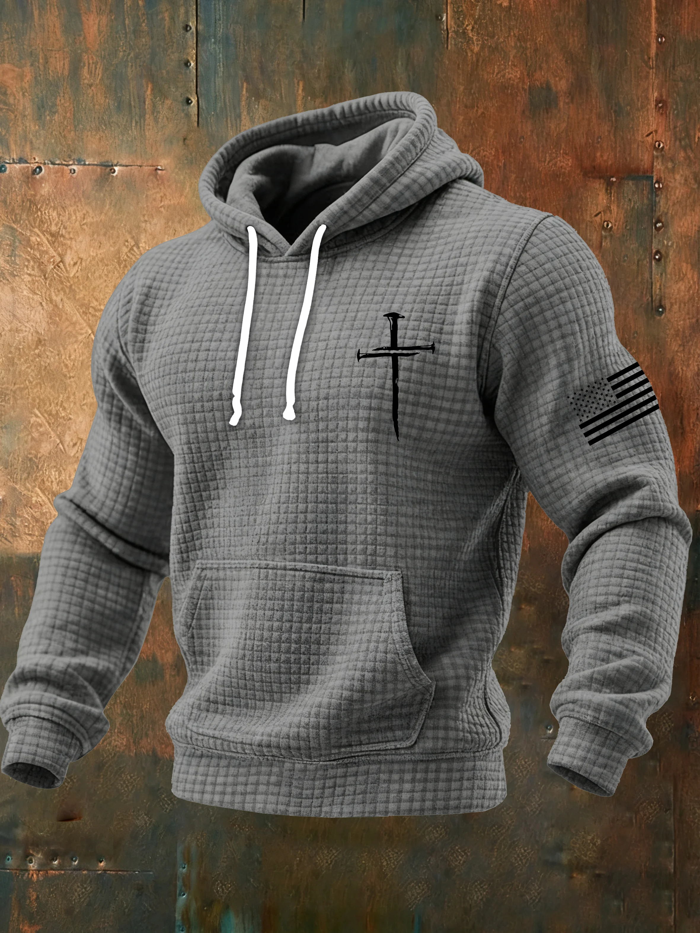Men's Faith Print Checkered Fabric Hooded Sweatshirt
