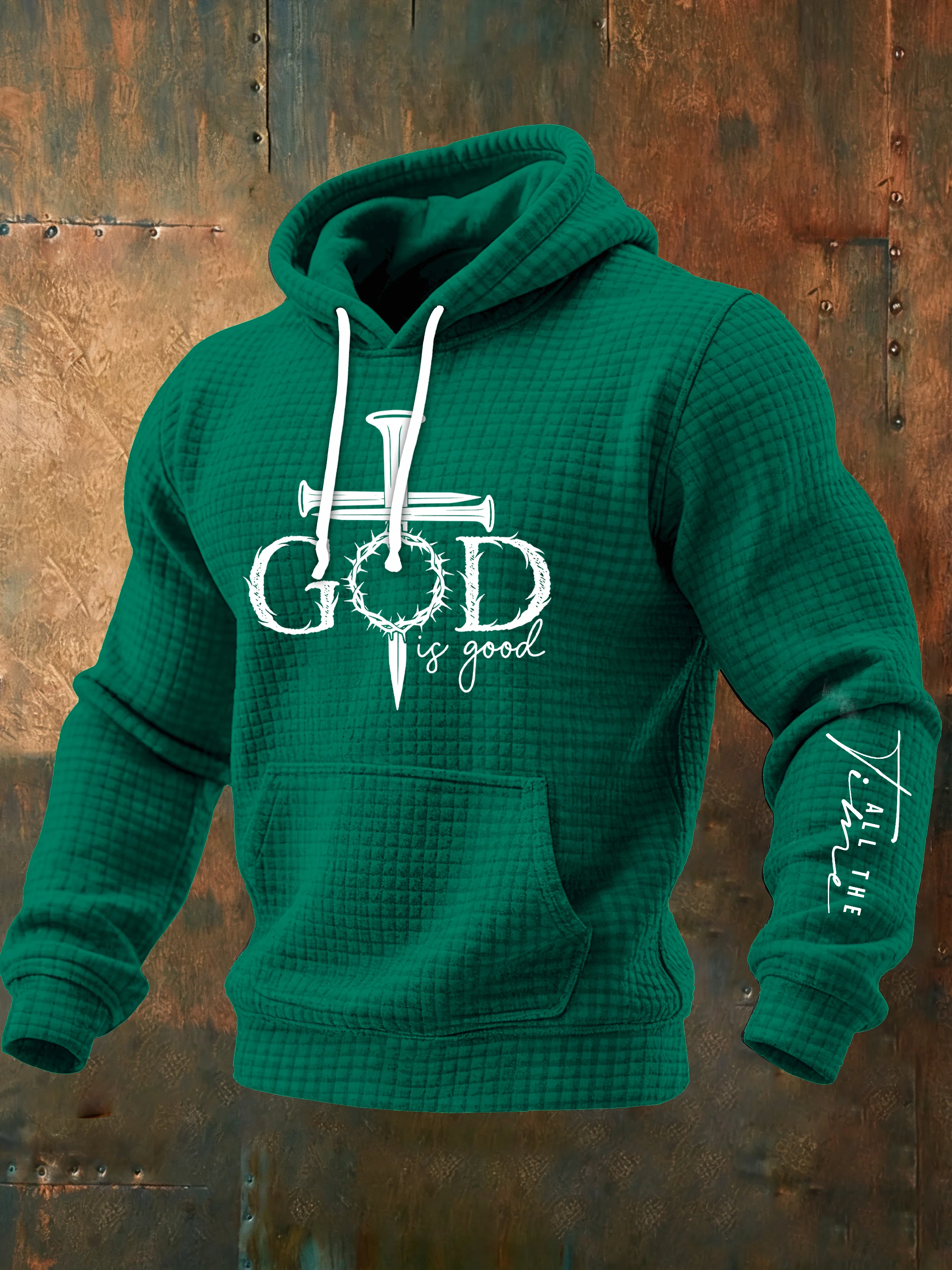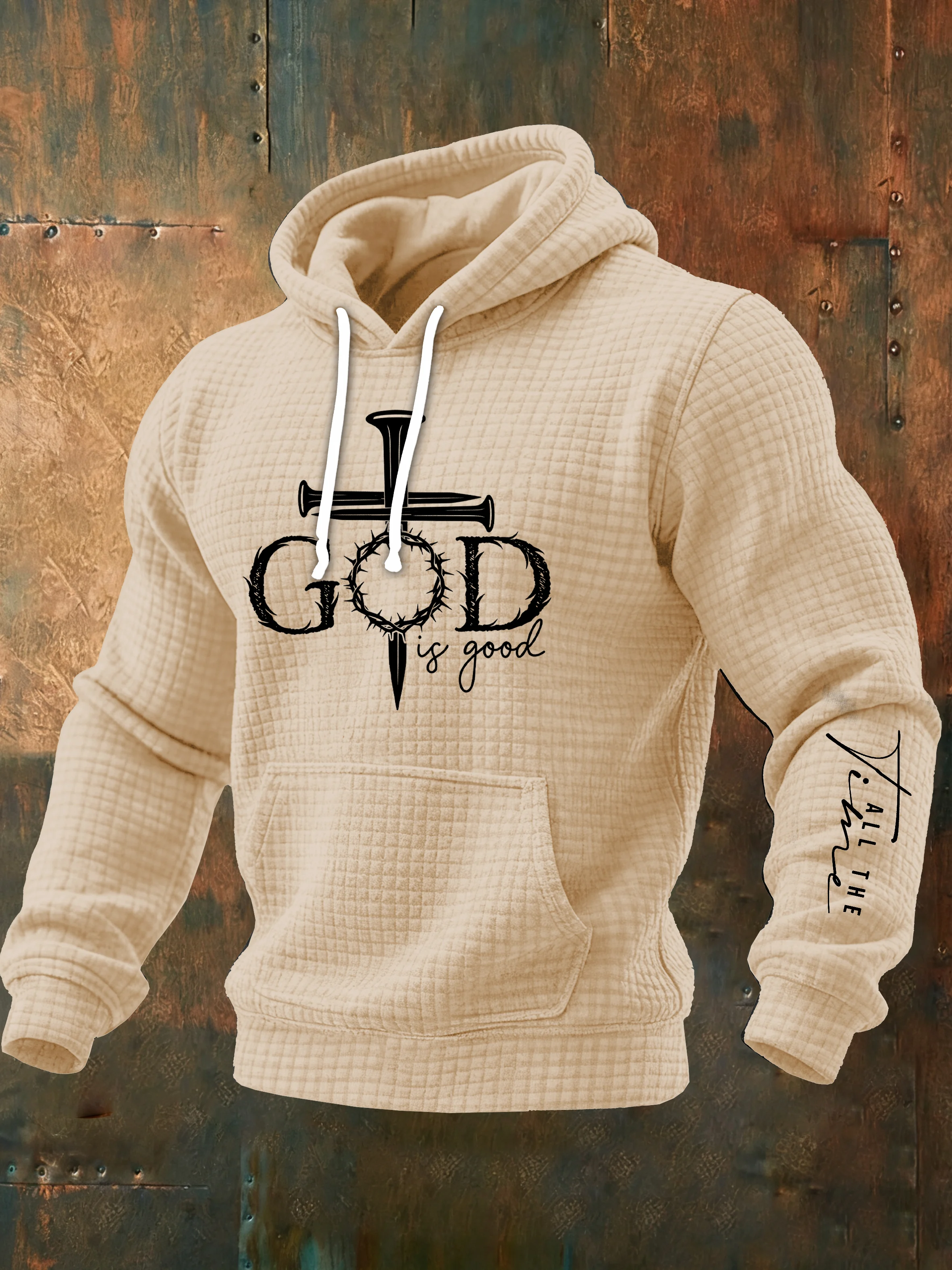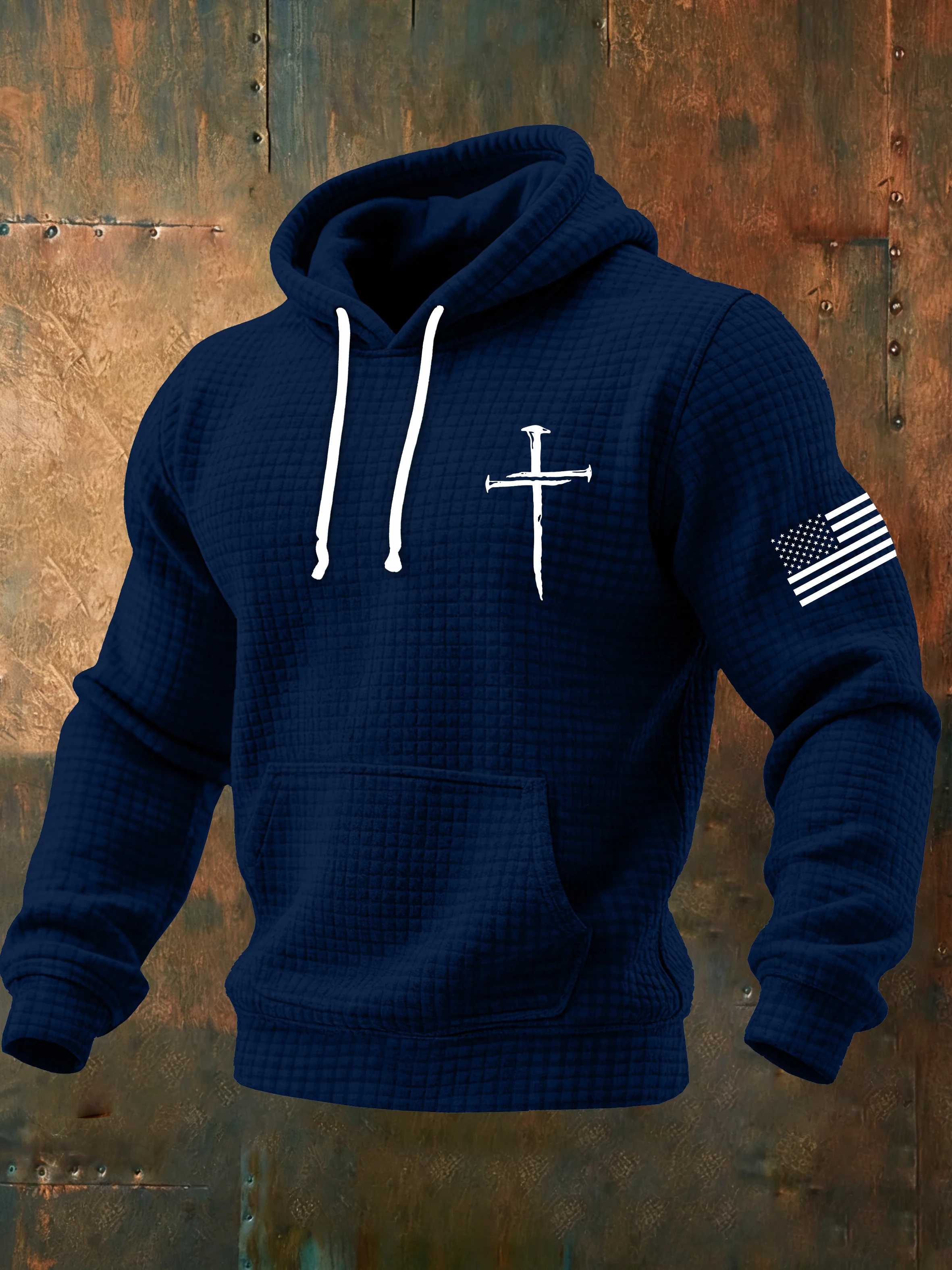 Men's Faith Print Checkered Fabric Hooded Sweatshirt
