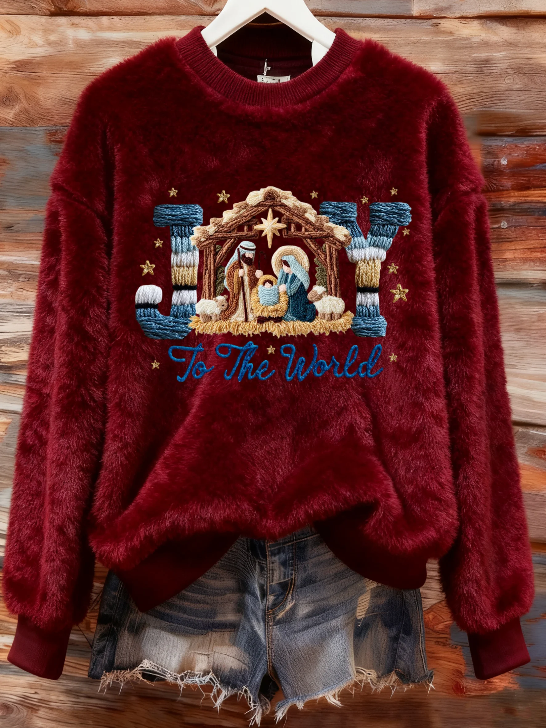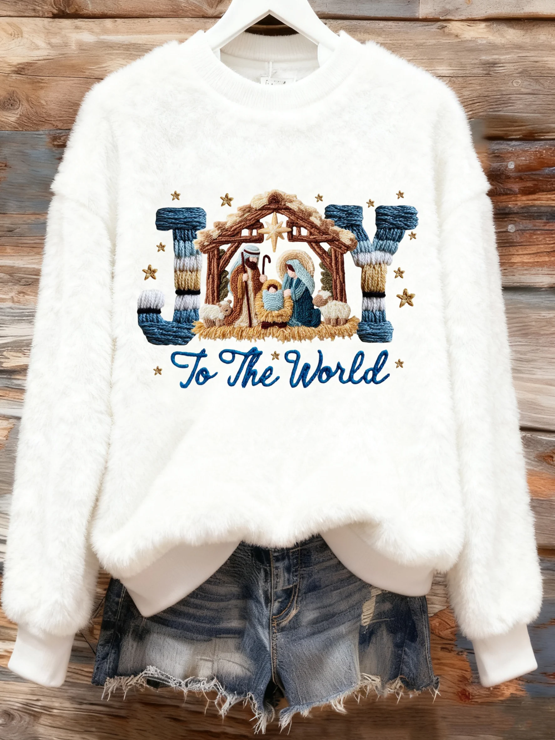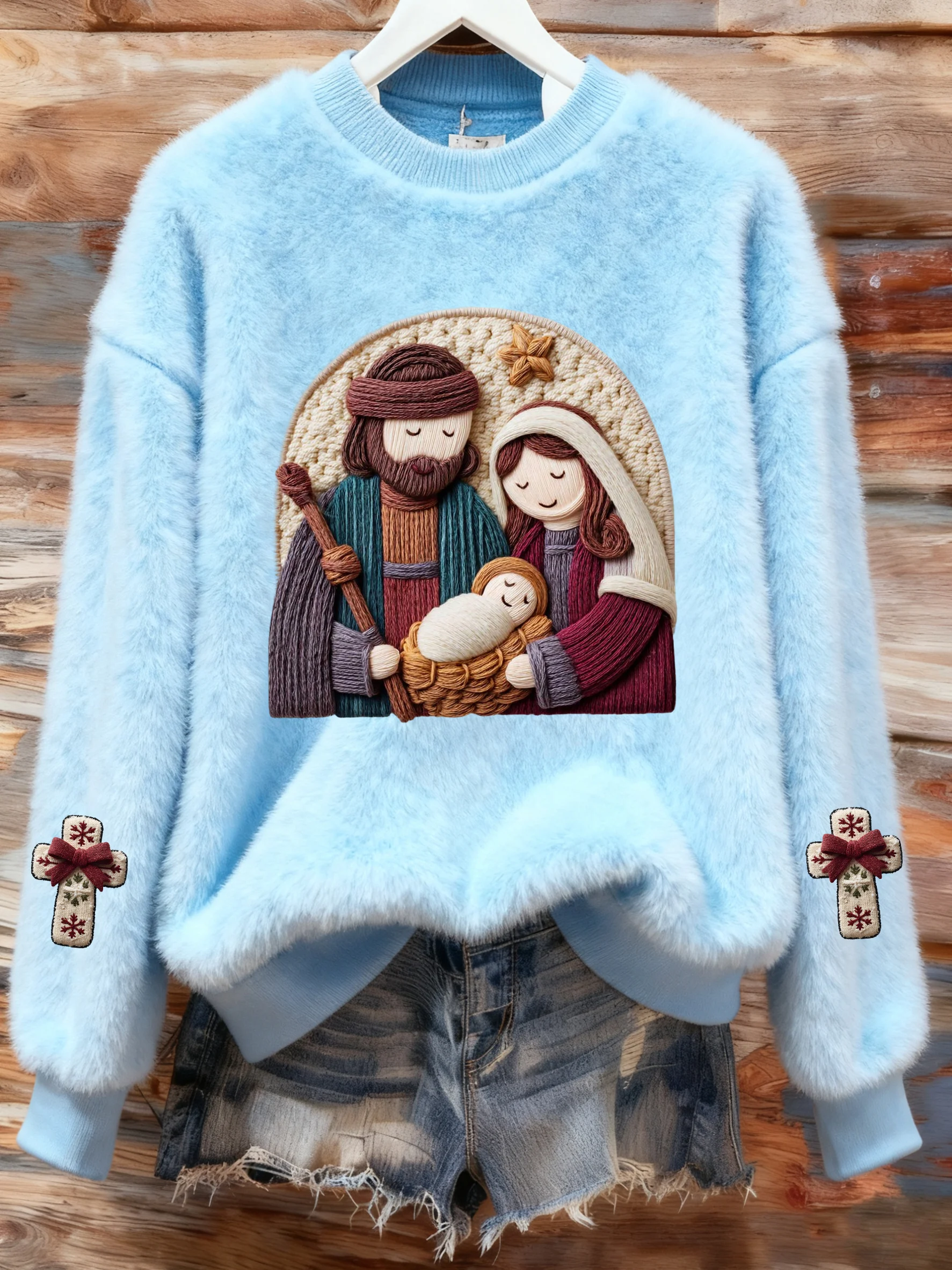 Women's Winter Christmas Cross Print Plush Crew Neck Top