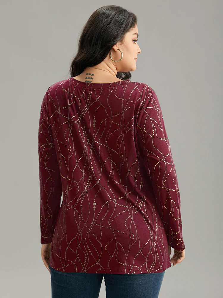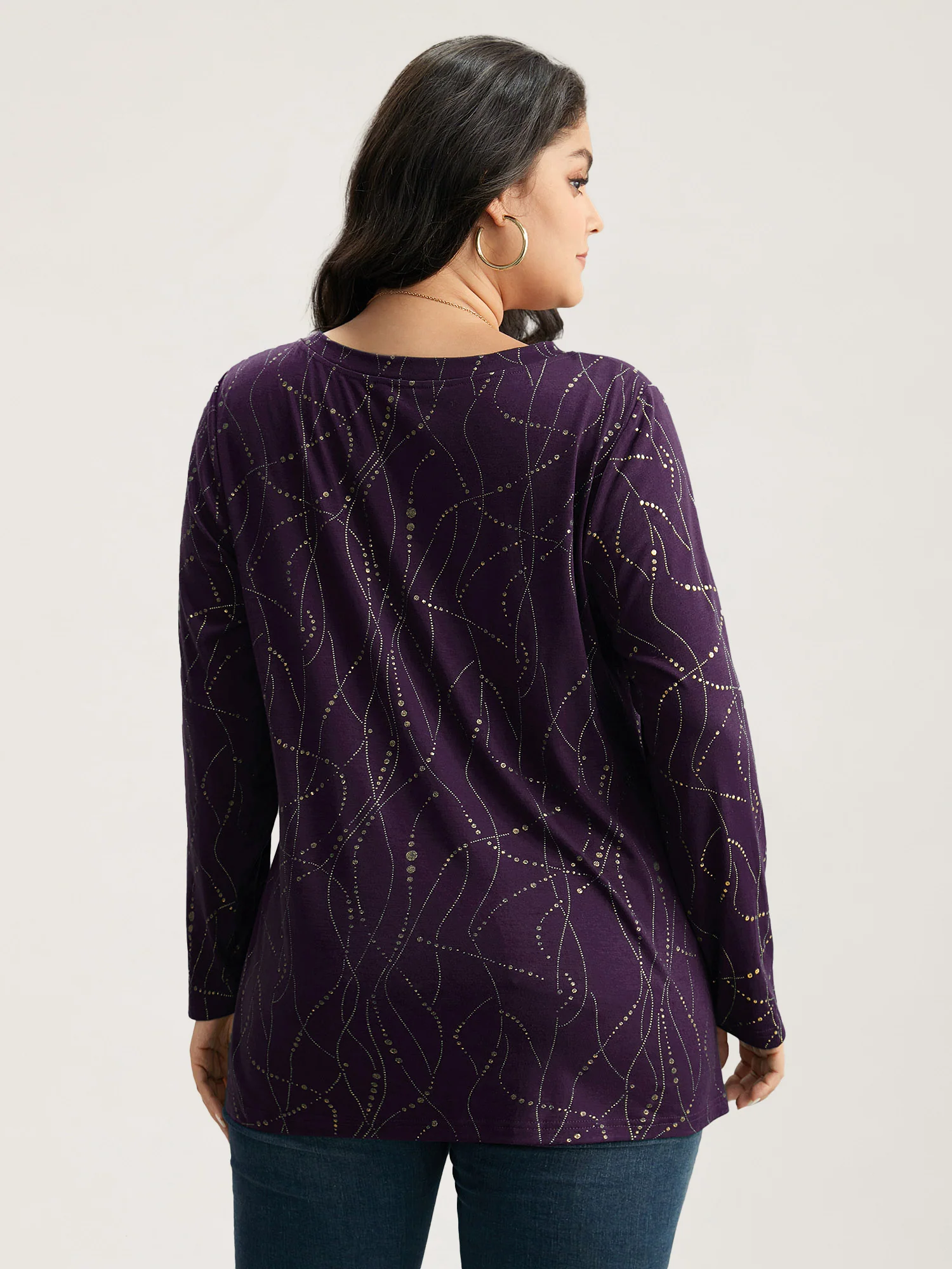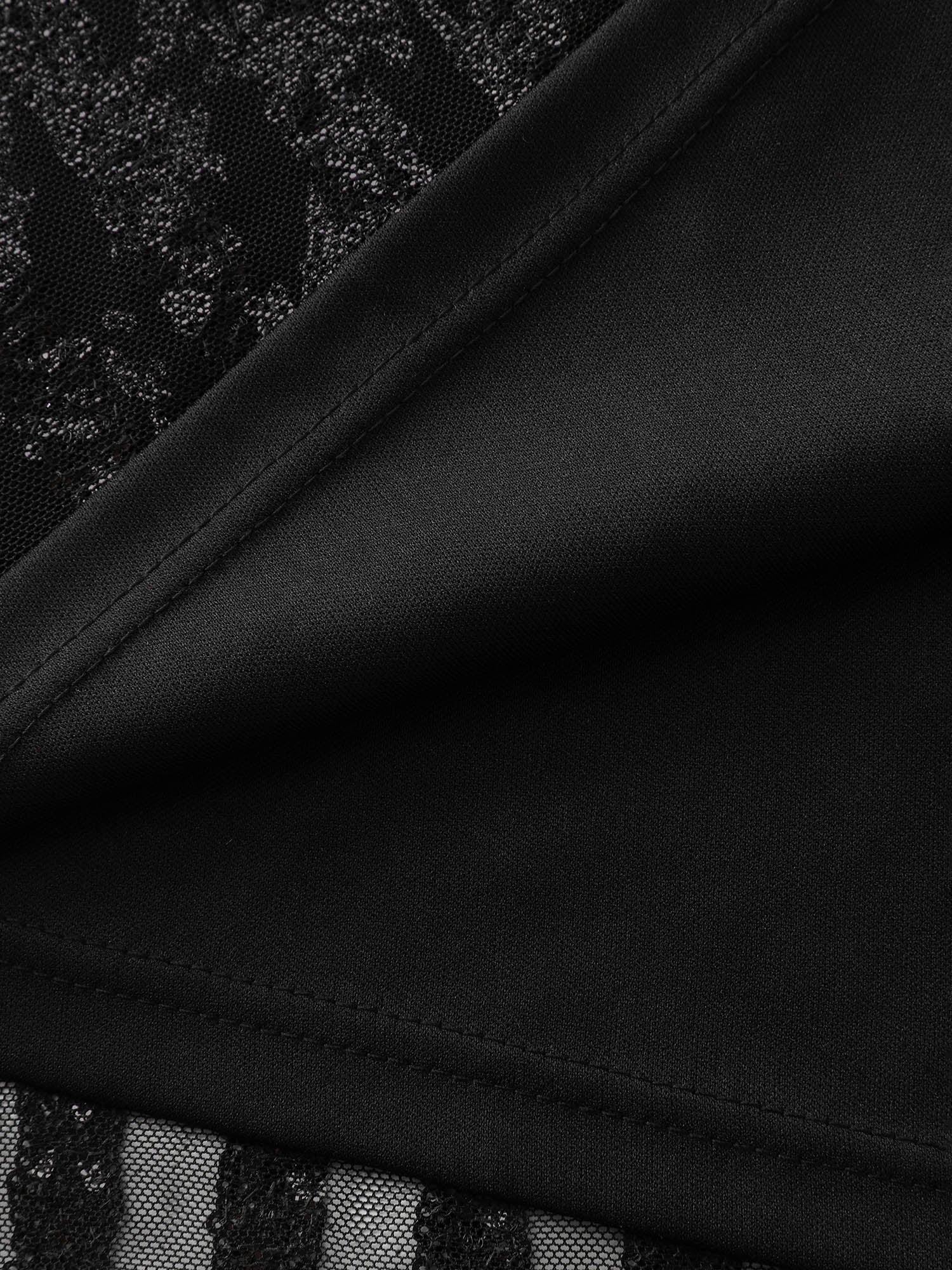 Velvet Patchwork Mesh Sequin Notched T-shirt