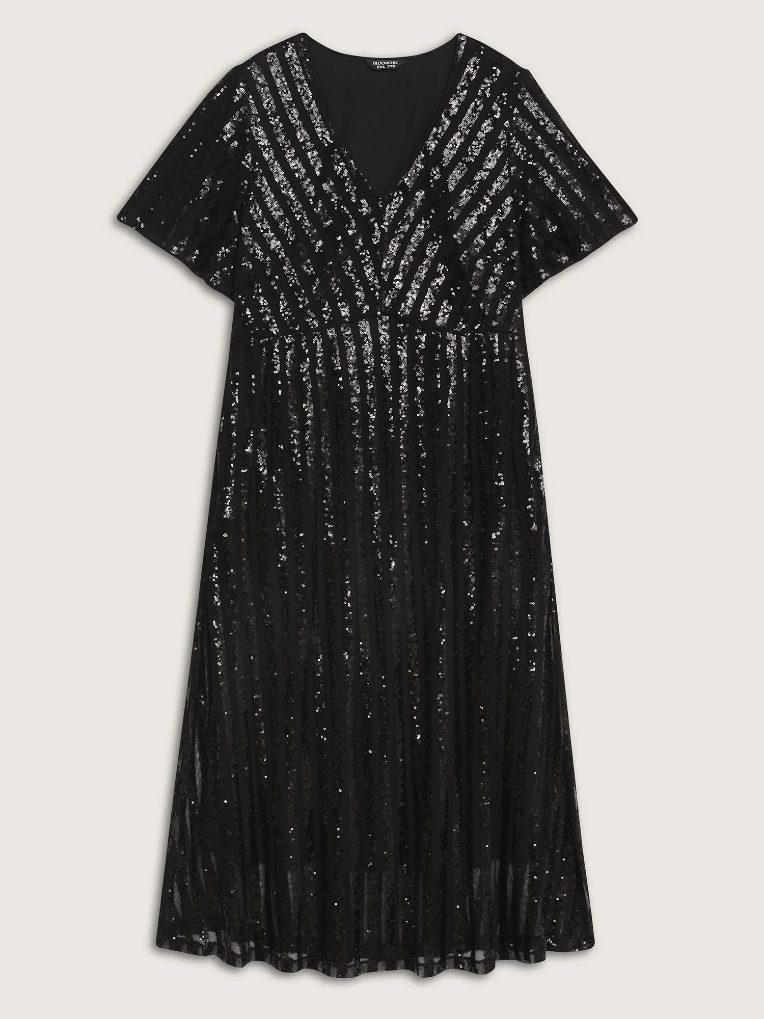 Sequin Surplice Neckline Sleeveless Midi Dress