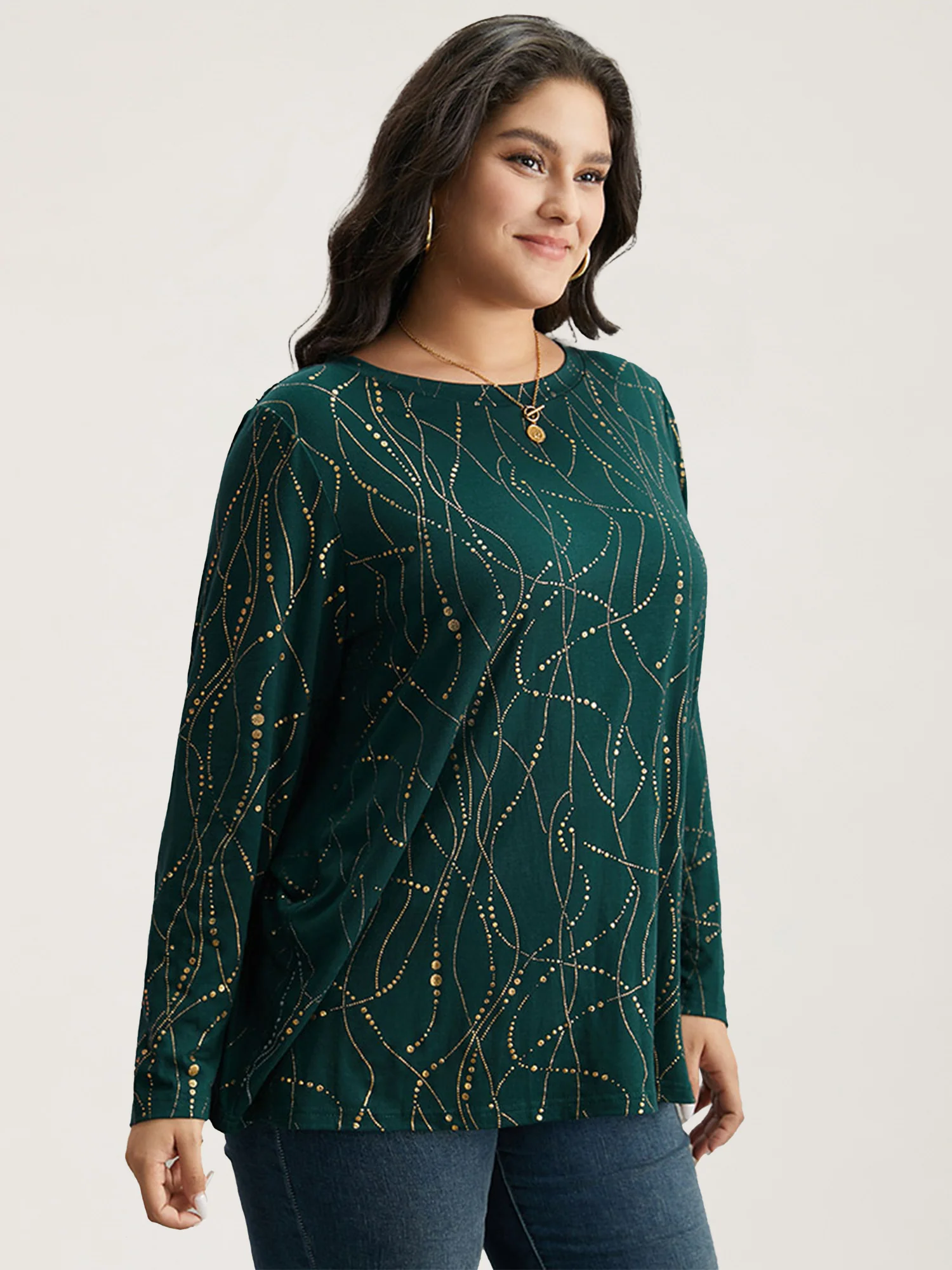 Sequin Spliced Cut-Out Neck Sweatshirt