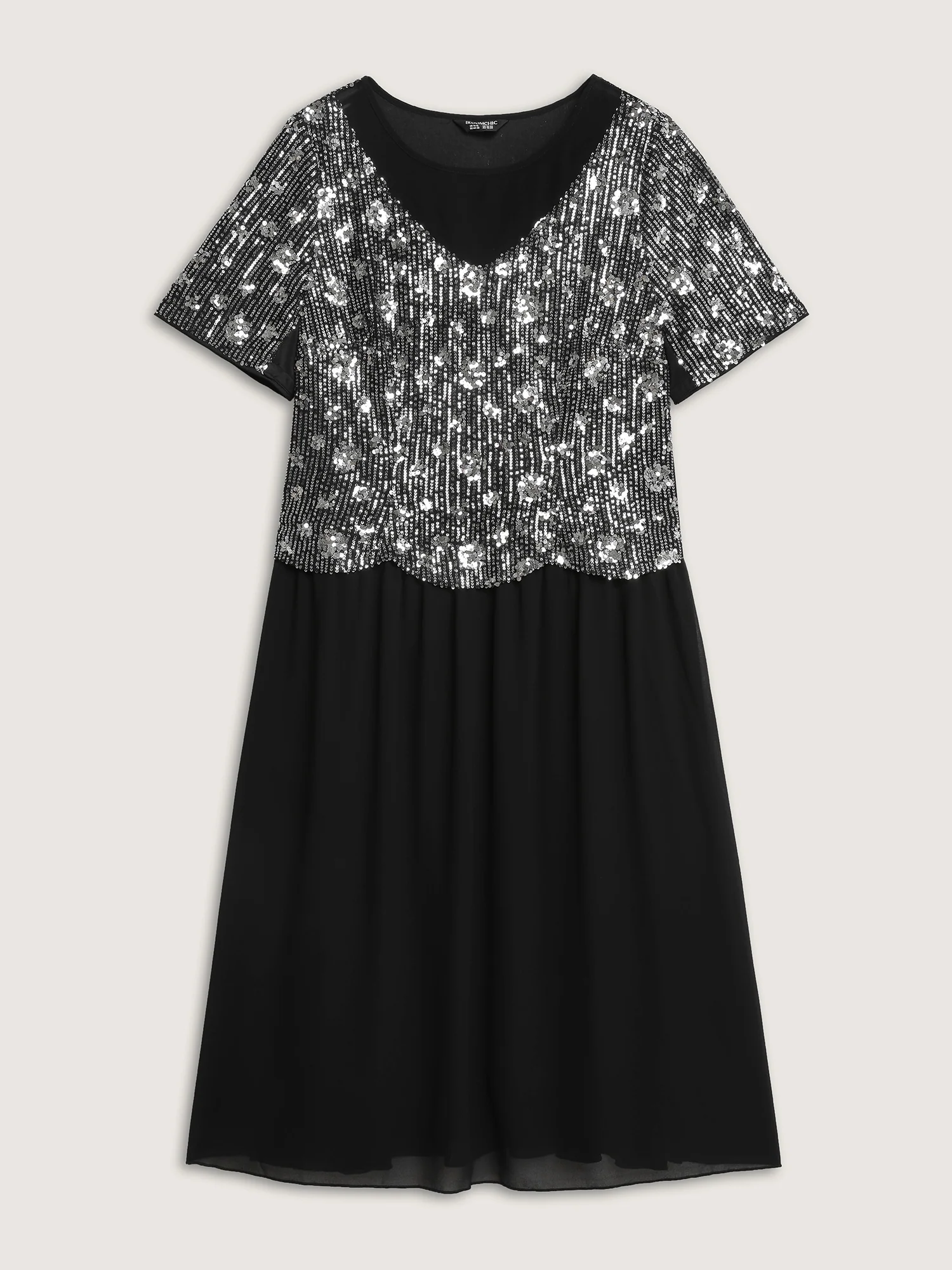 Sequin Patchwork Elastic Waist Midi Dress