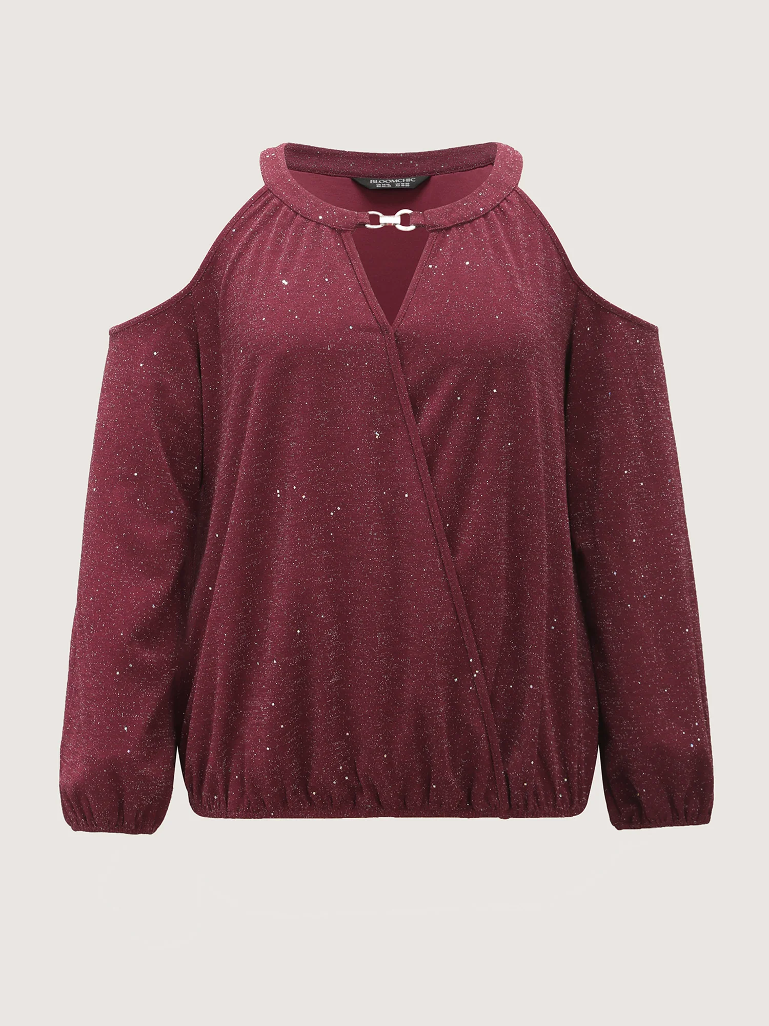 Shimmery Silk Wrap Cut-Out Shoulder Blouse
