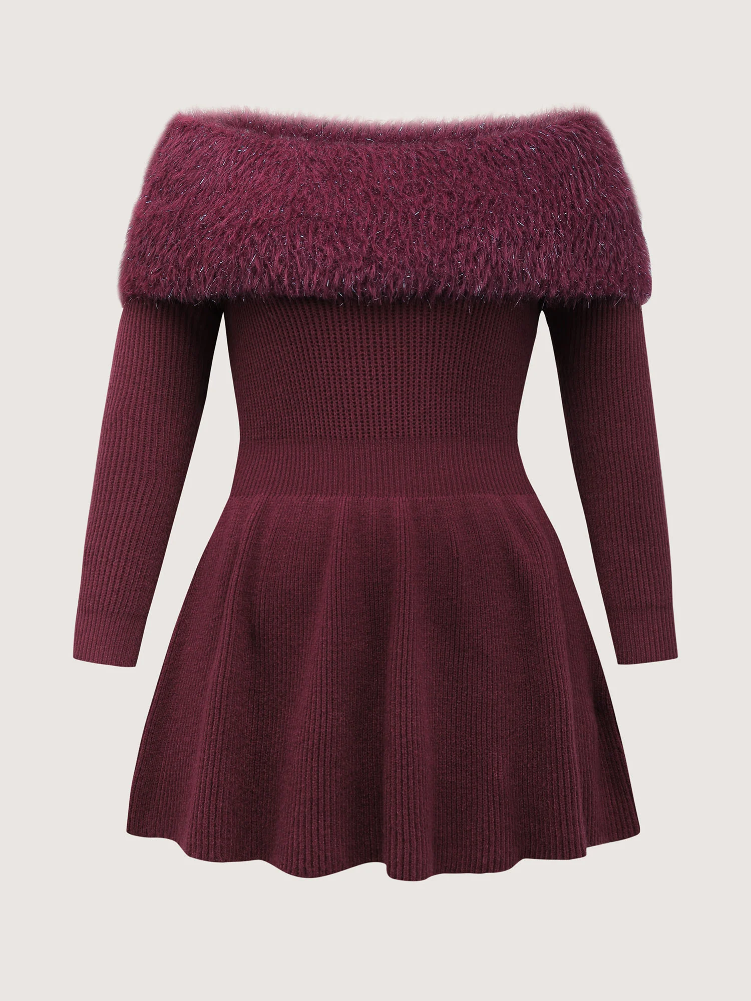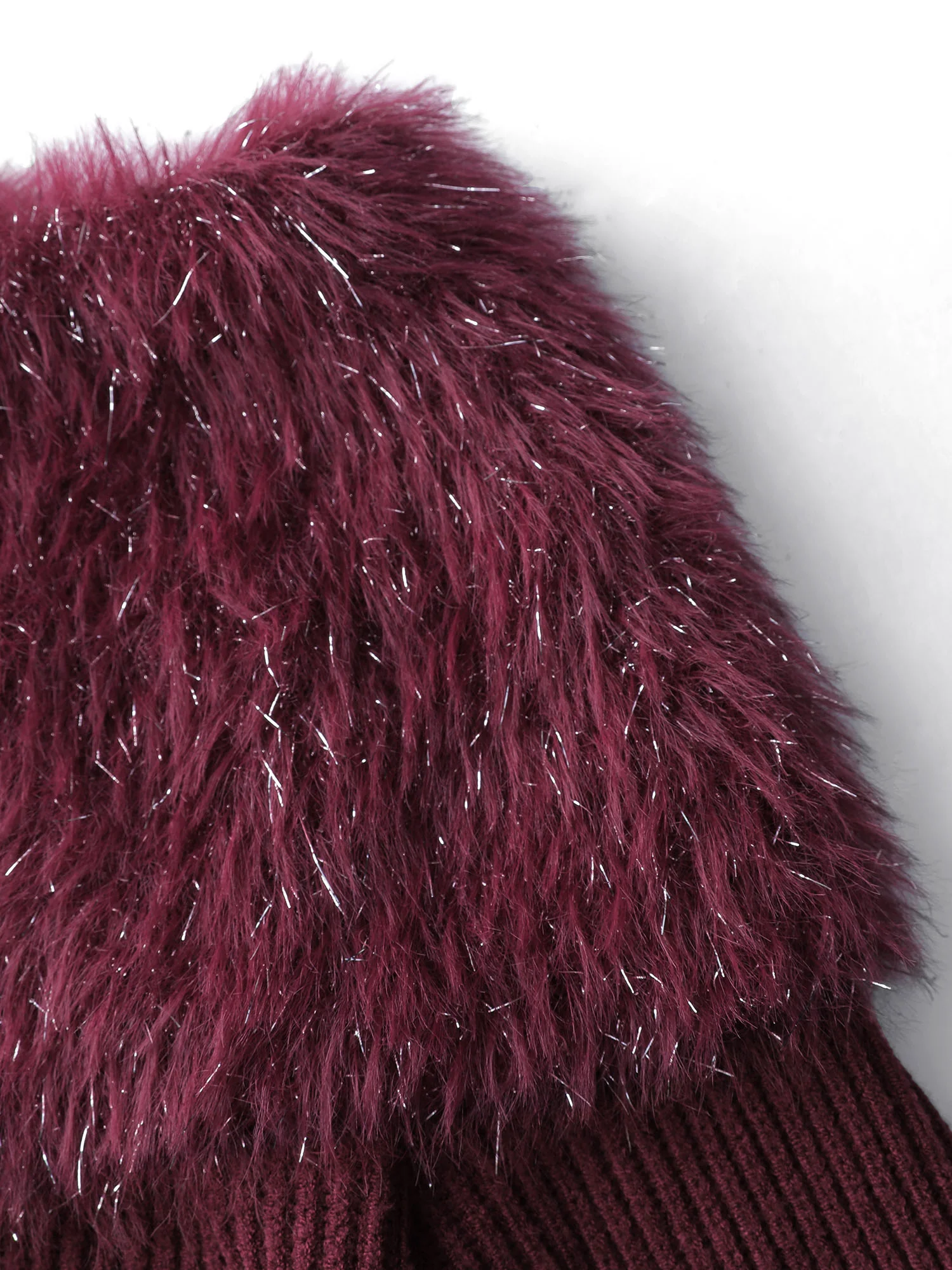 Sparkly Fur Off-Shoulder A-Line Pullover