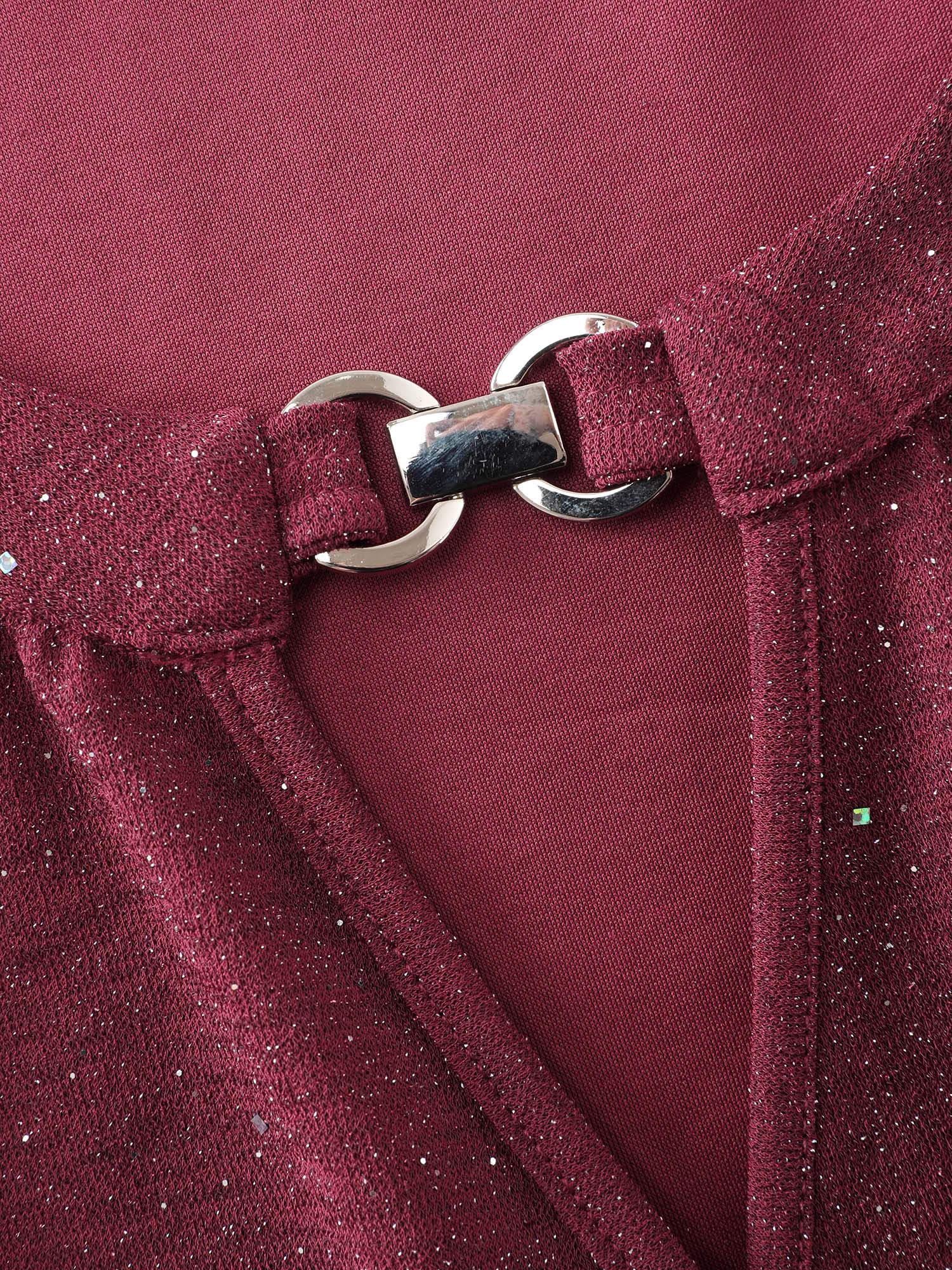 Sequin Wrap Neck Spliced Midi Dress