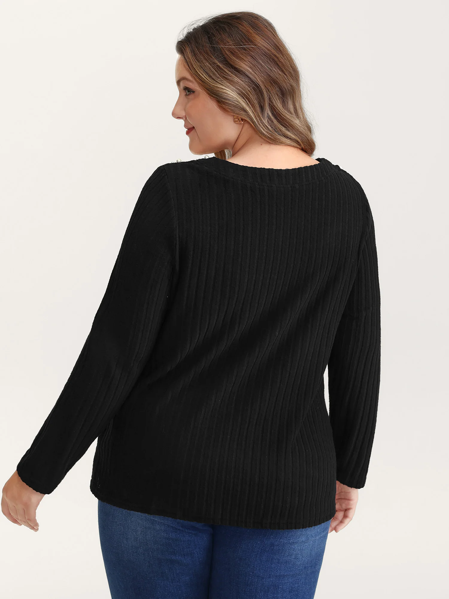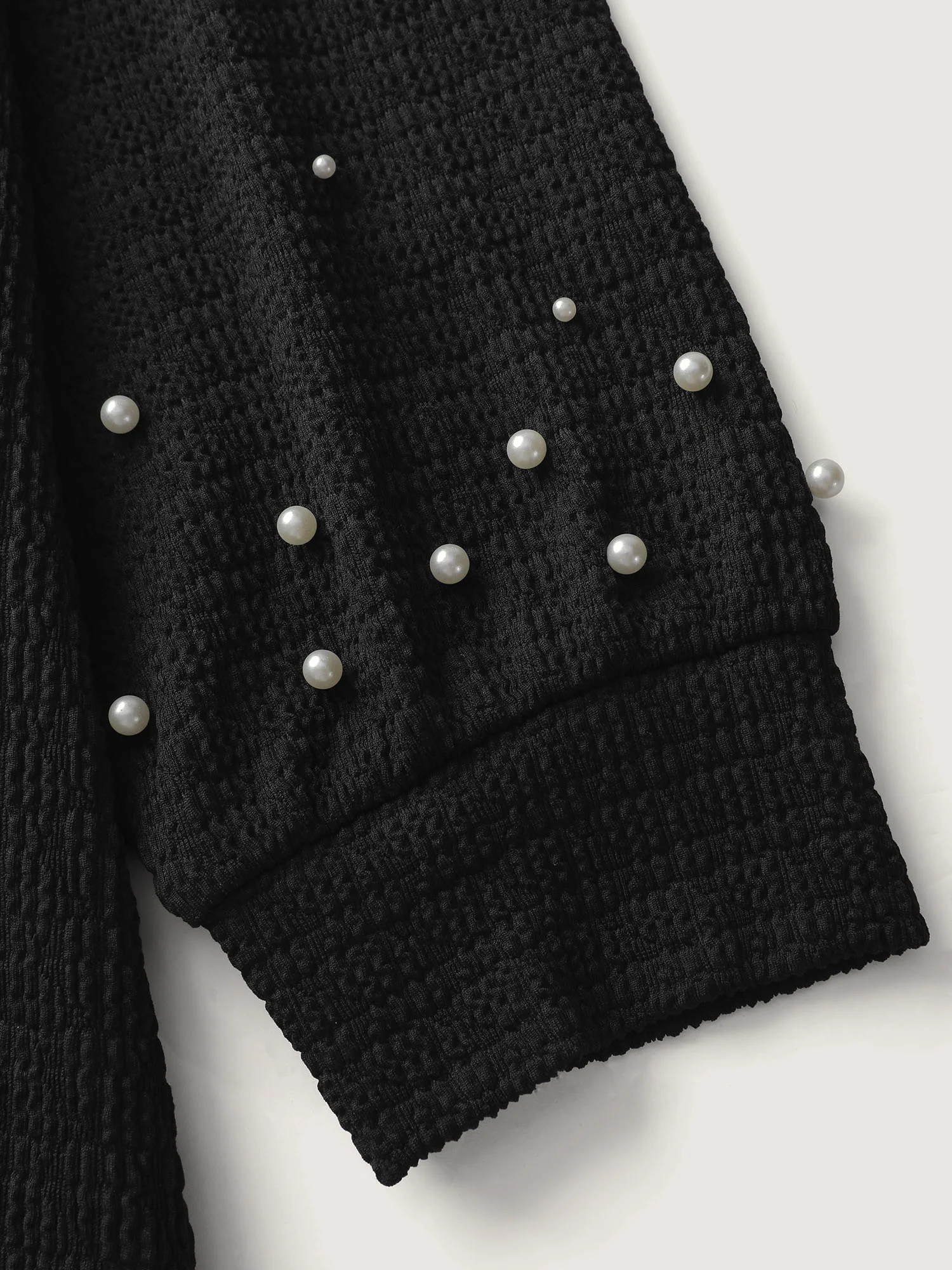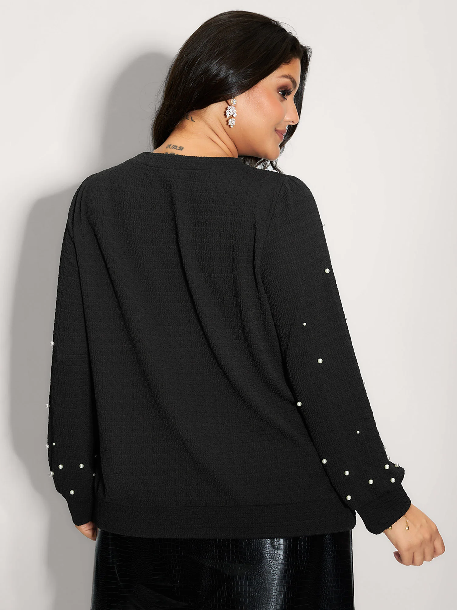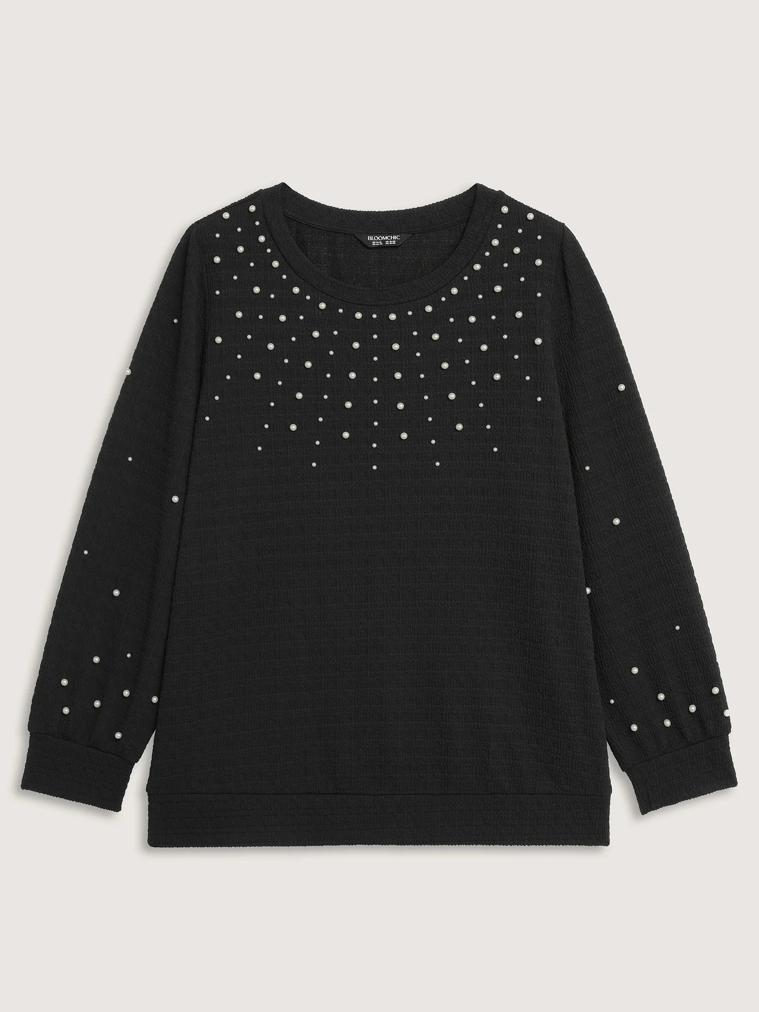 Beaded Round Neck Solid Sweatshirt