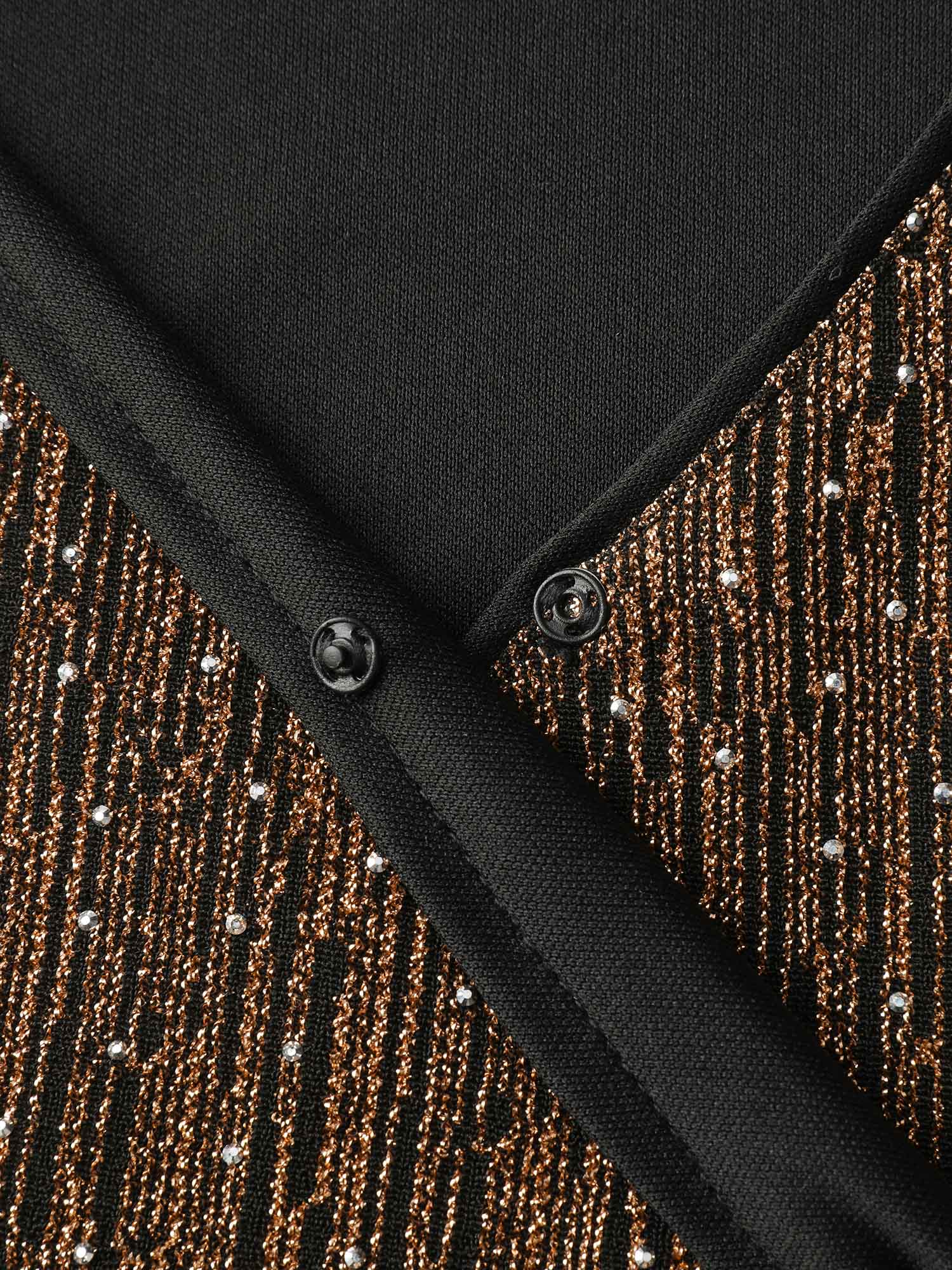 Shimmery Gold Silver Sequin Wrap Party Dress