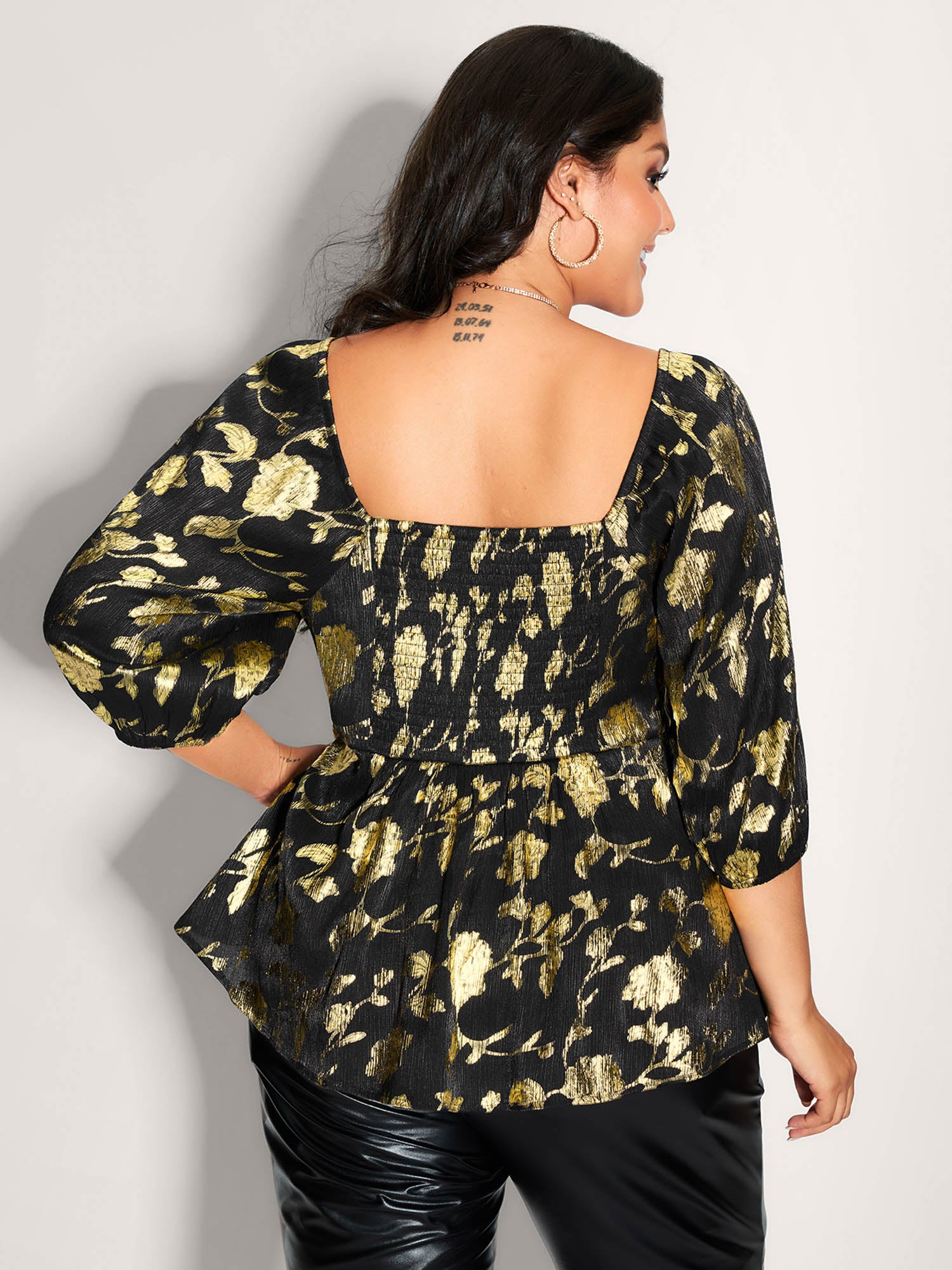 Floral Gold Stamp Smocked Blouse