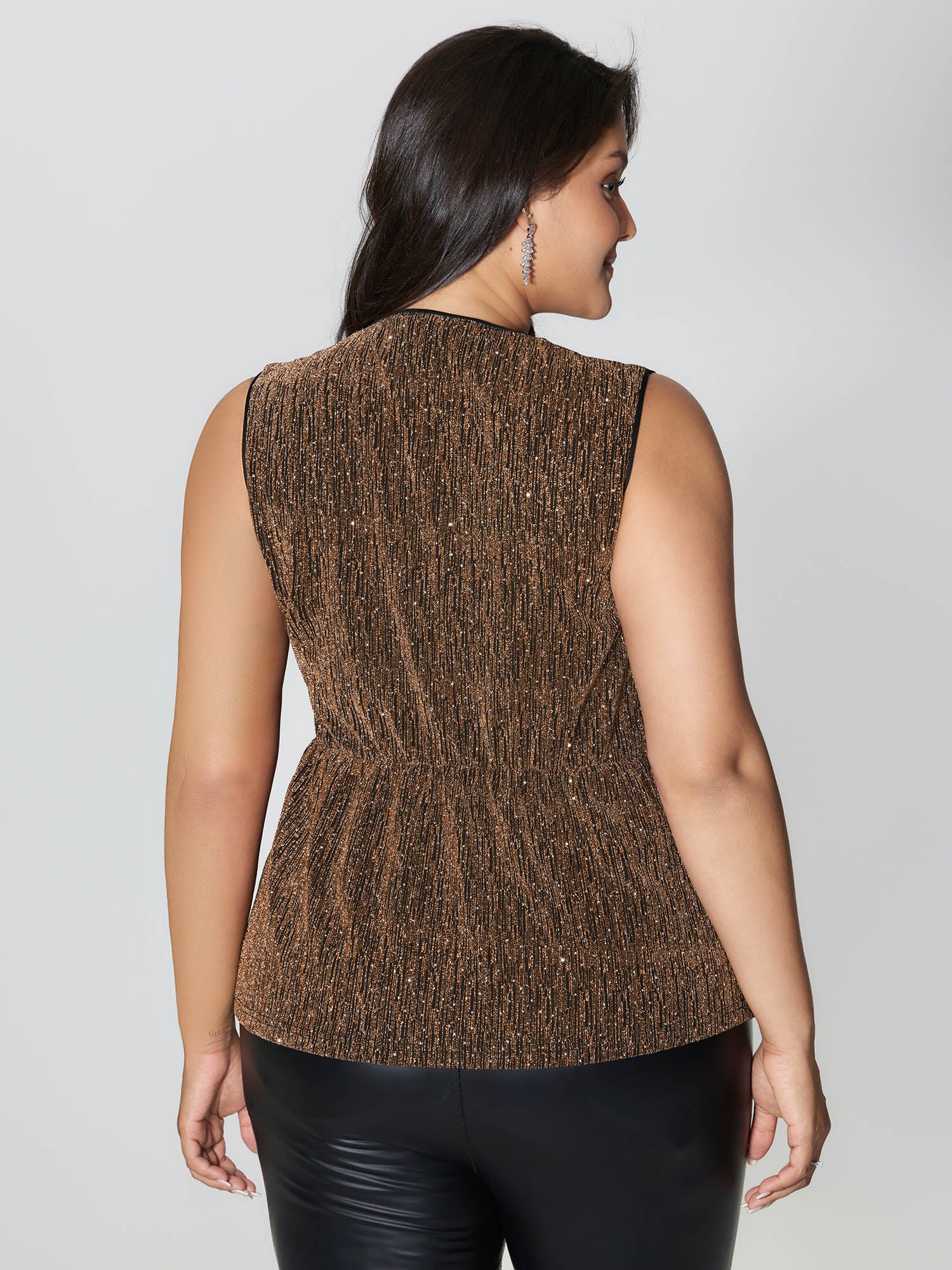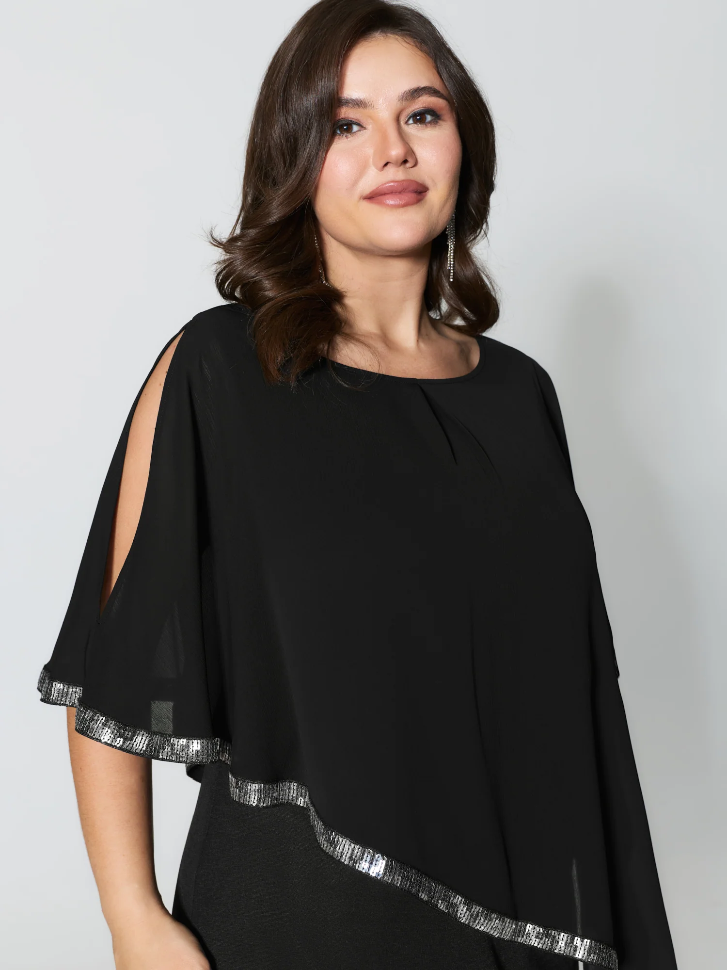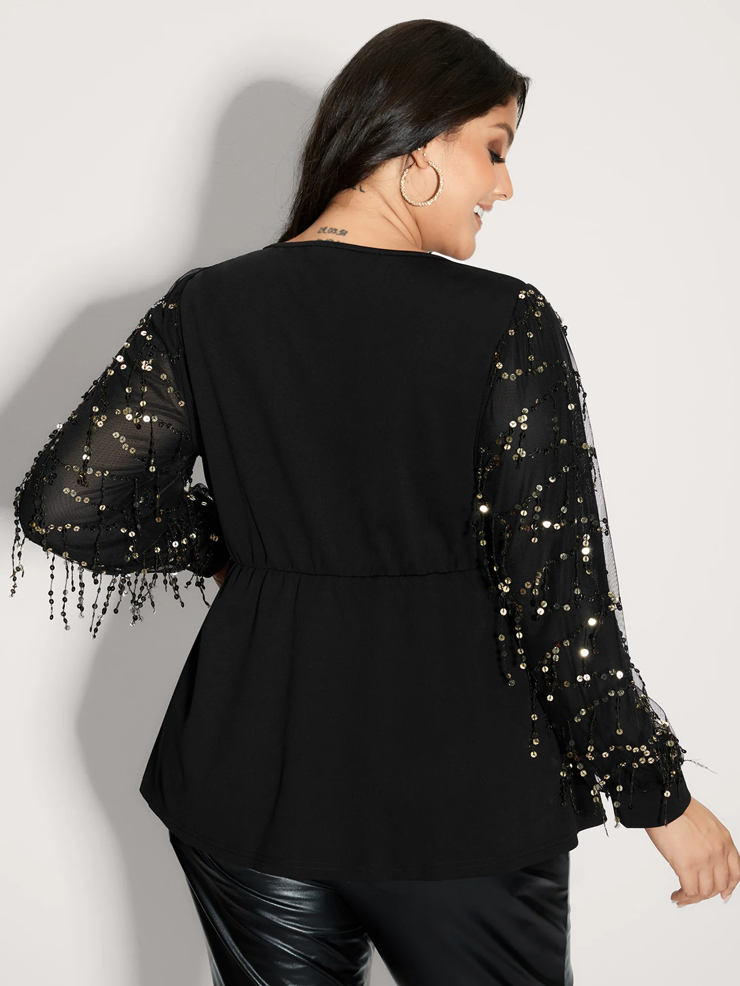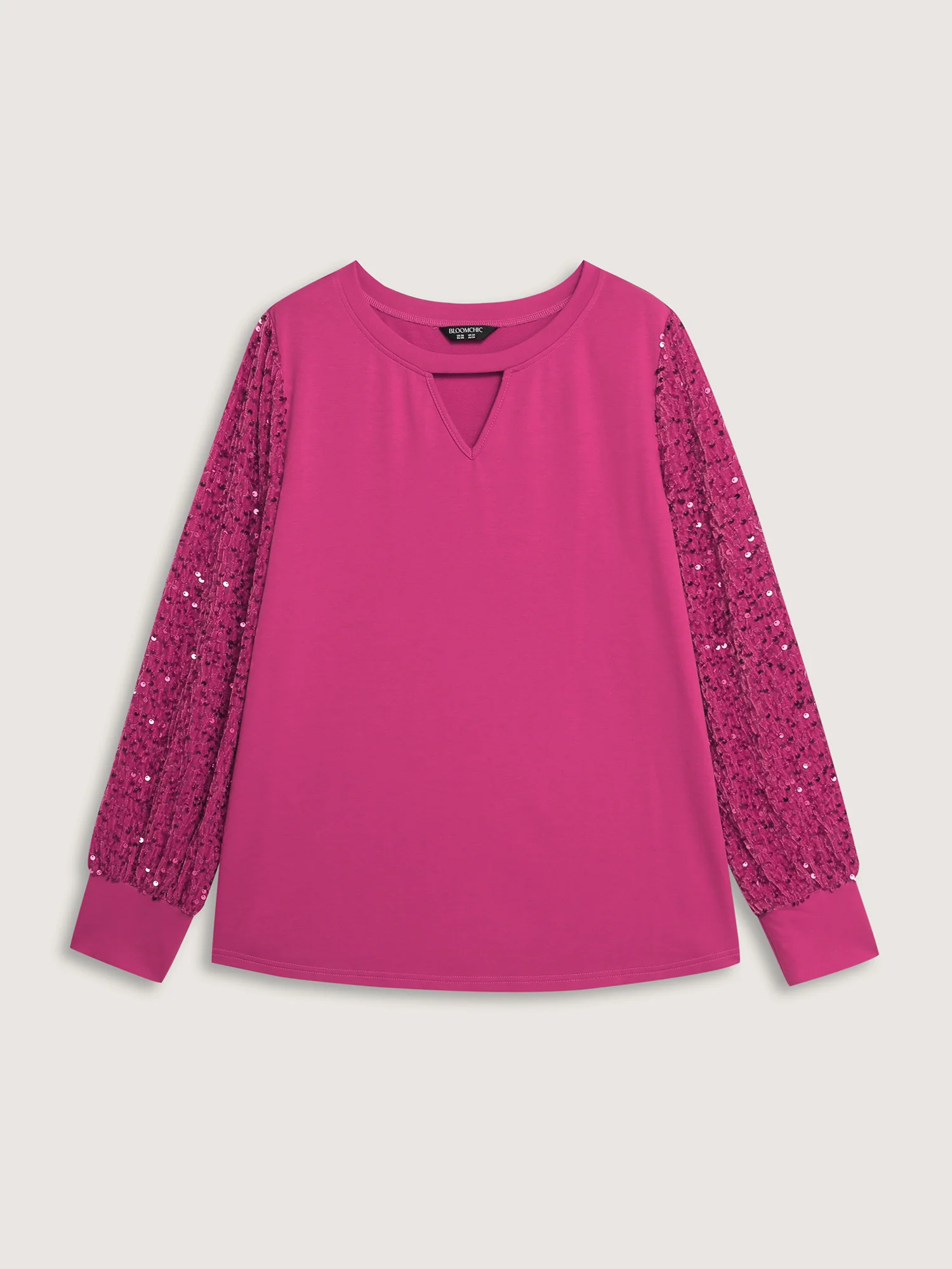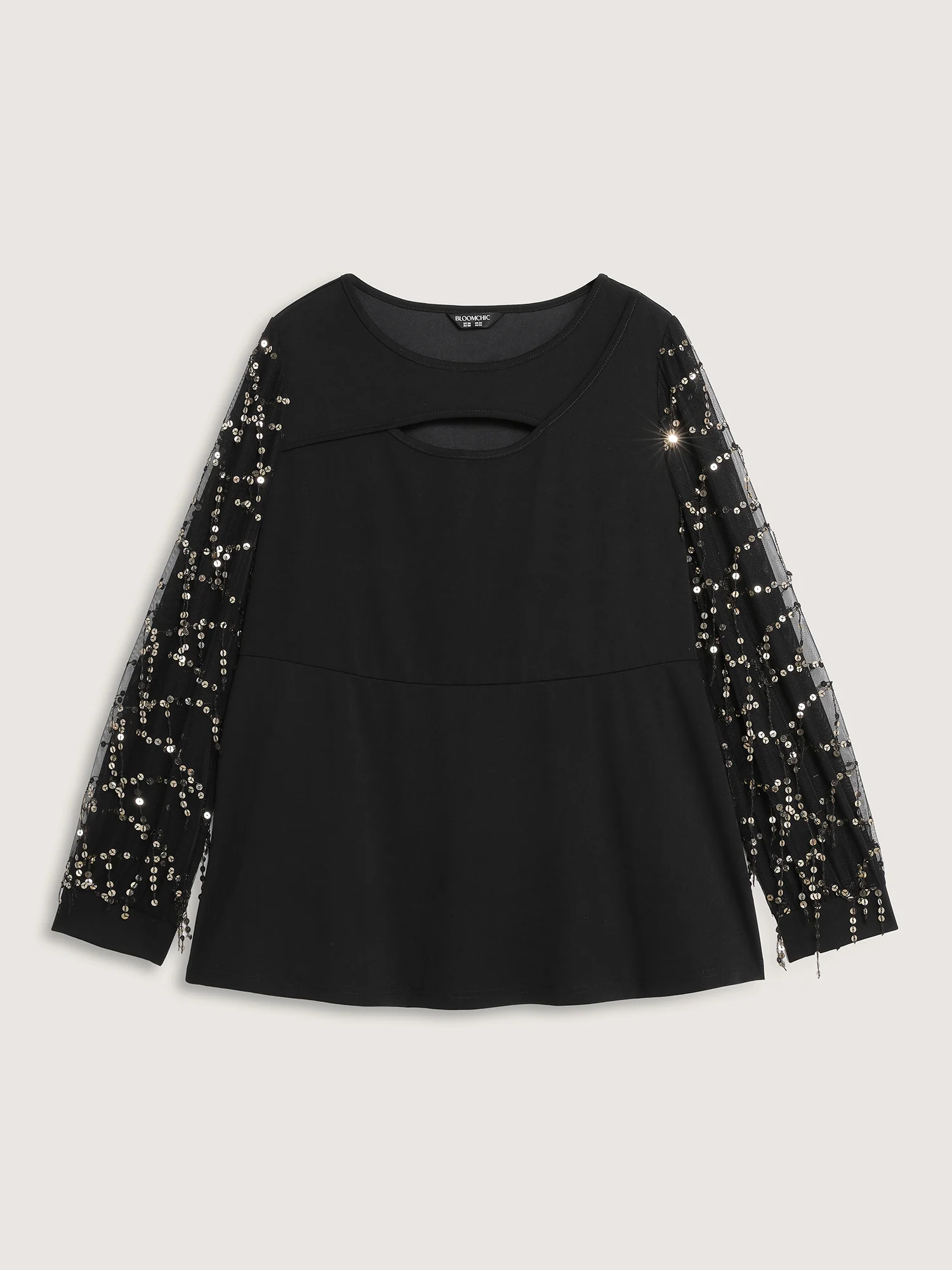 Sequin Sleeve Cut-Out Neck Top