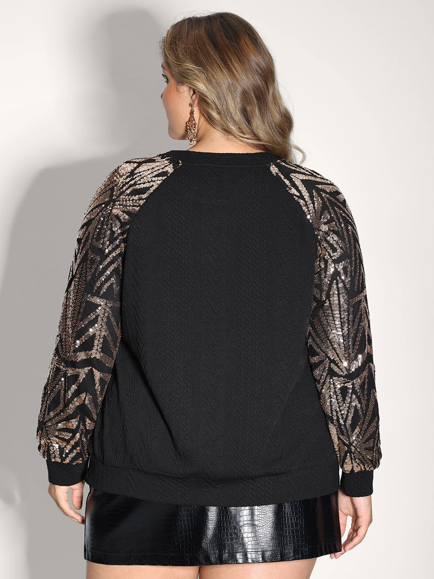 Sequin Spliced Cut-Out Neck Sweatshirt