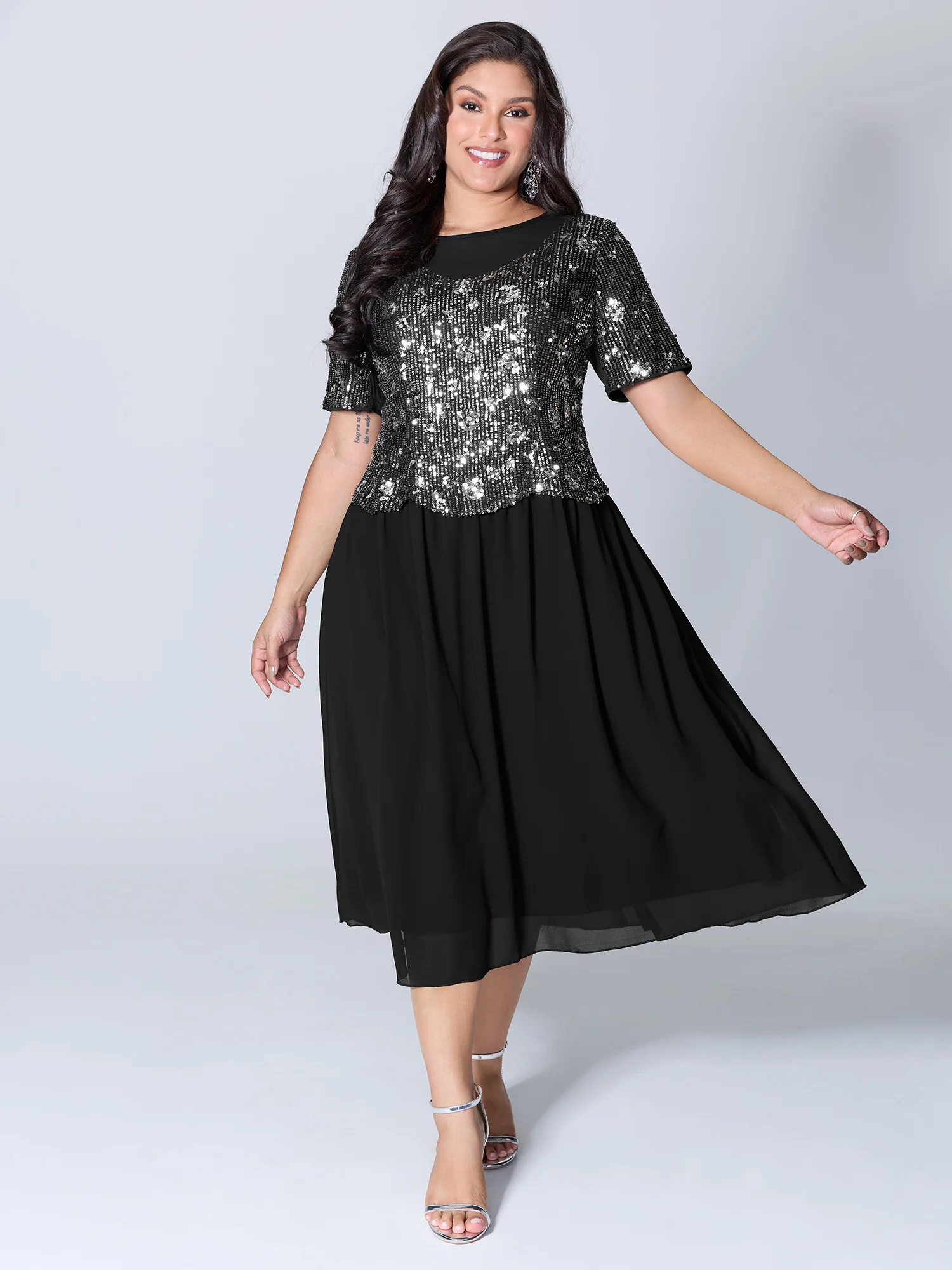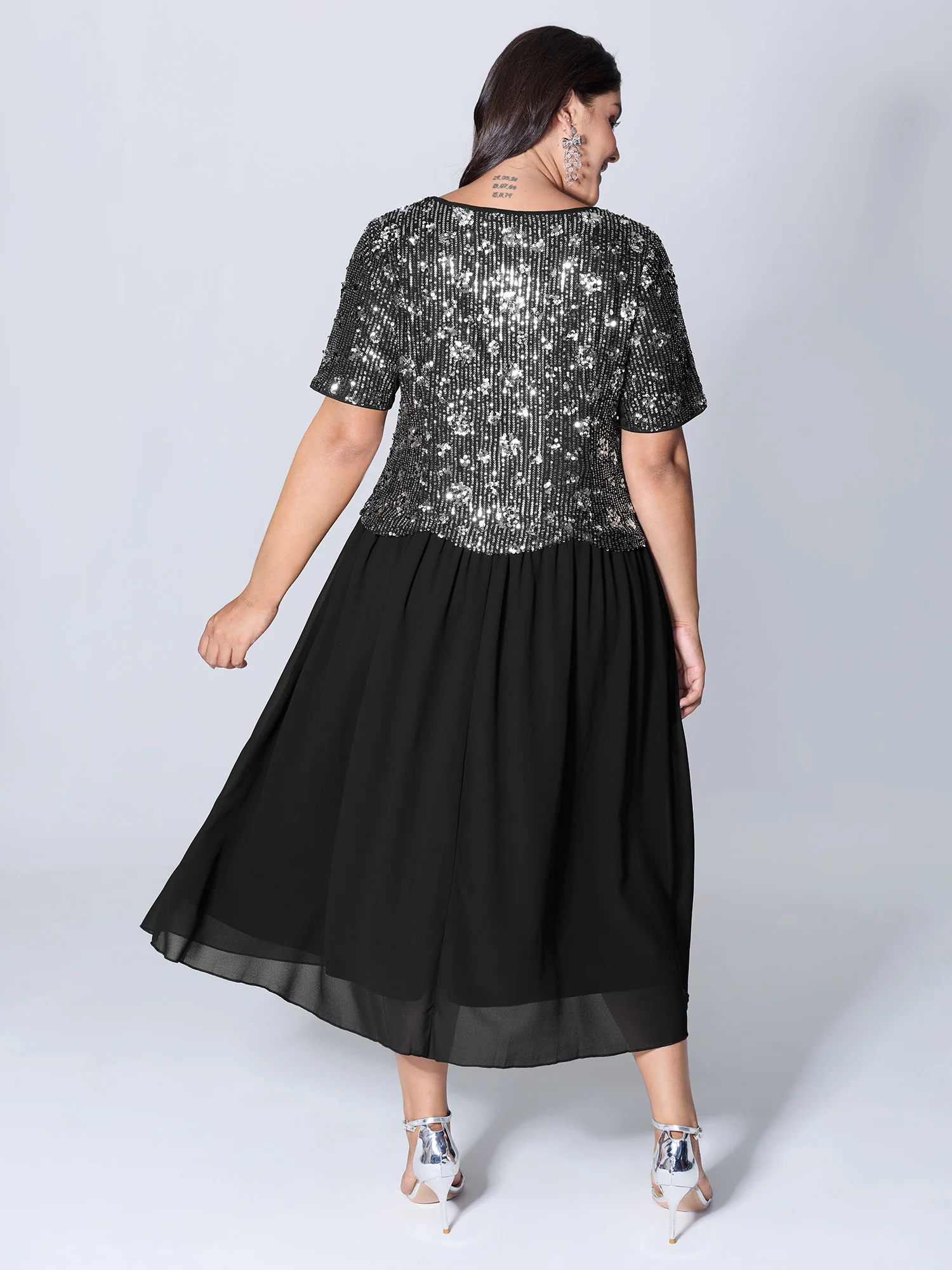 Starry Sequins Ruffled Hem Midi Dress