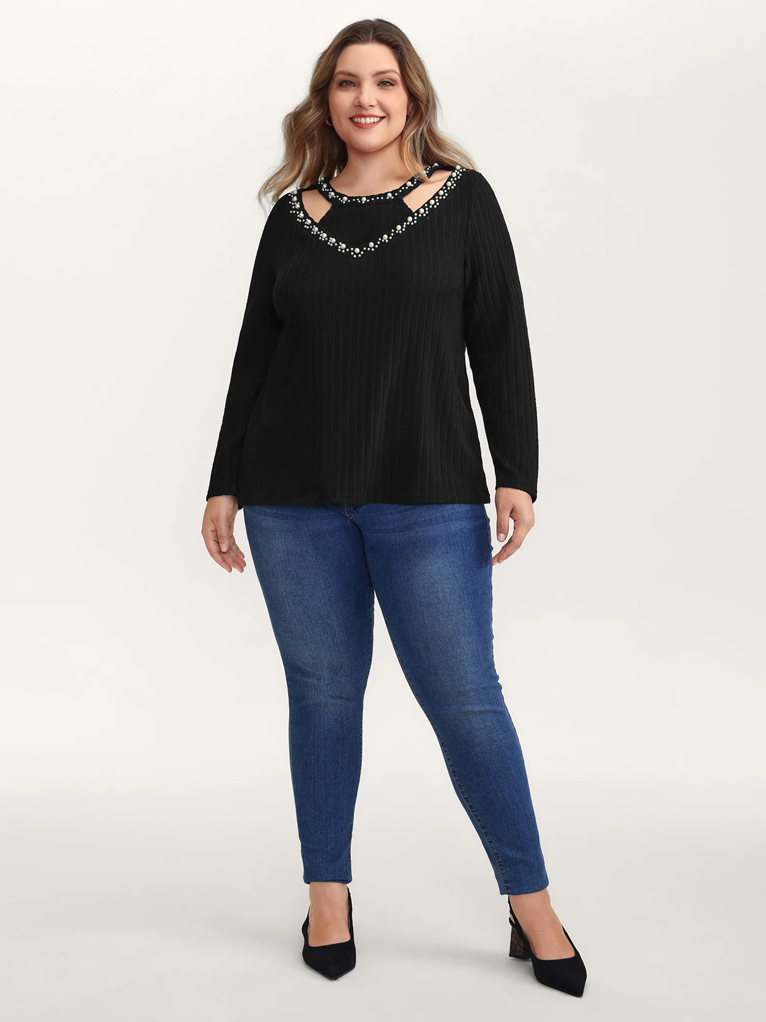 Bubble Beads Neck Cut-Out T-Shirt
