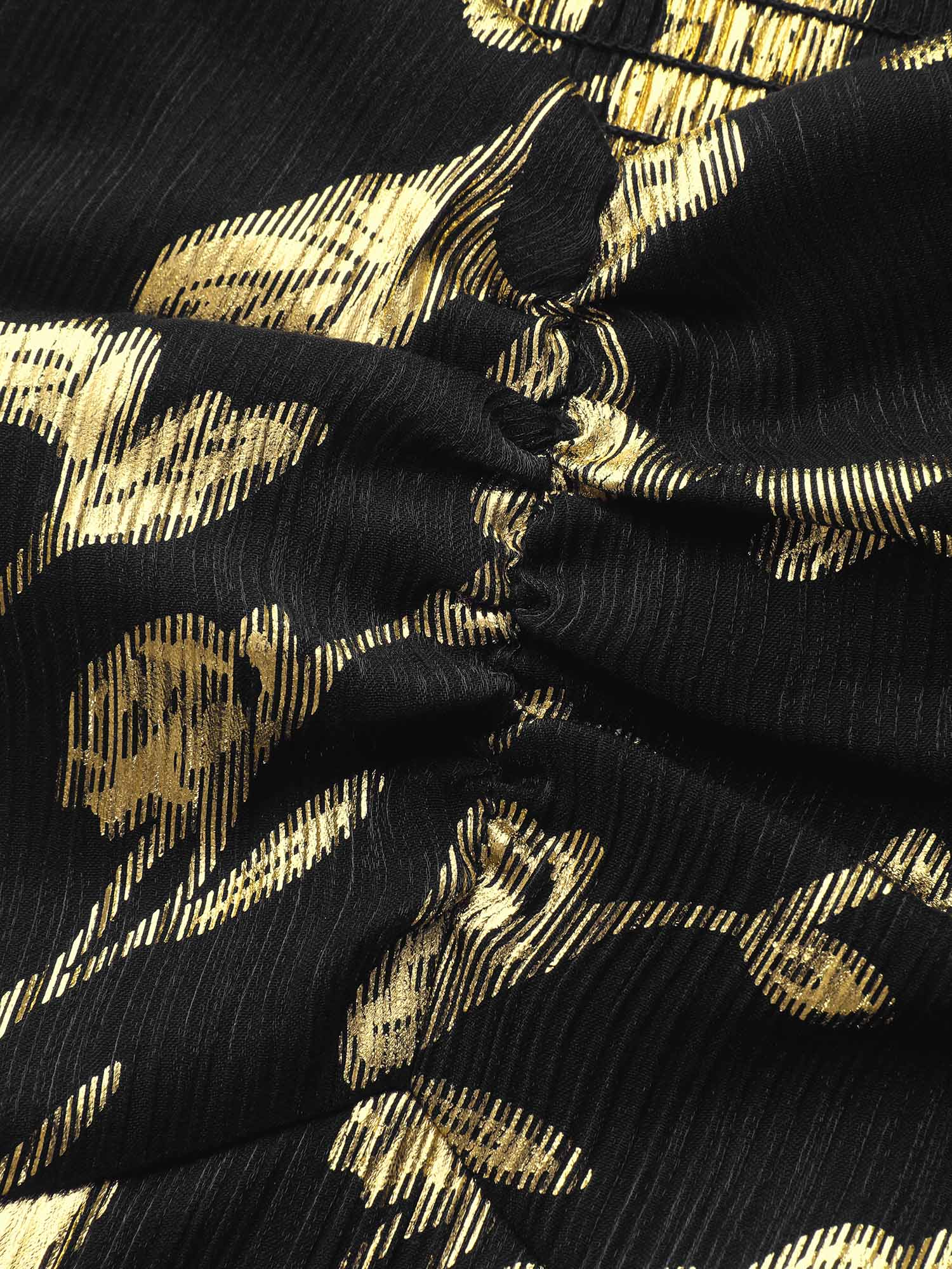 Gold Stamp Shirred Back-Waist Maxi Dress