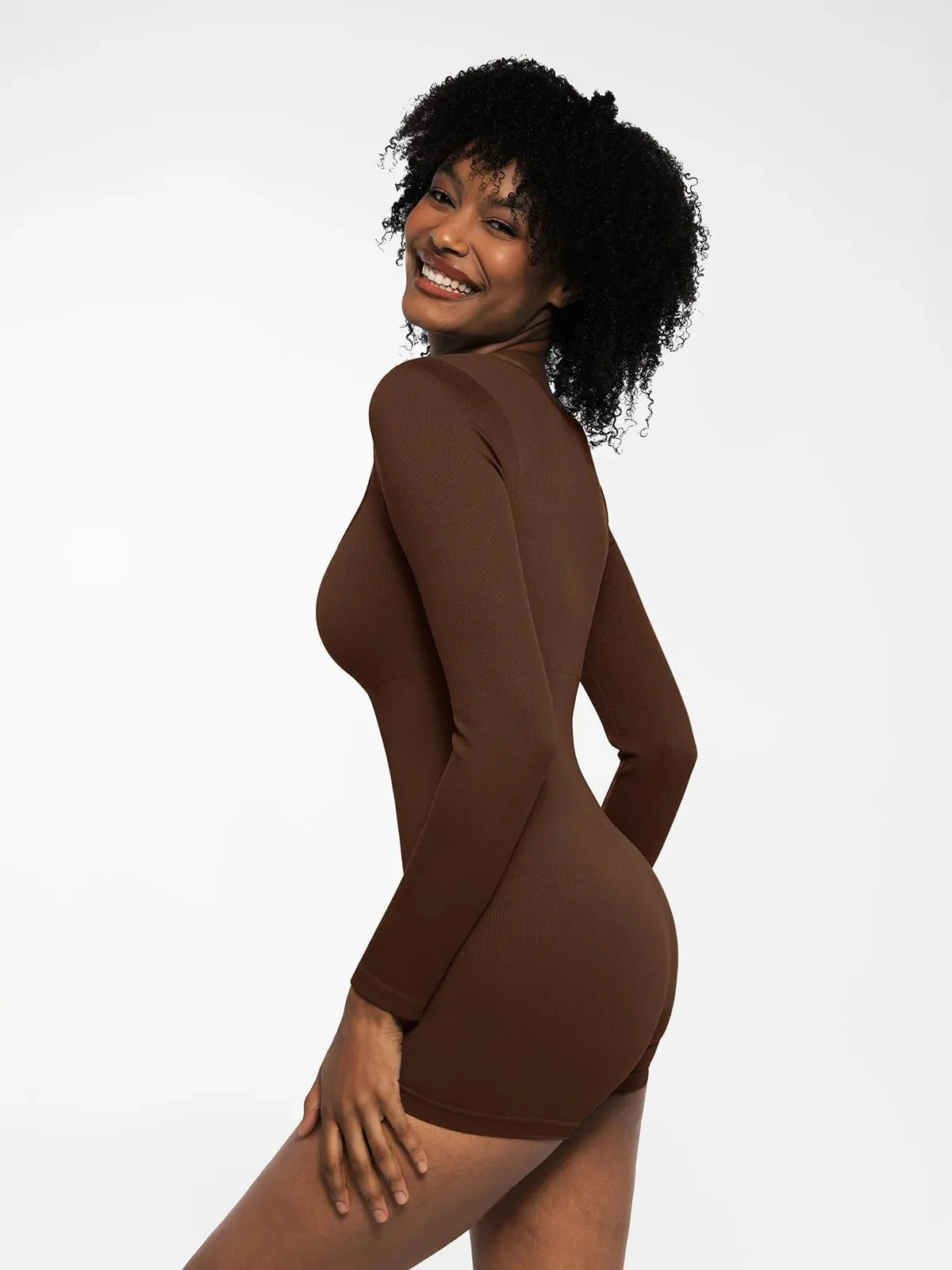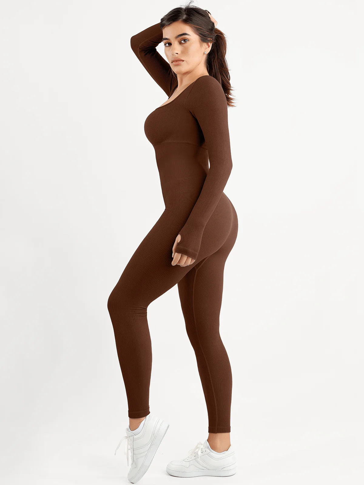 Shapewear Seamless Thumb Hole Long Sleeve Jumpsuit