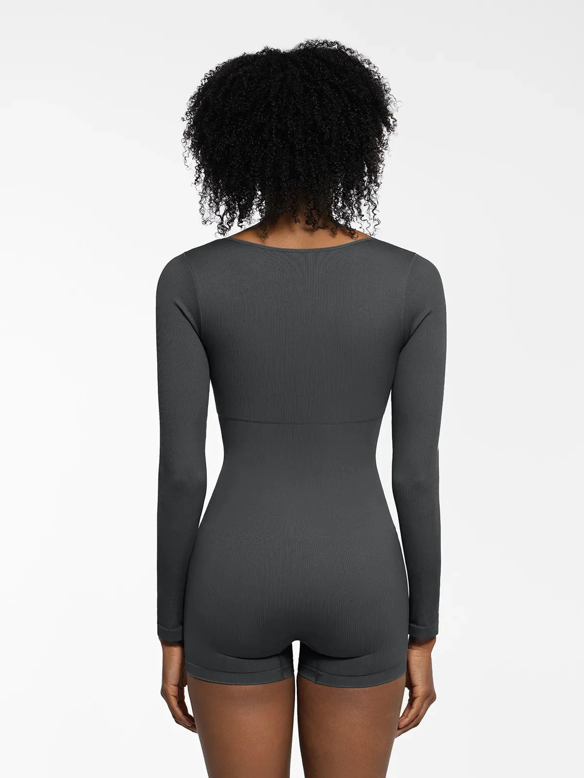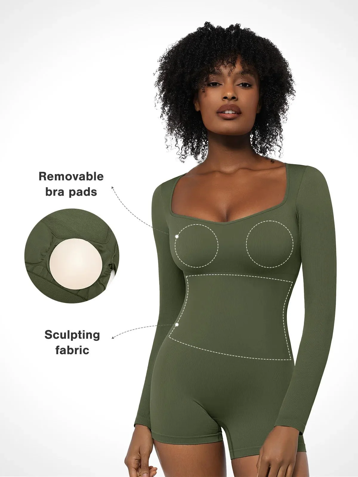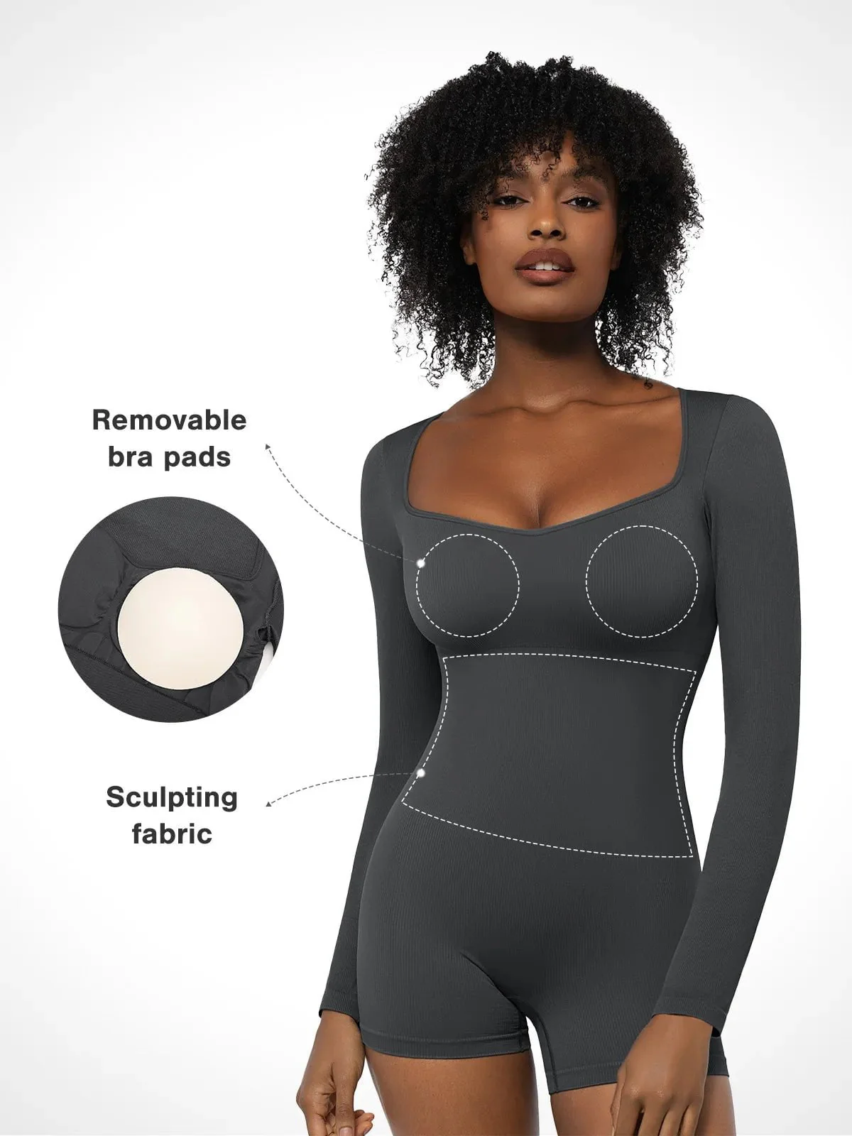 Shapewear Long Sleeve Sweetheart Neck Tummy Control Romper