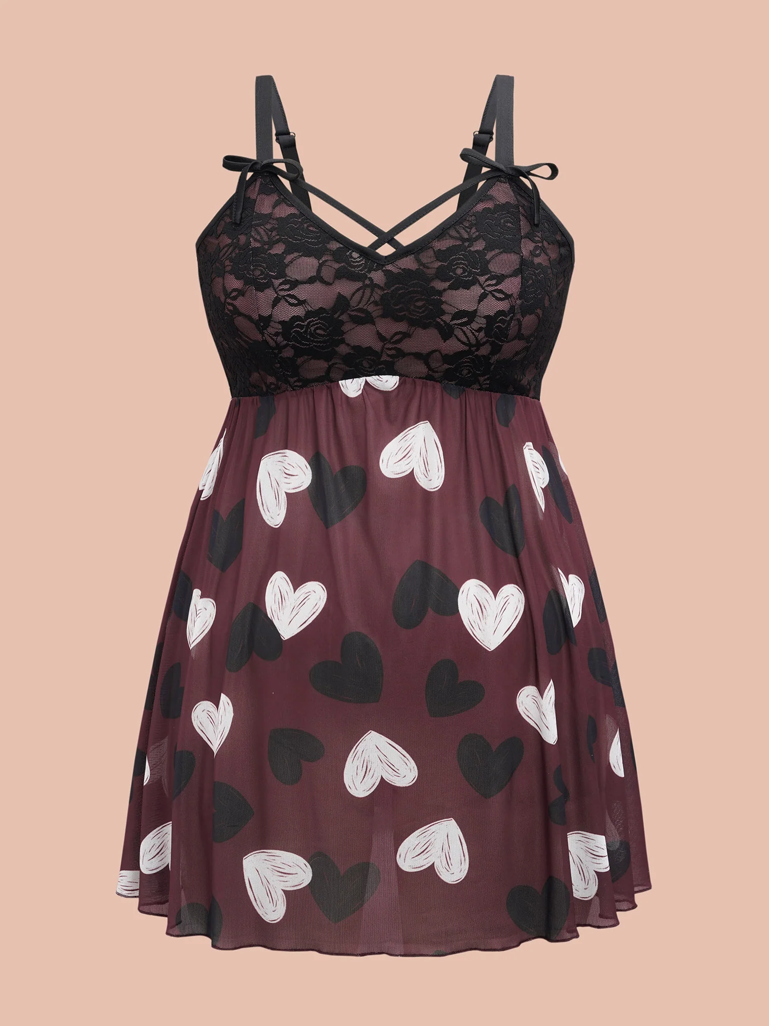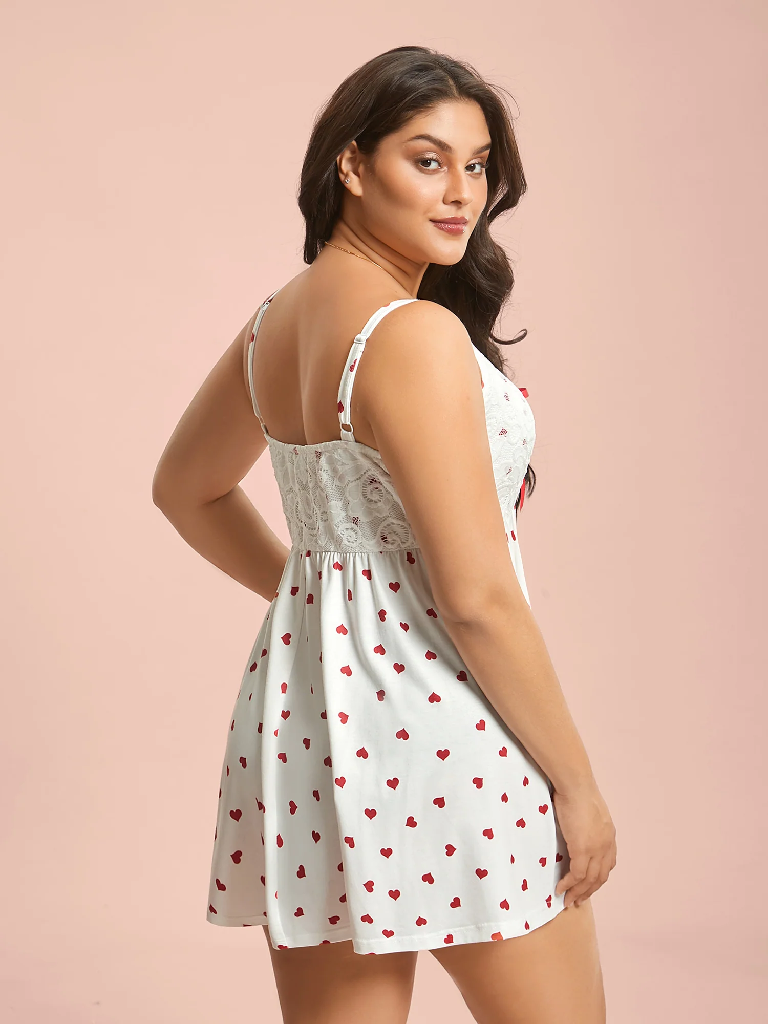 Bow Lace Heart Print Lounge Dress
