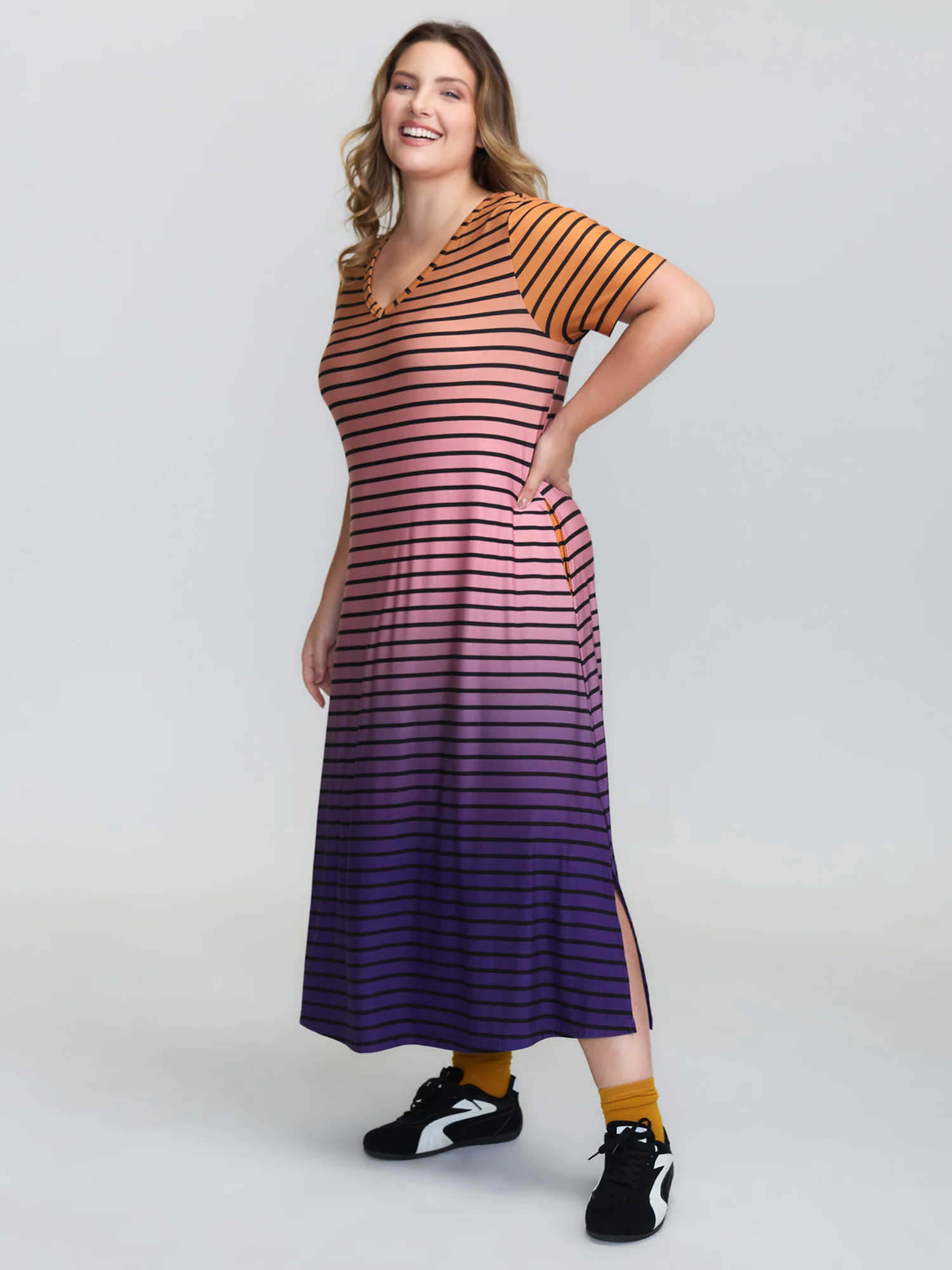 Color Gradient Stripe V-Neck Sleep Dress