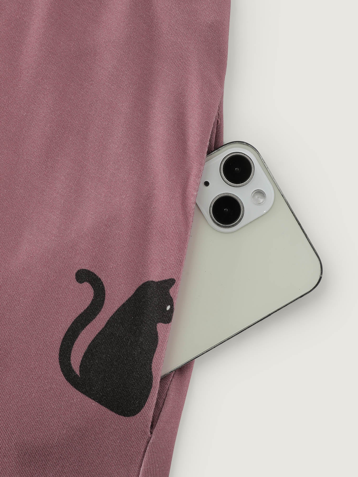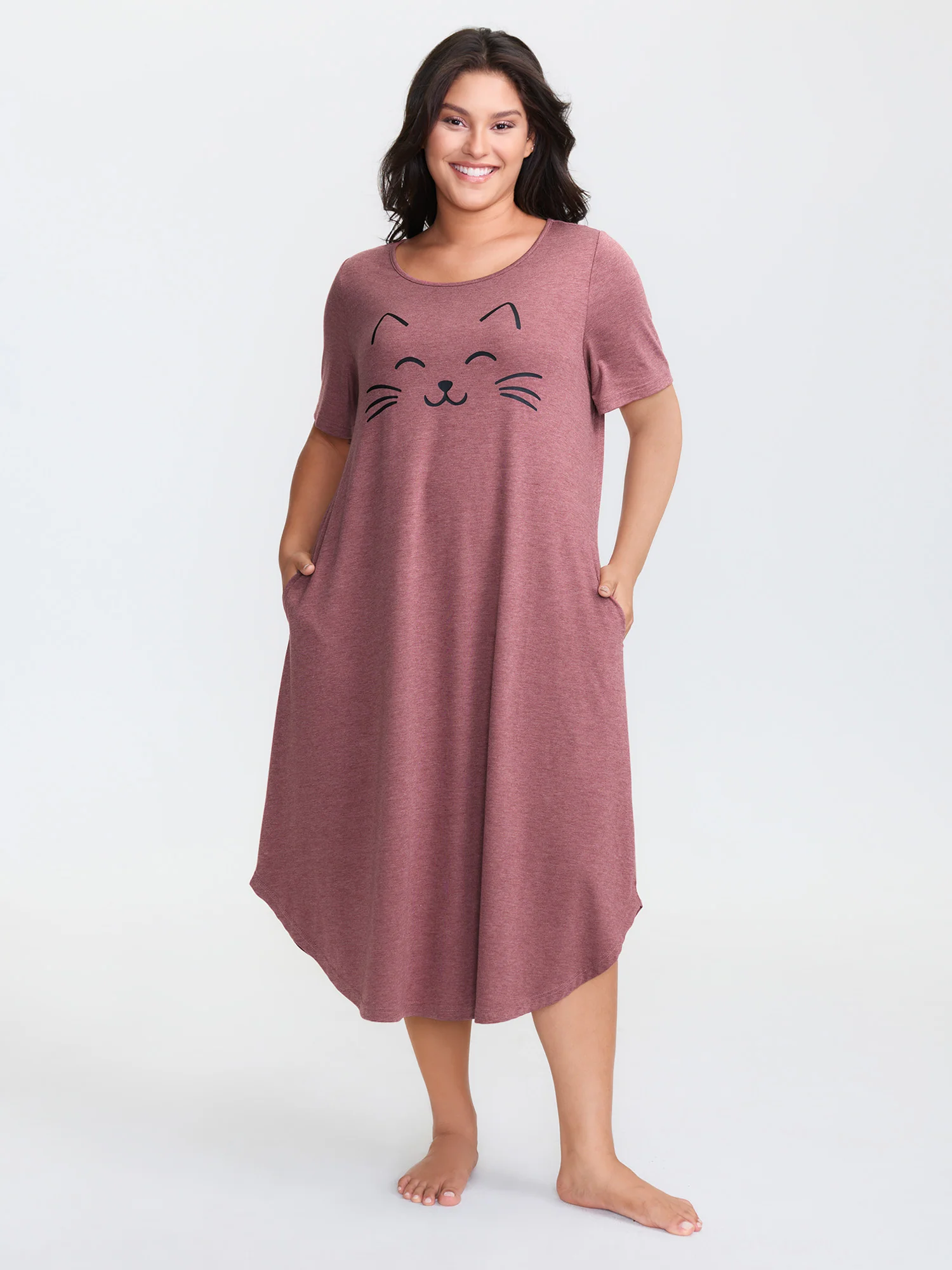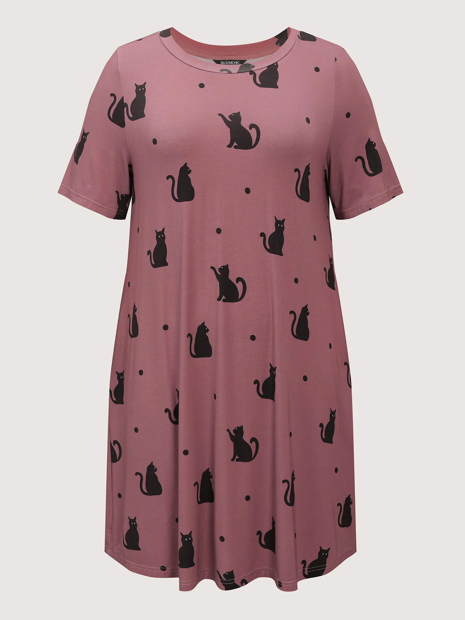 Stretchy Cat Print Round Neck Lounge Dress