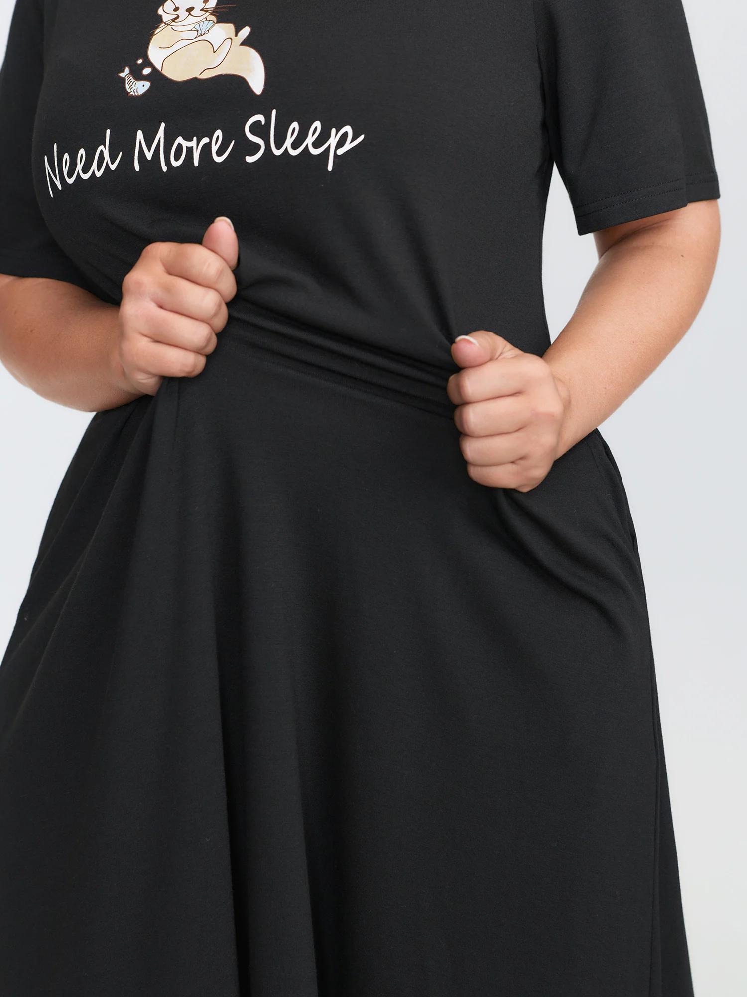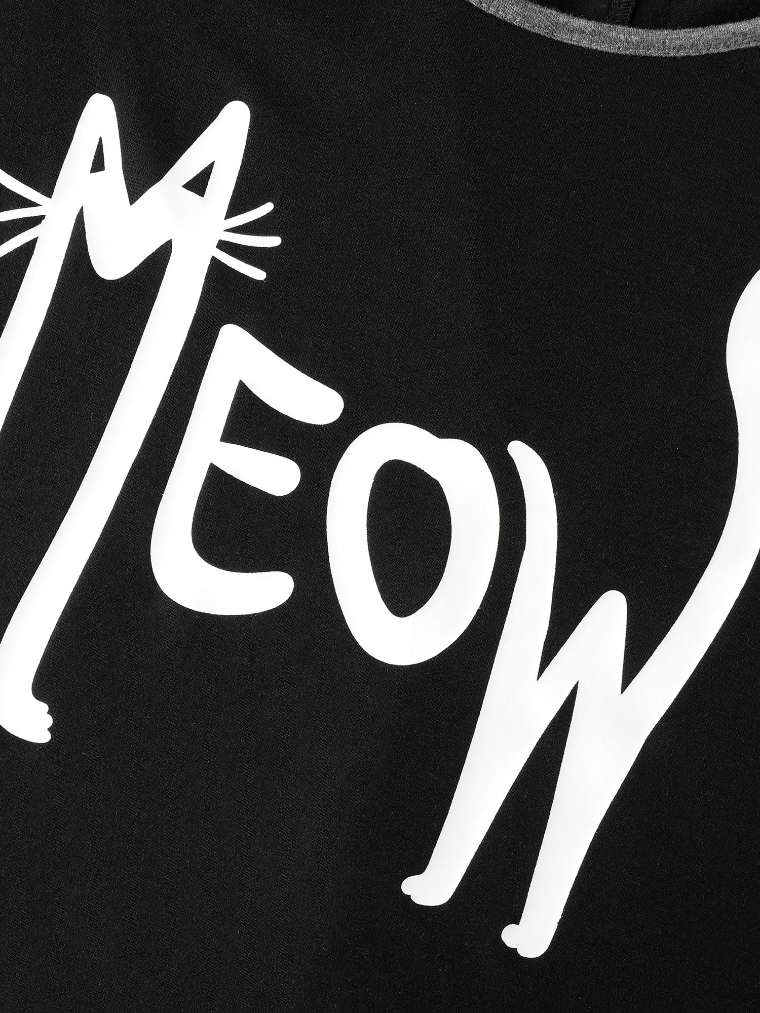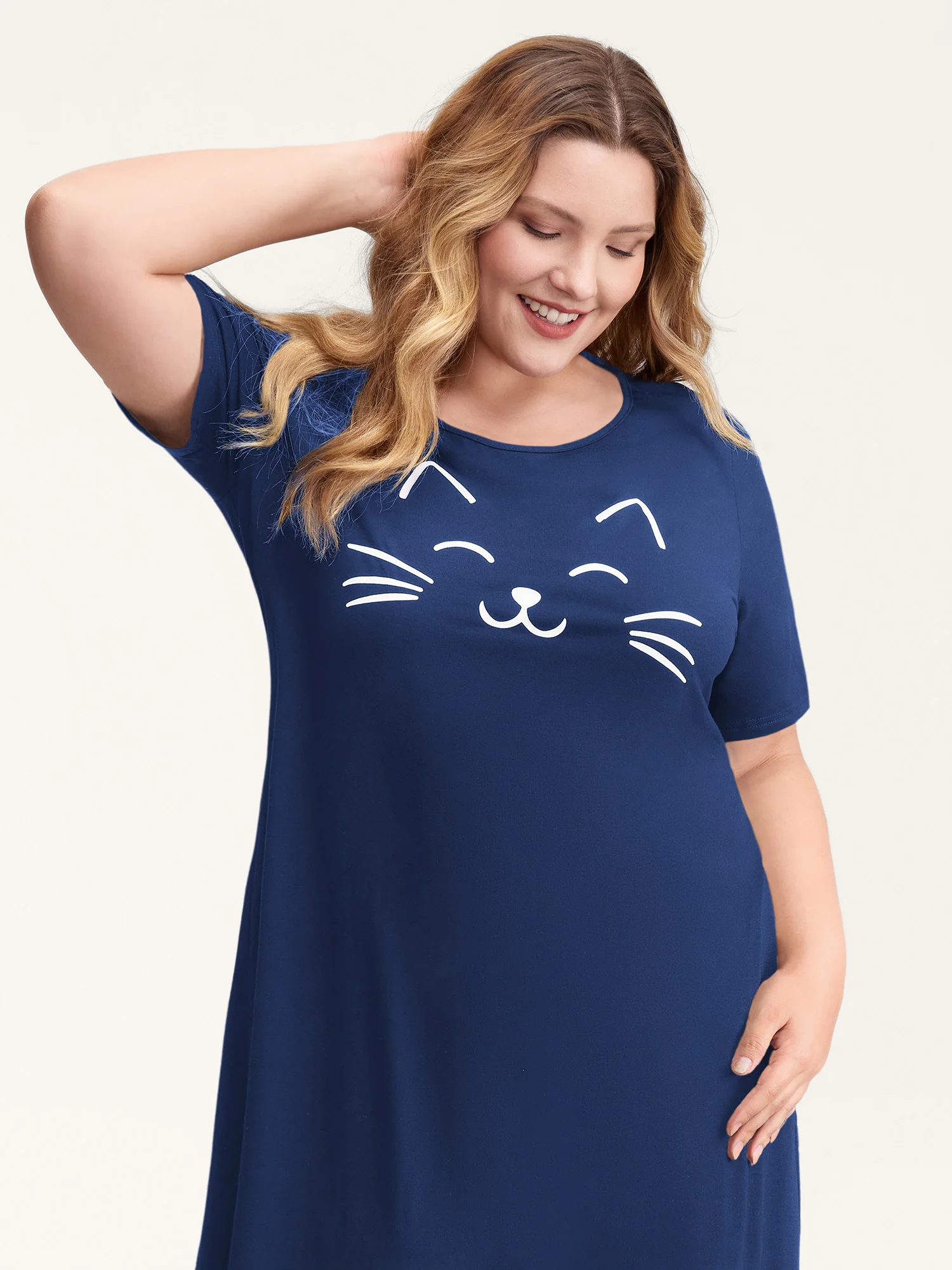 Happy Cat Print Stretchy Contrast Sleep Dress