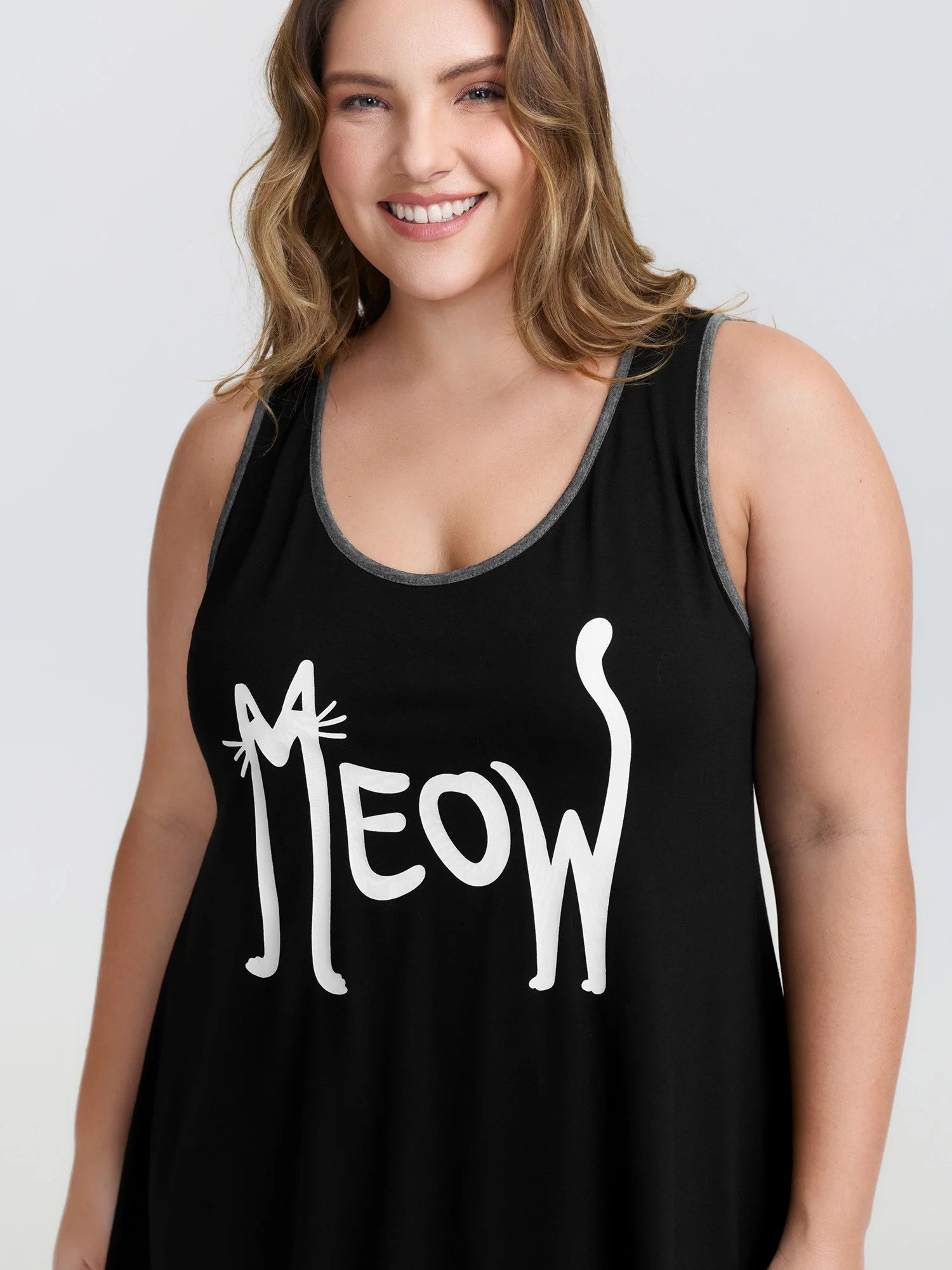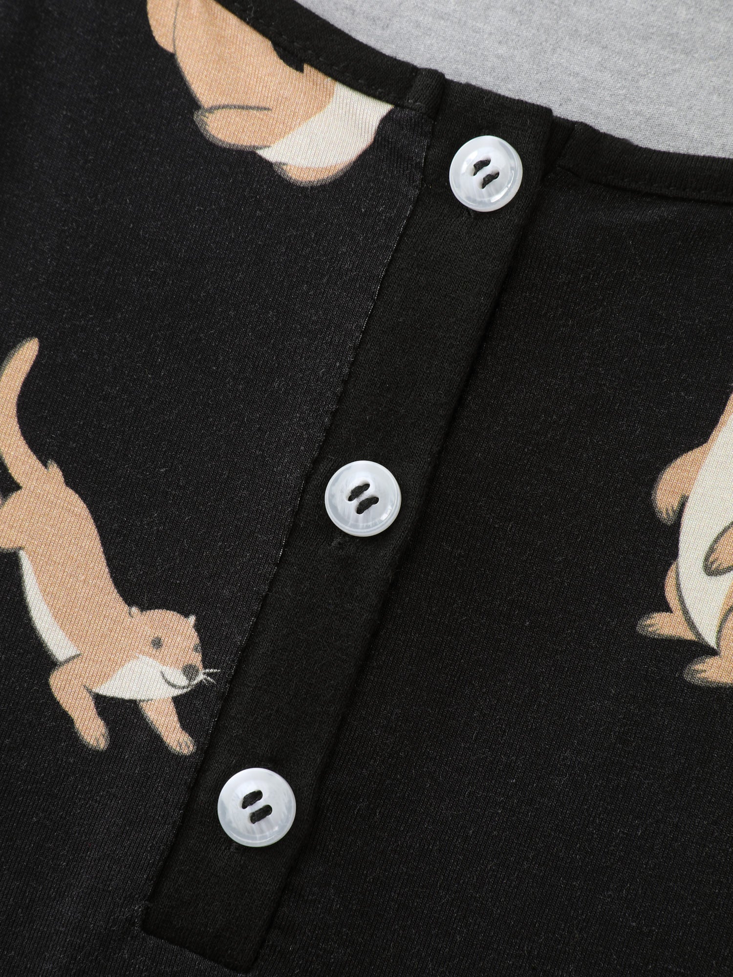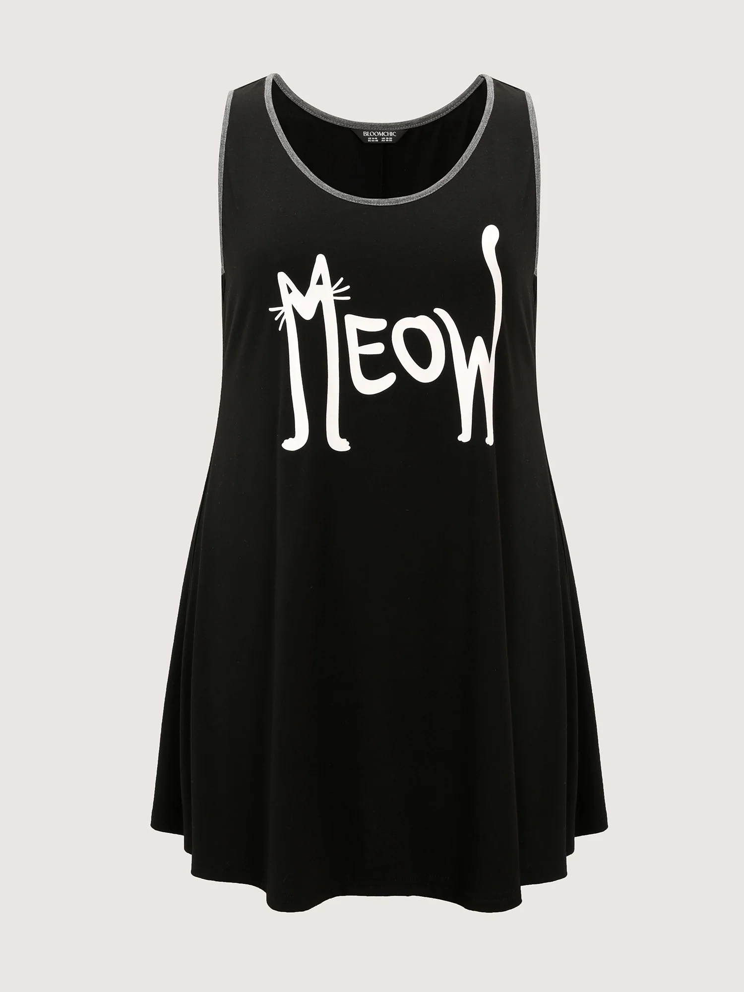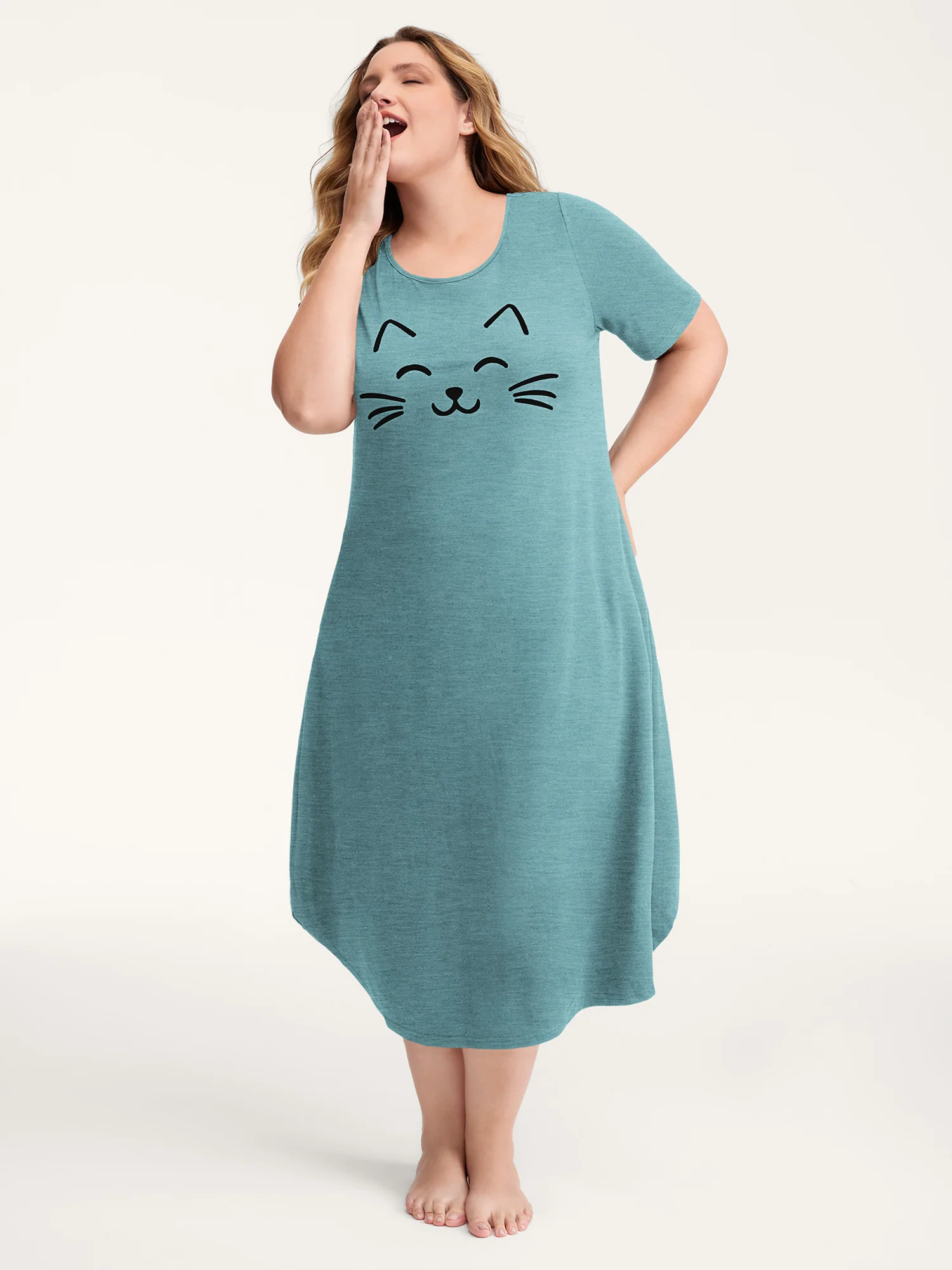 Happy Cat Print Stretchy Contrast Sleep Dress