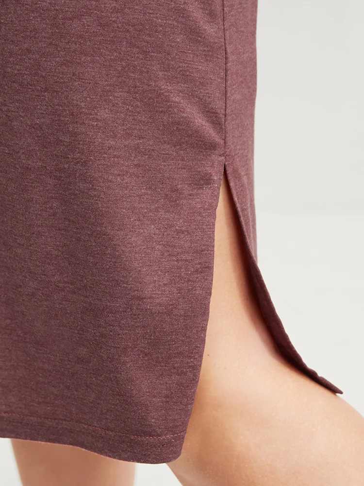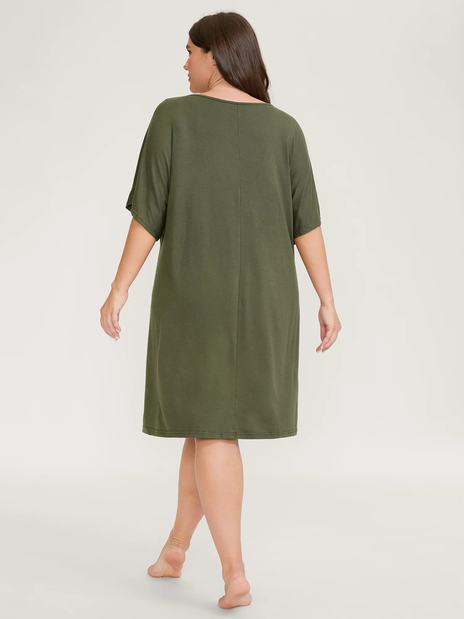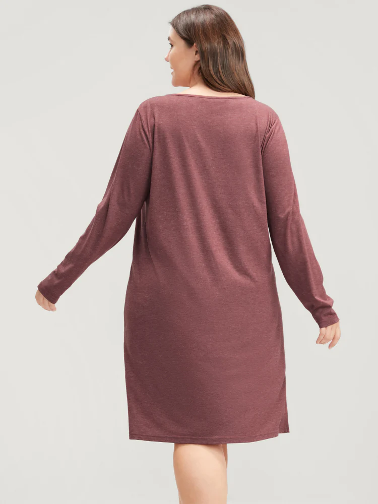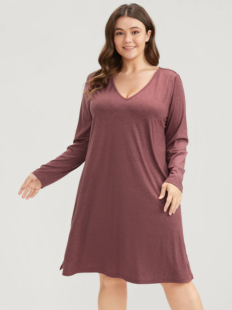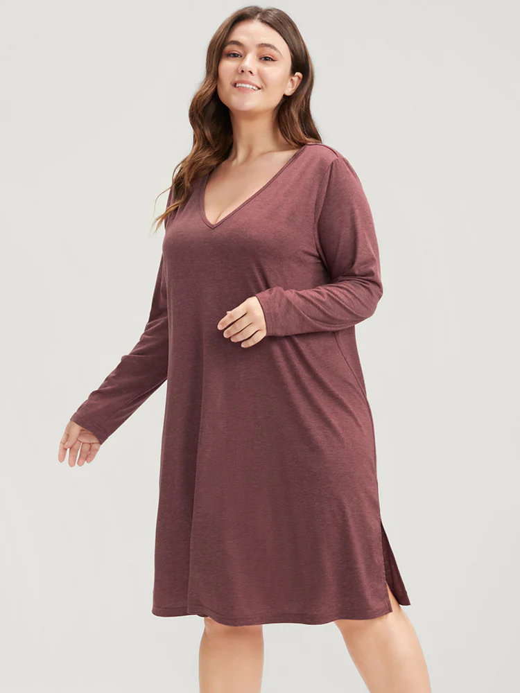 Solid V Neck Split Hem Sleep Dress