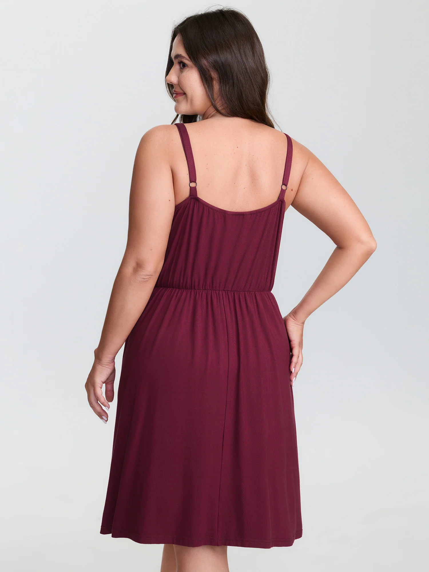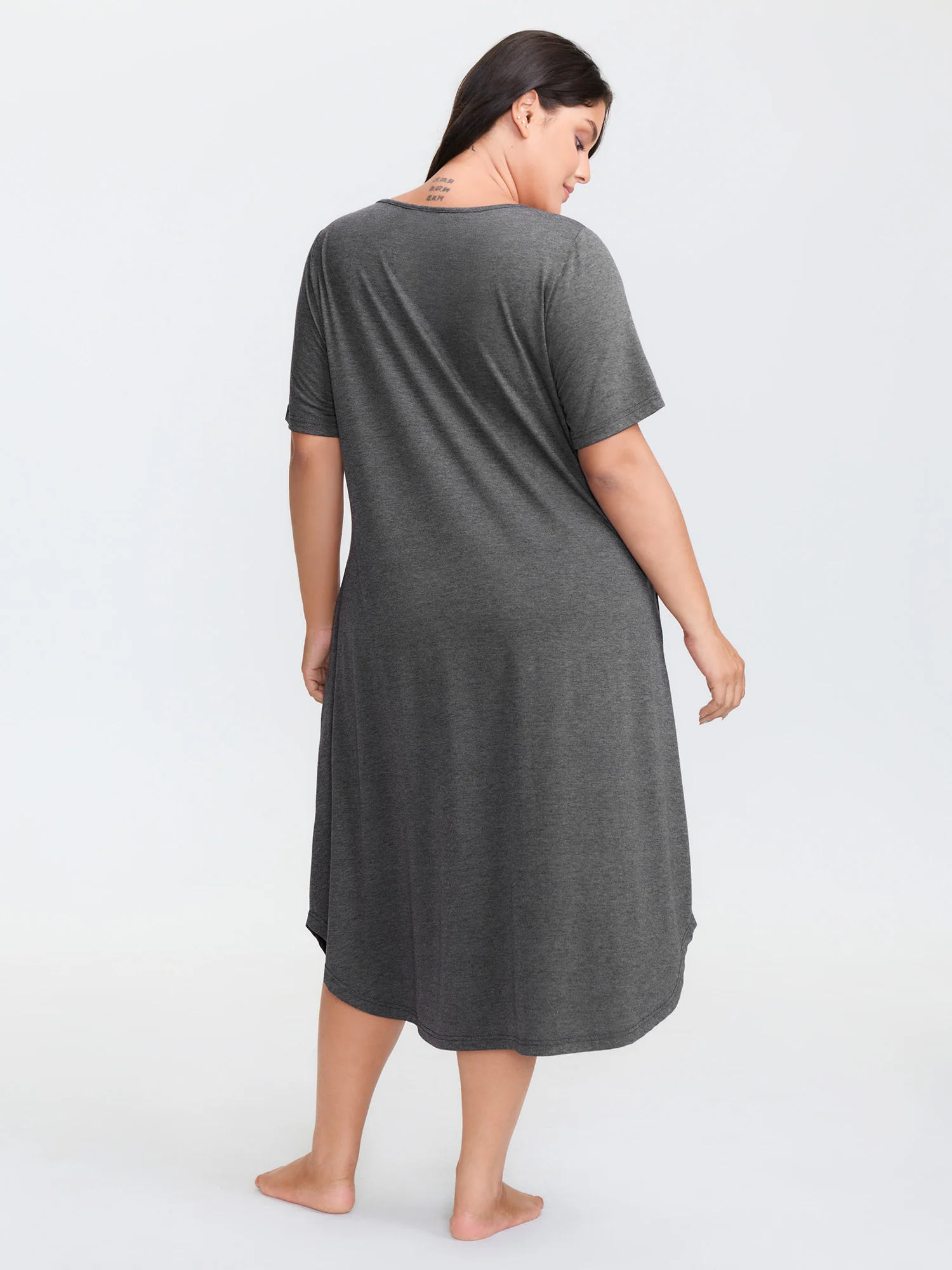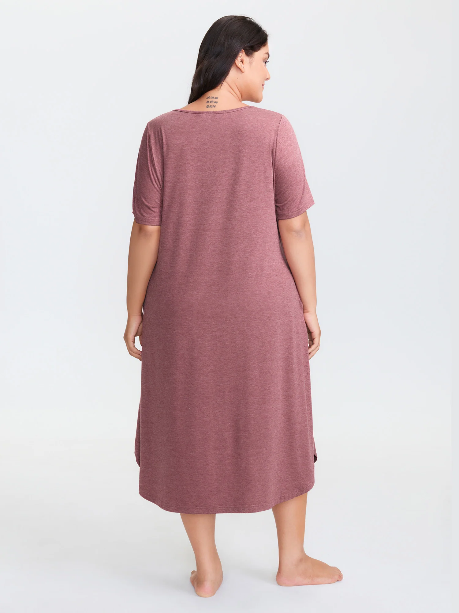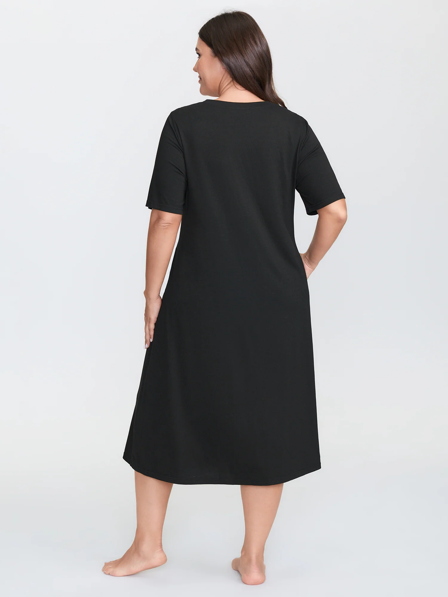 Solid V Neck Split Hem Sleep Dress