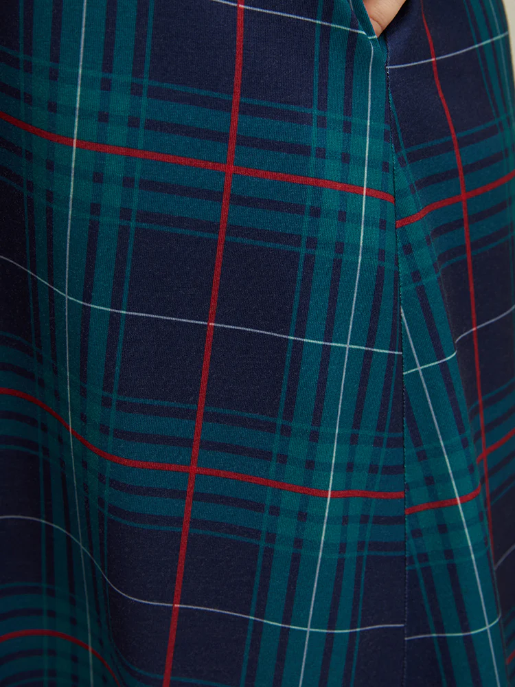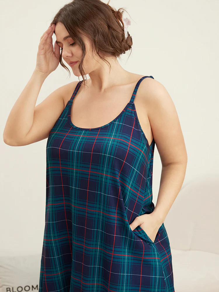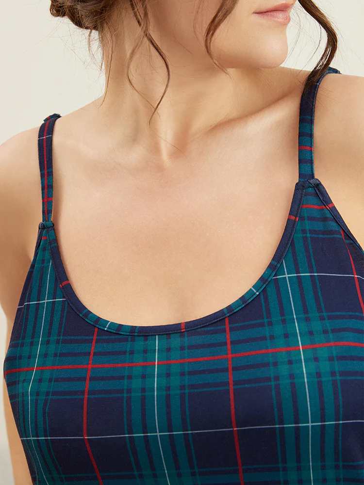 Plaid Holiday Print Stretchy Sleep Dress