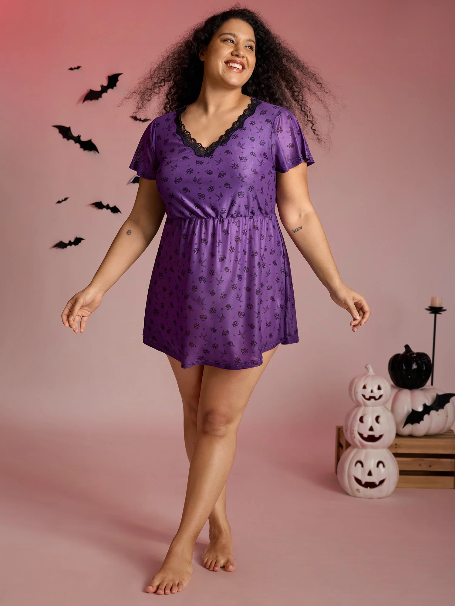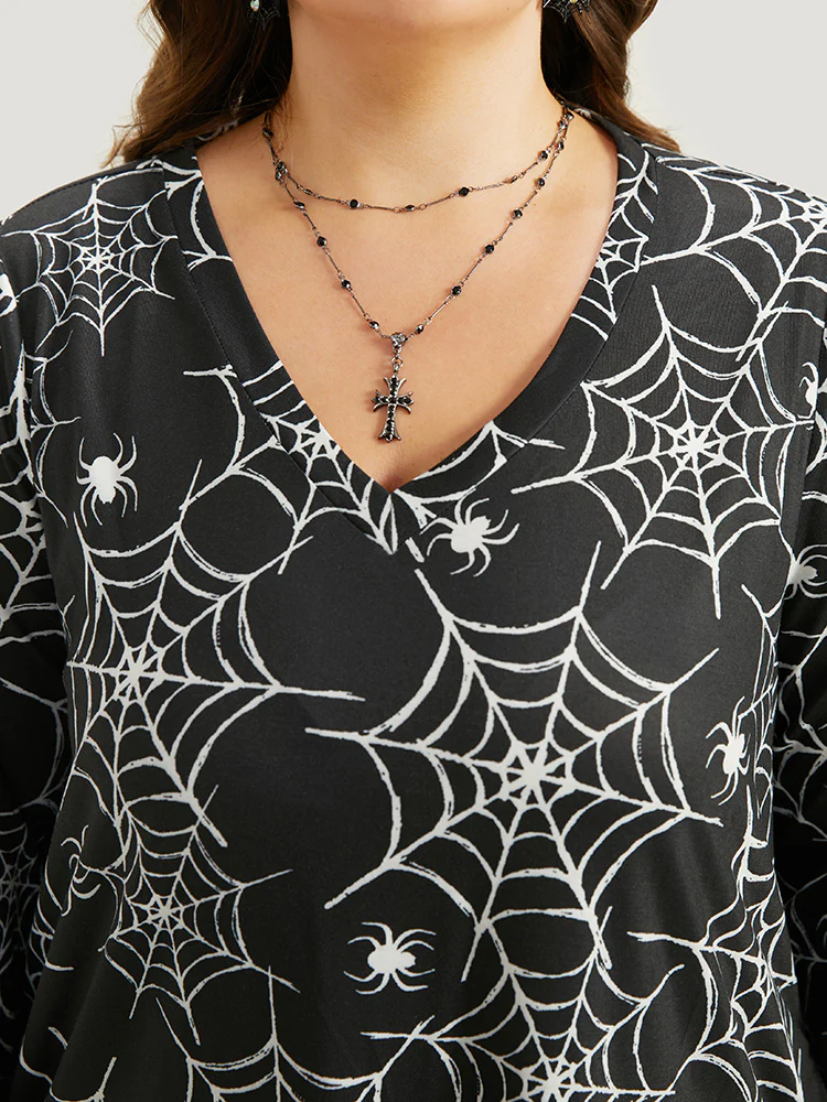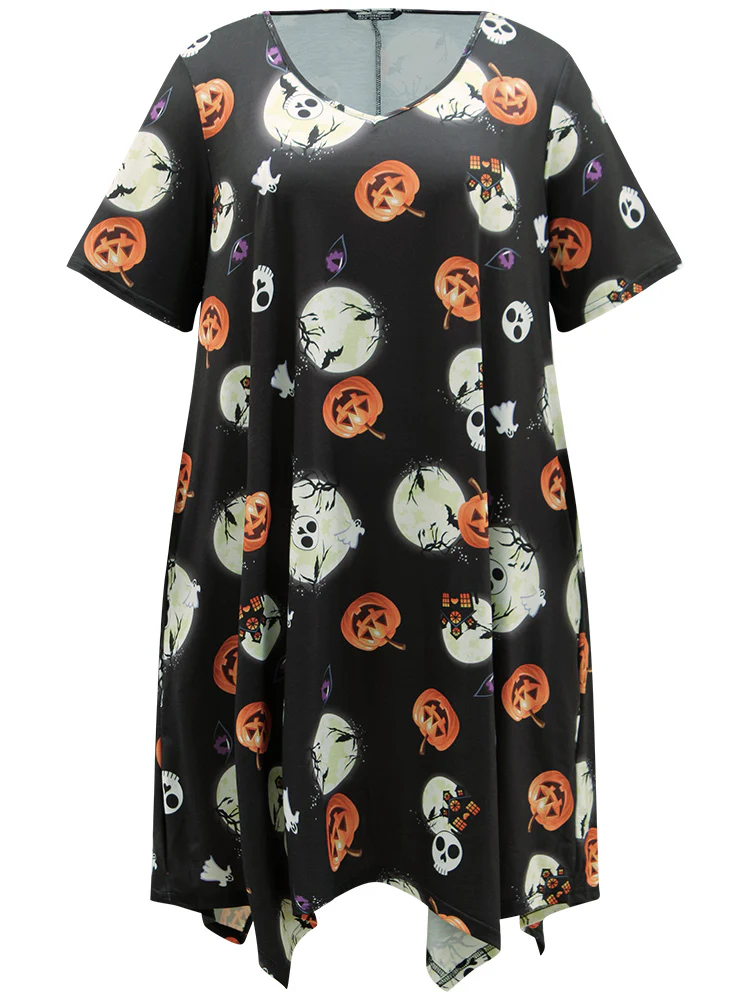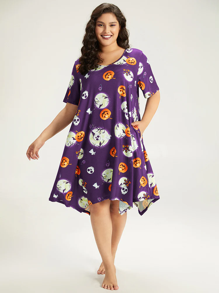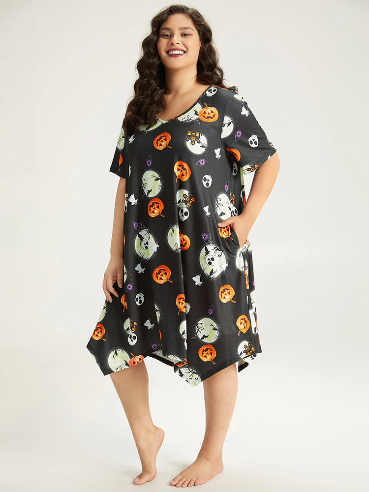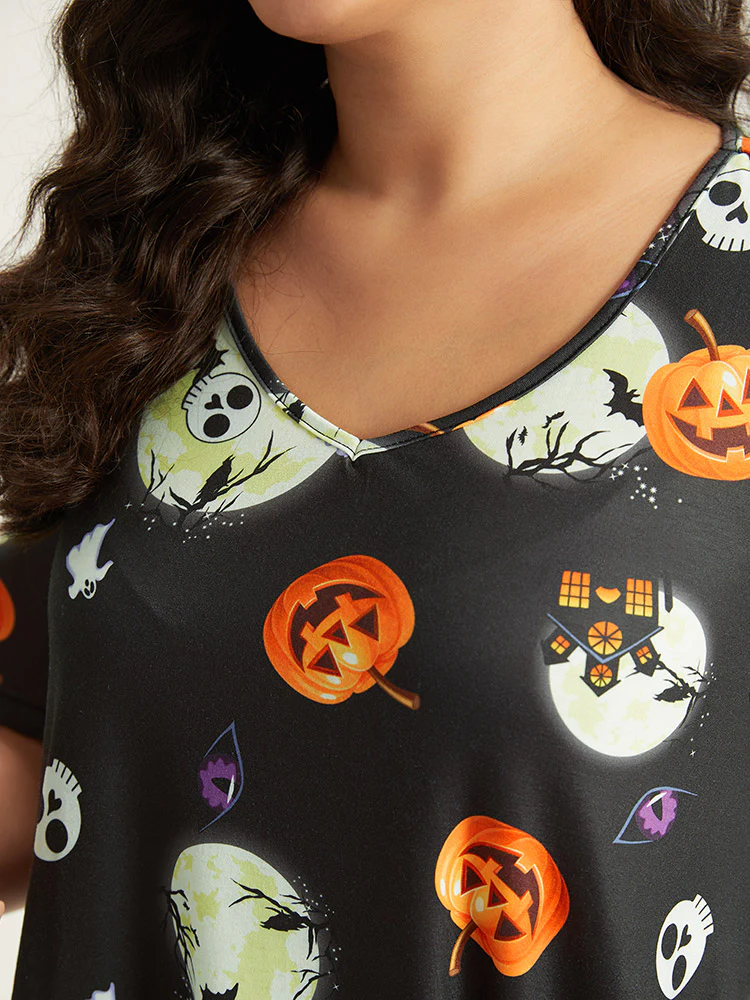 Halloween Print Stretchy V-Neck Lounge Dress