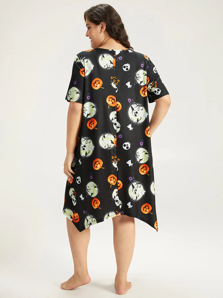 Halloween Graphic Round Neck Sleep Midi Dress