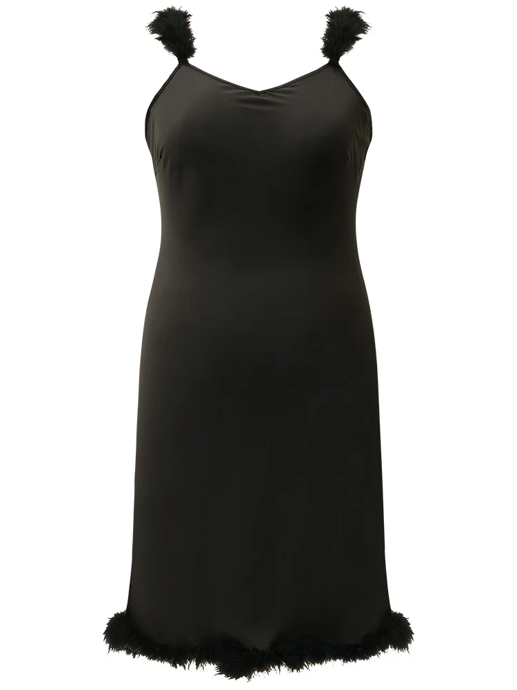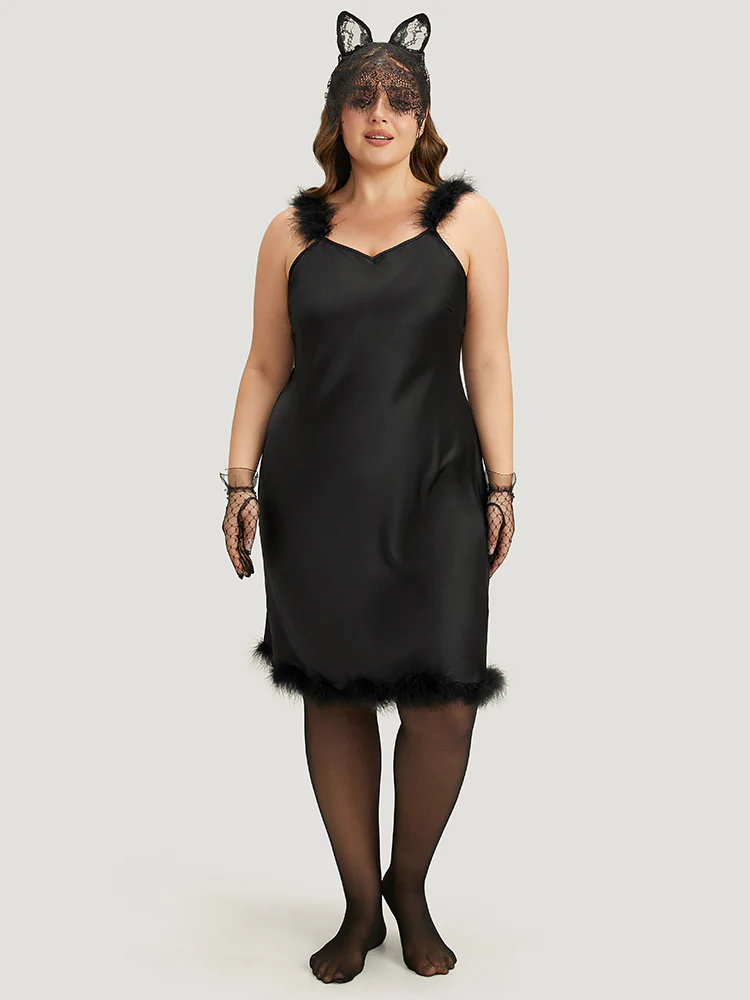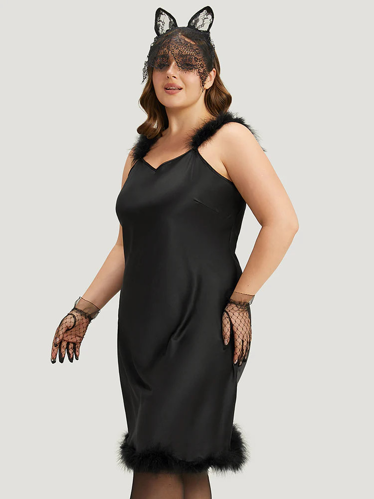 Halloween Plain Fuzzy Trim Sleep Cami Dress