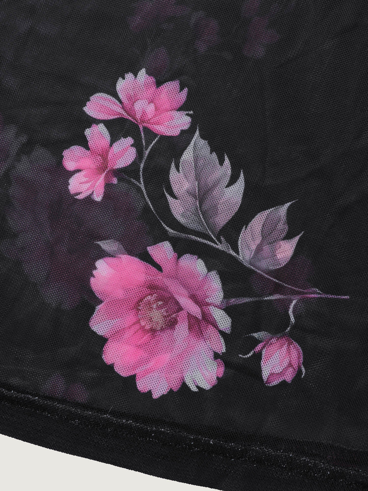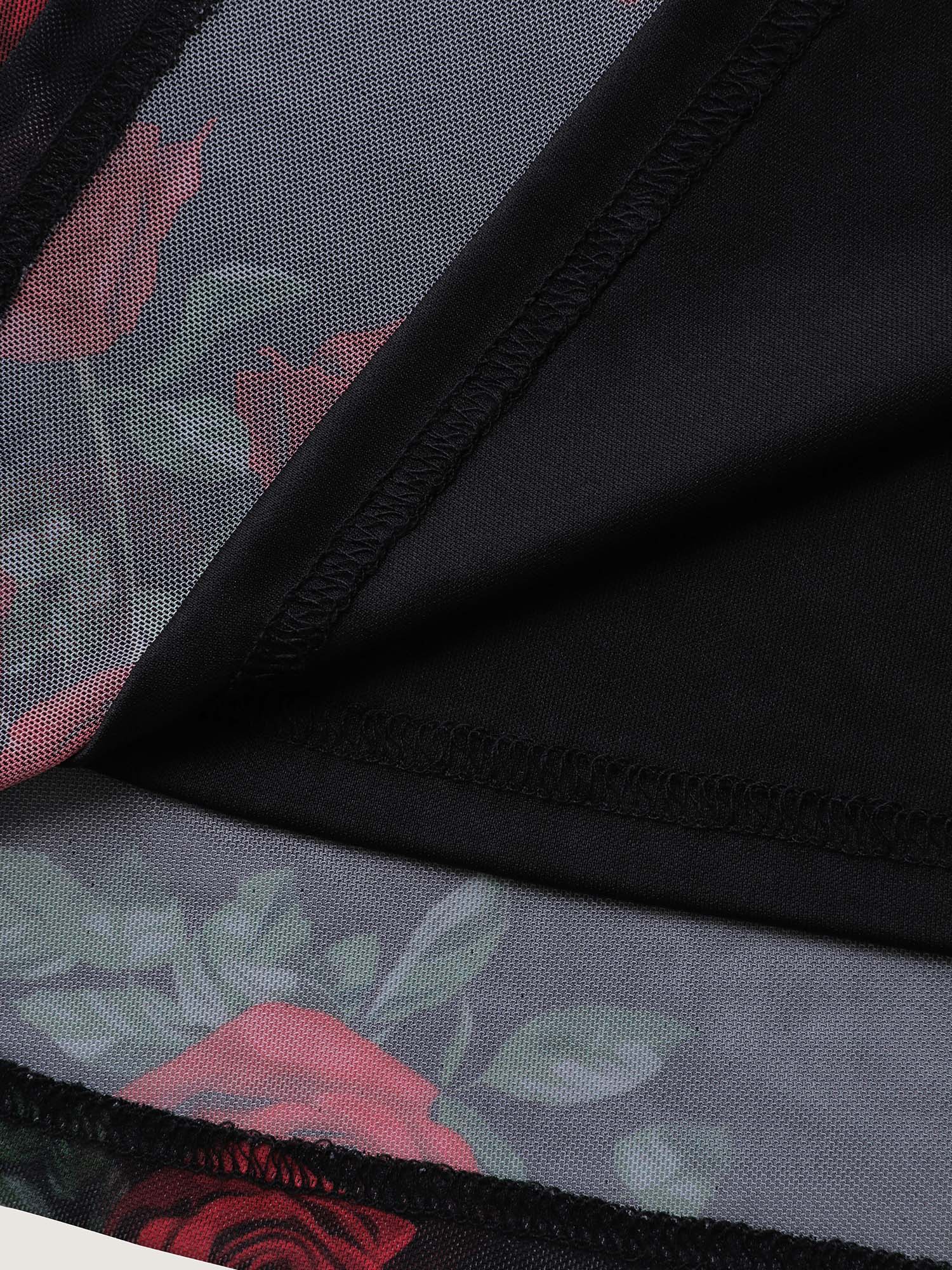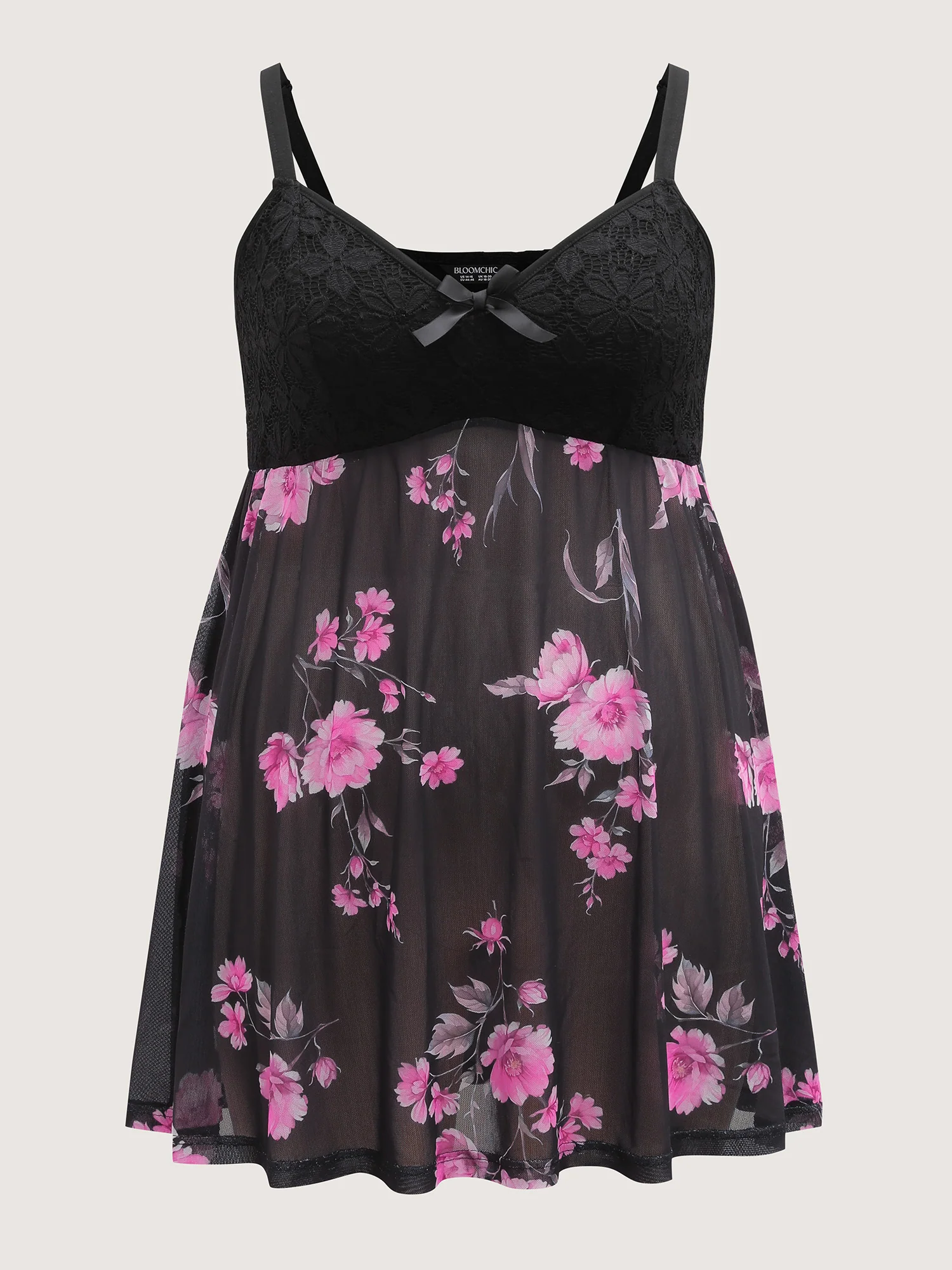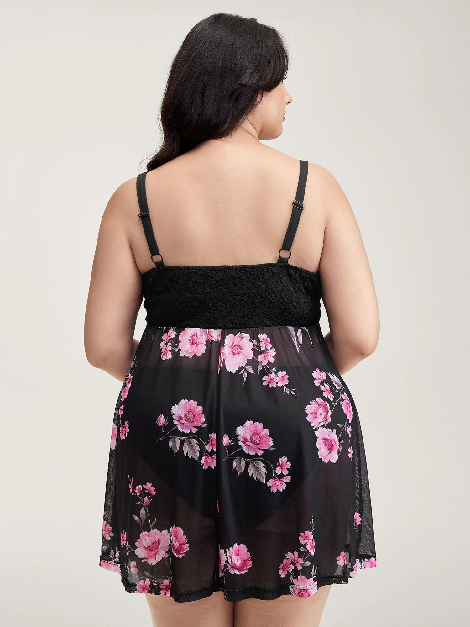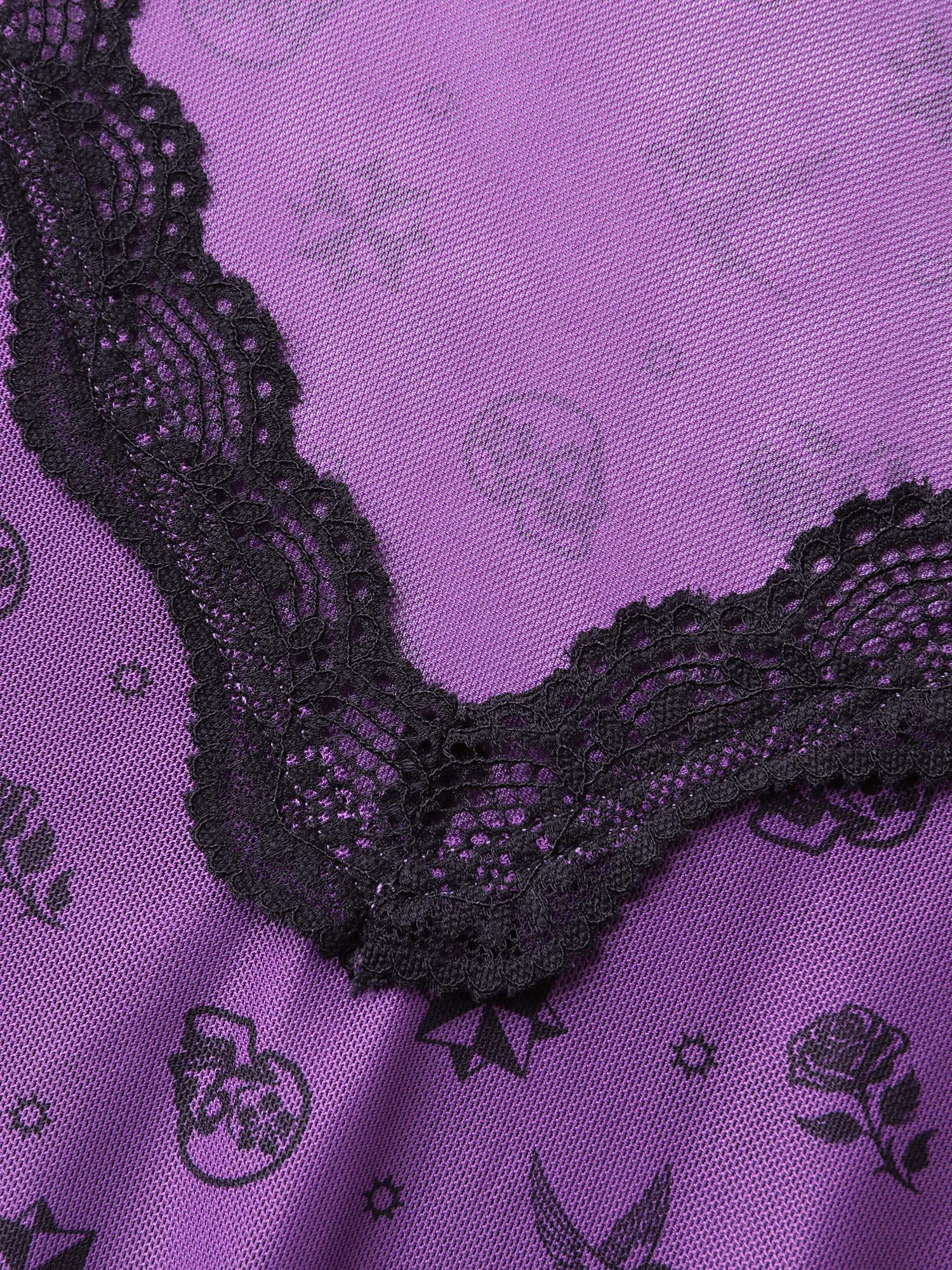 Floral Print Sheer Lace Trim Sleep Dress