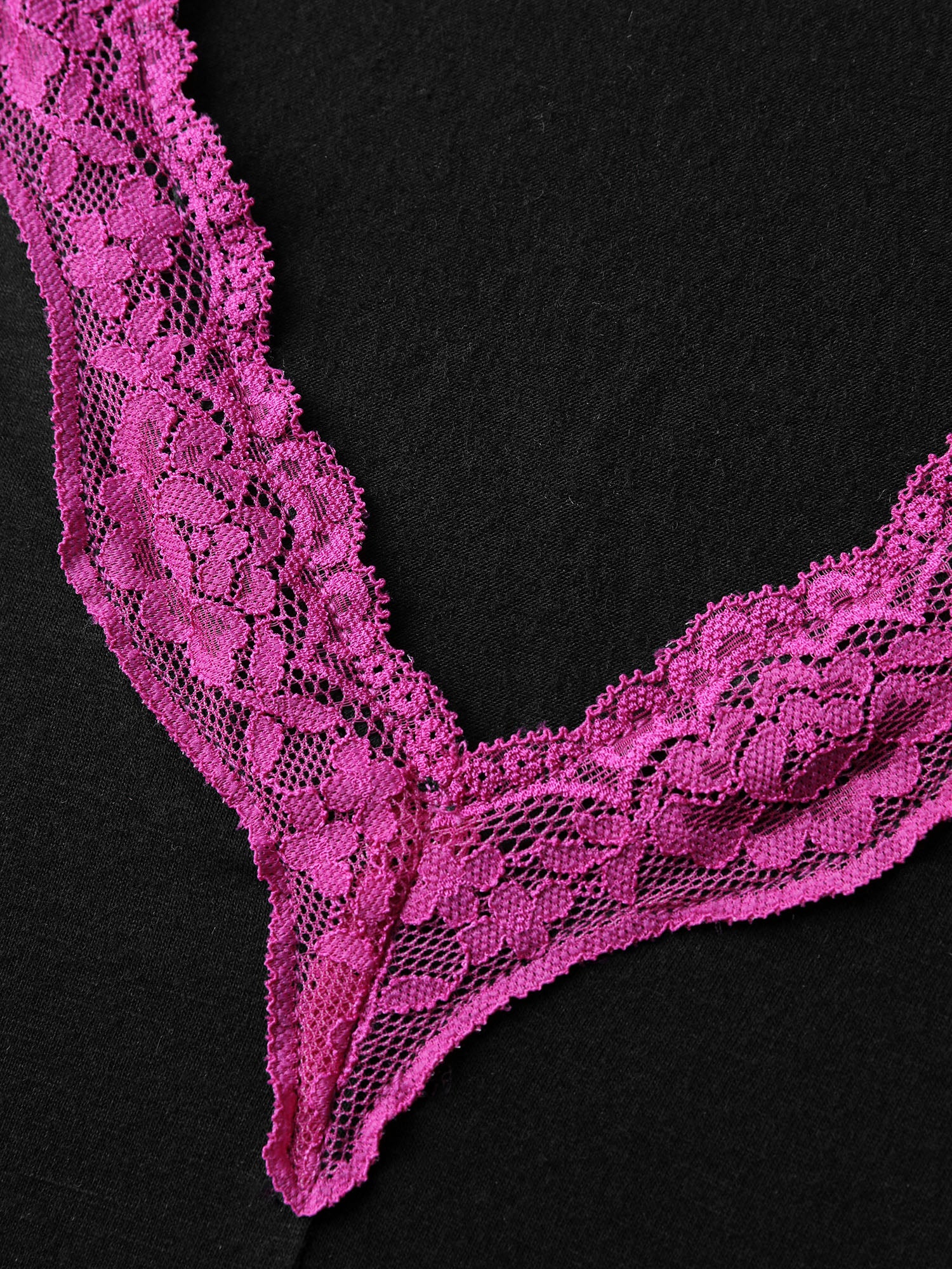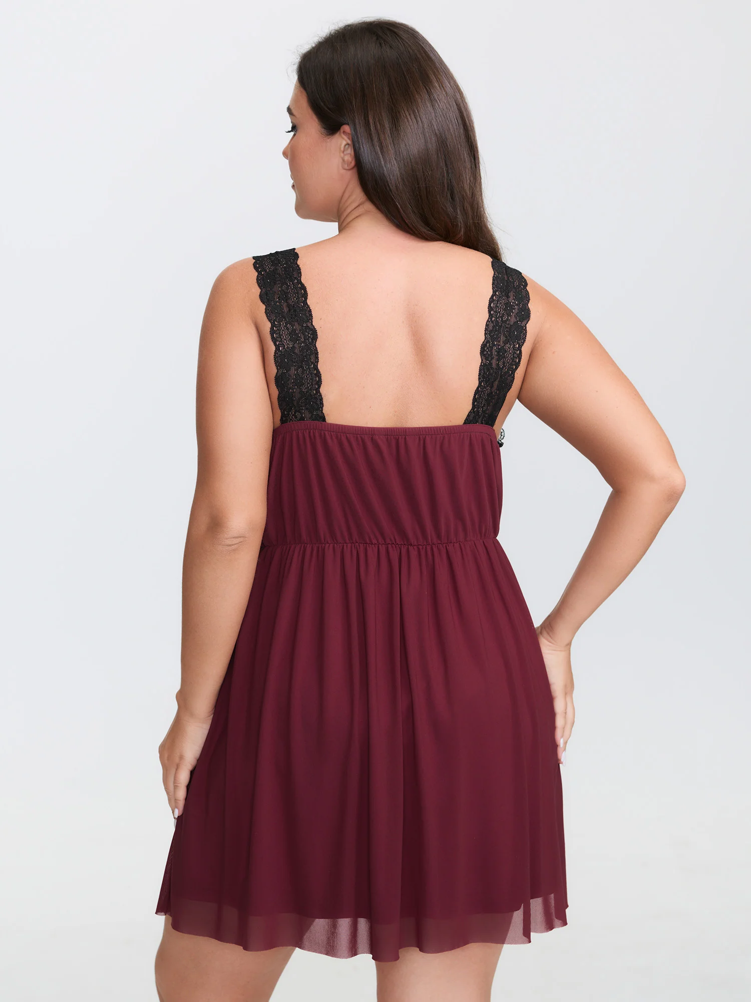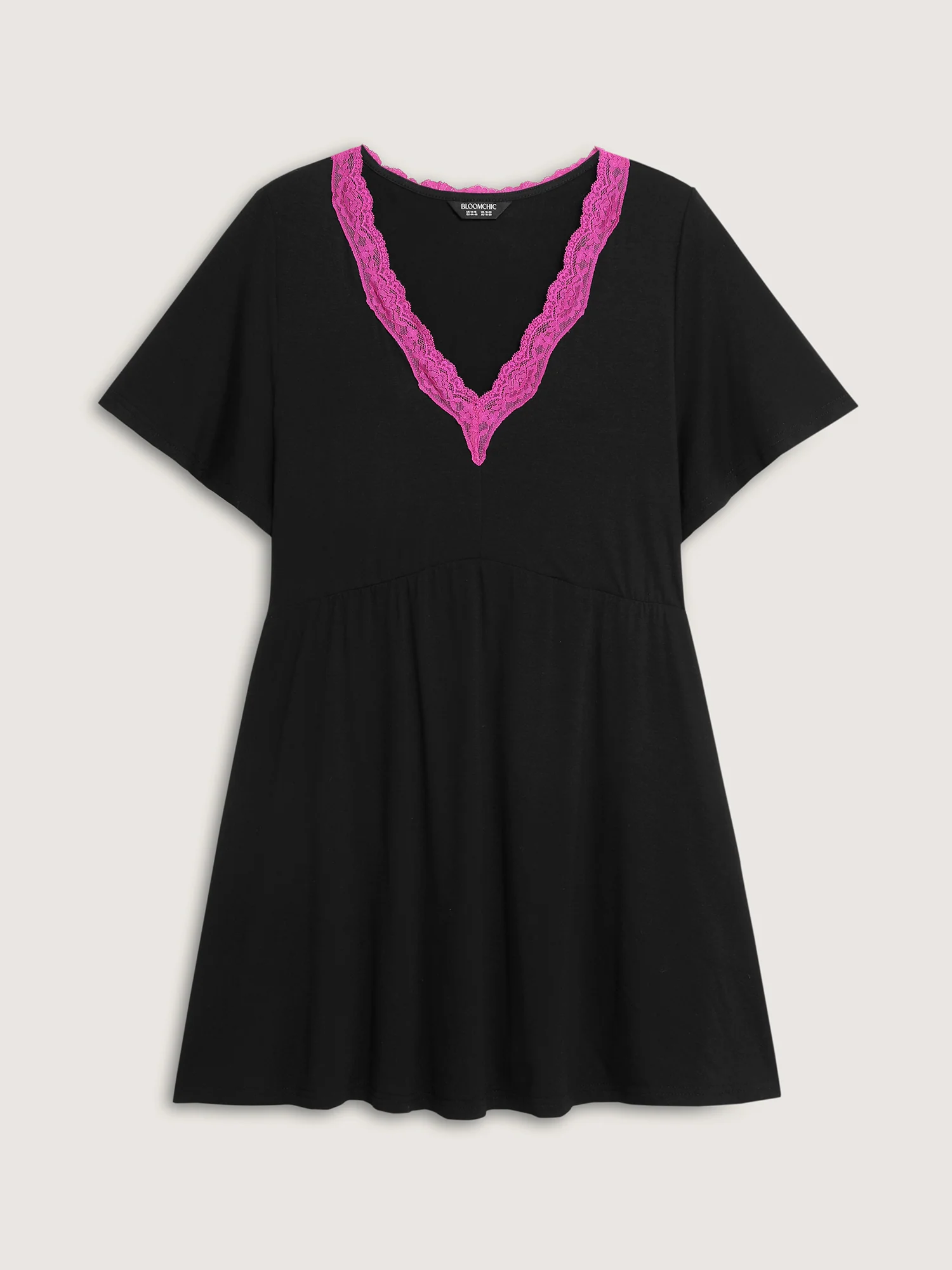 Color Contrast Lace Trim Deep Neck Sleep Dress