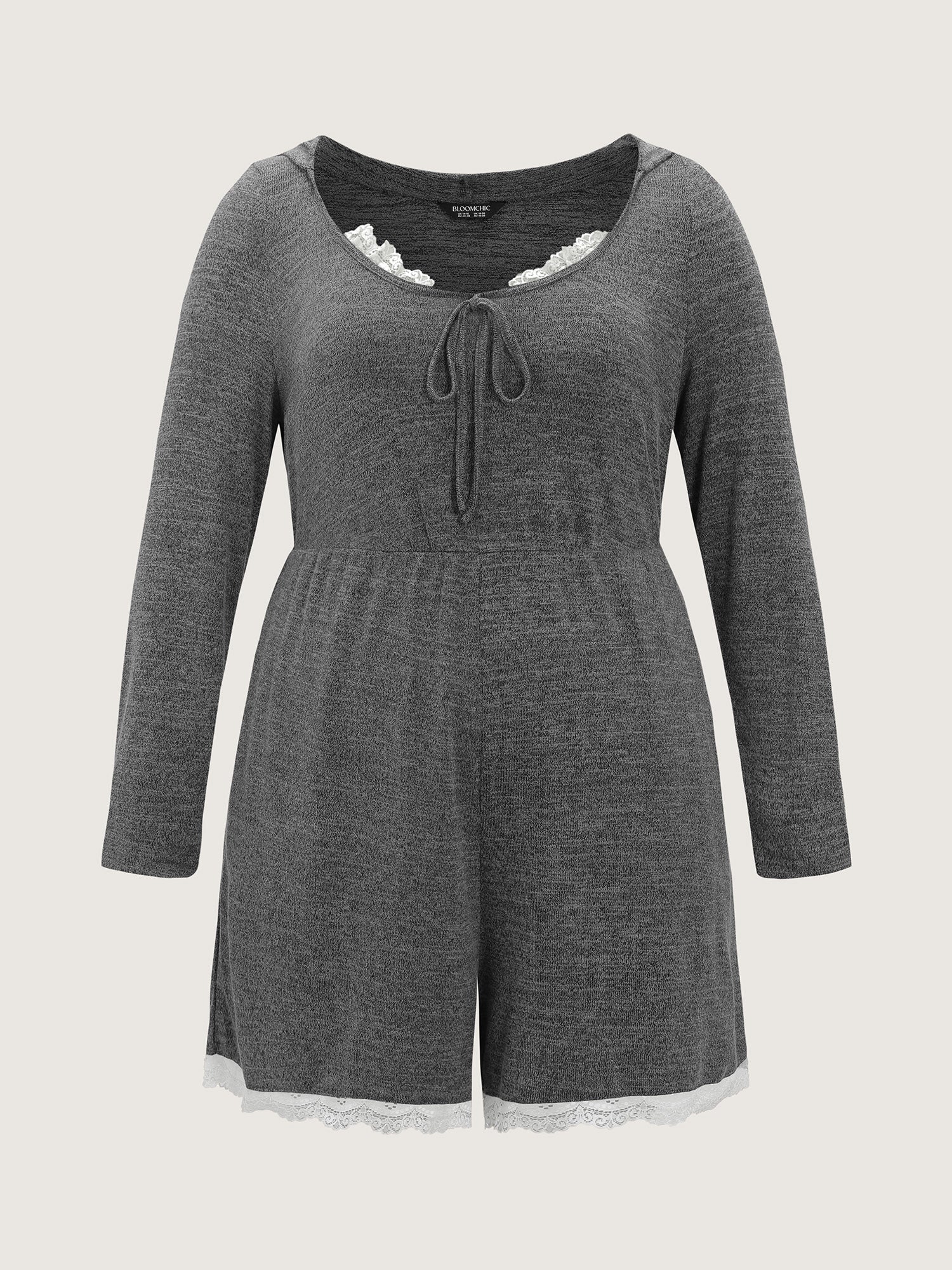 Stretchy Color Contrast Lace Trim Sleep Romper