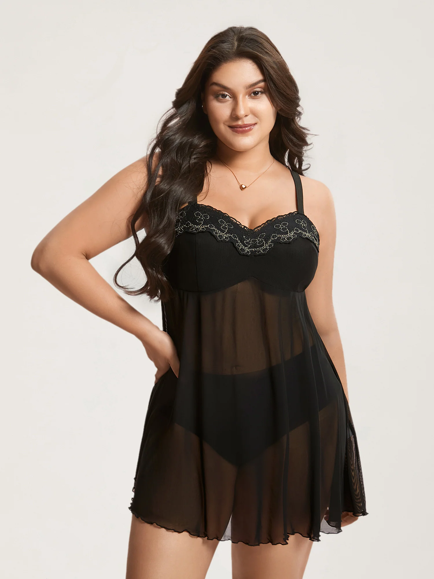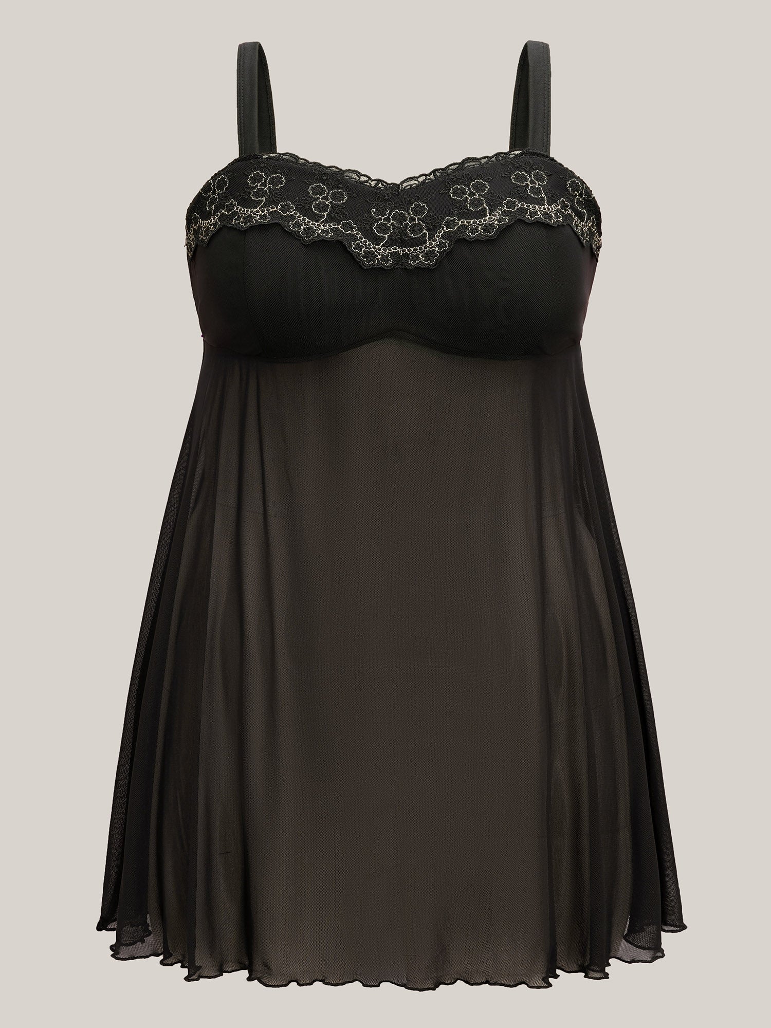 Satin Semi-Sheer Contrast Sleep Dress