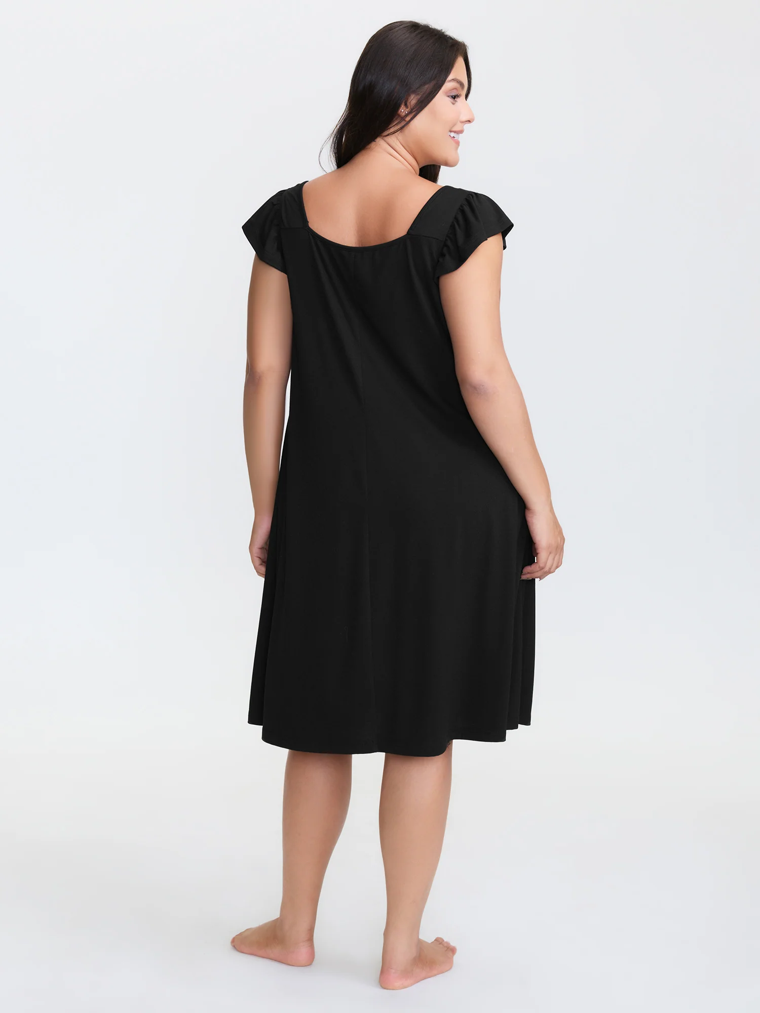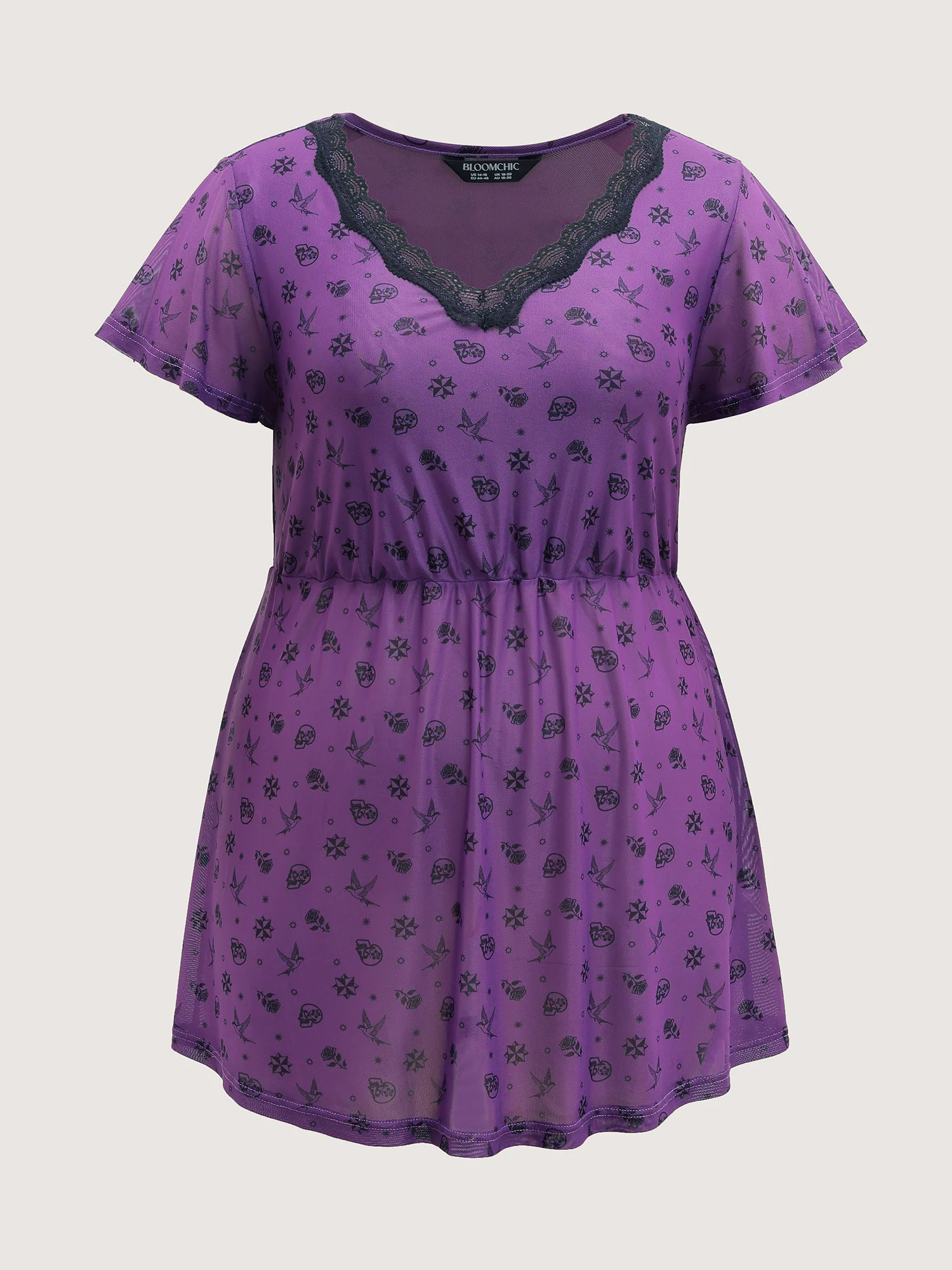 Lace High-Waist Flutter Sleeve Sleep Dress
